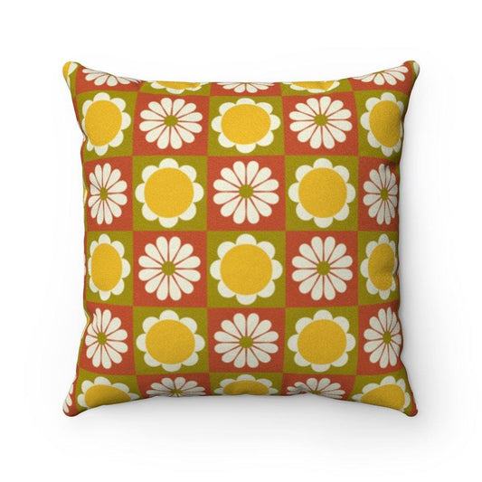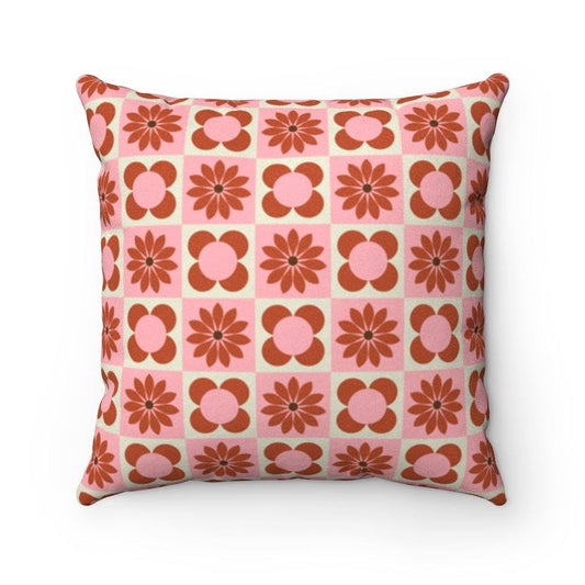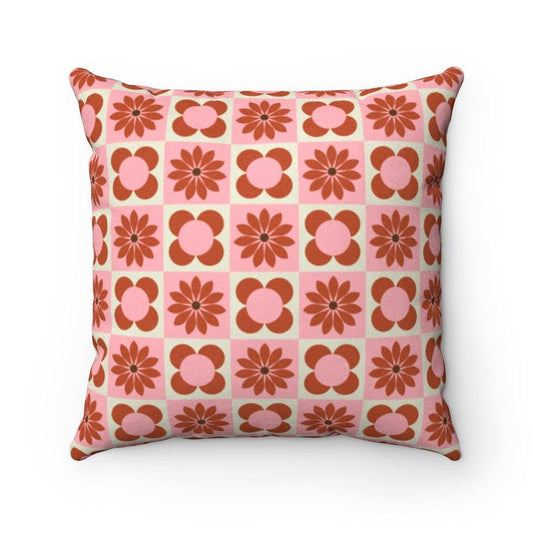 Retro Mod Flowers 60s Pink & Rust MCM Pillow