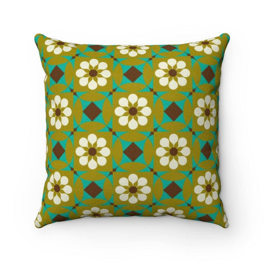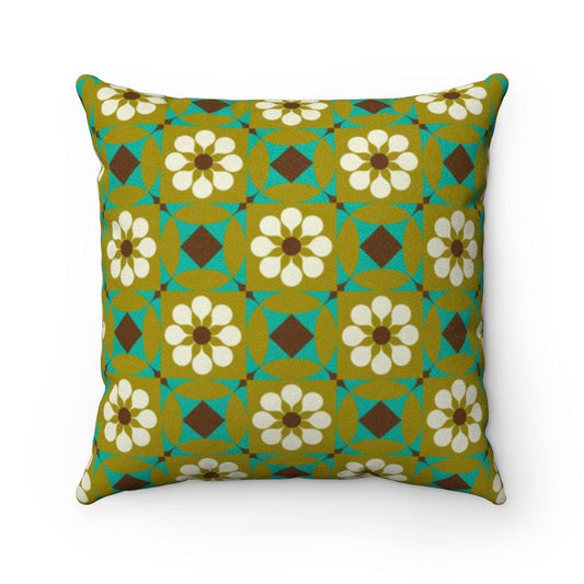Mod Flowers Retro 60s Green Mid Century Pillow