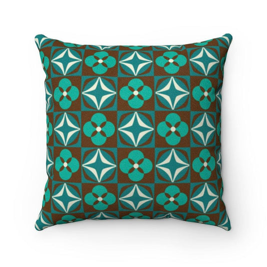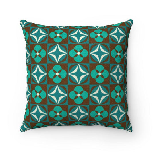 Mod Floral Retro 60s Teal & Brown MCM Pillow