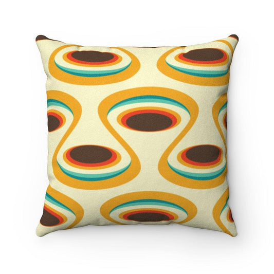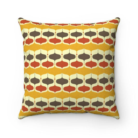 Retro 60s Abstract Onion Mid Century Mod Mustard & Brown Throw Pillow