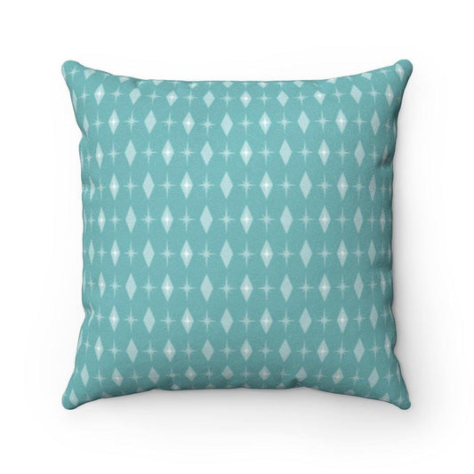 Retro 50s Bursts and Diamonds Mid Century Mod Blue Pillow