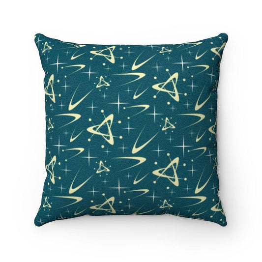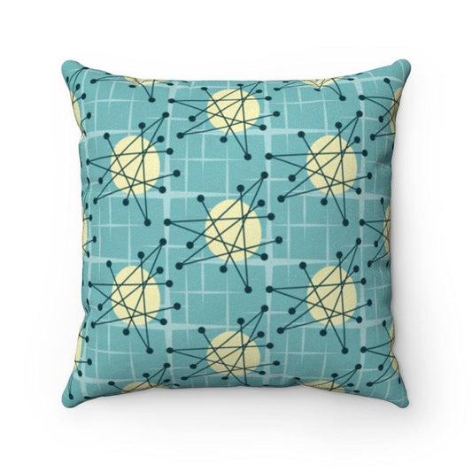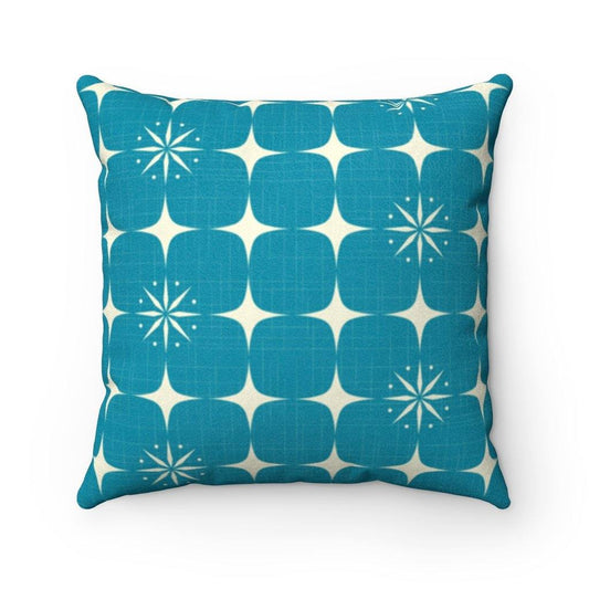 Retro 50s Vintage Mini Atomic Starbursts MCM Blue Pillow