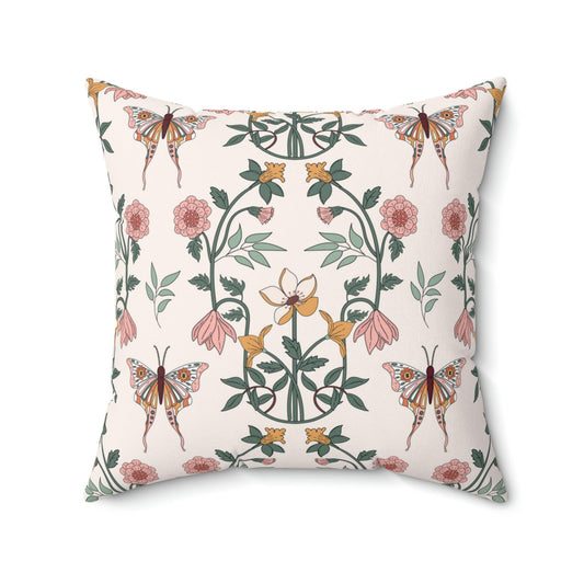 Boho Chic Florals and Moth Cottagecore Multicolor Throw Pillow