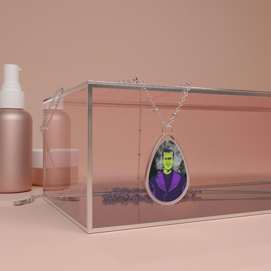 Valentine's Day Frankenstein Kitsch Monster Oval Pendant Necklace