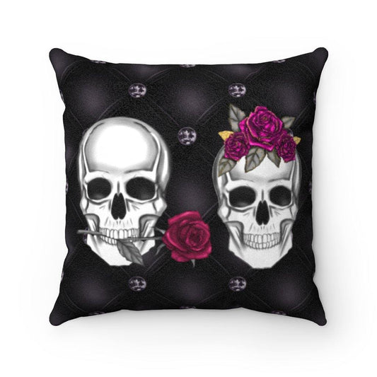 Skull Couple Black Halloween/Valentine's Pillow Glam Goth Decor