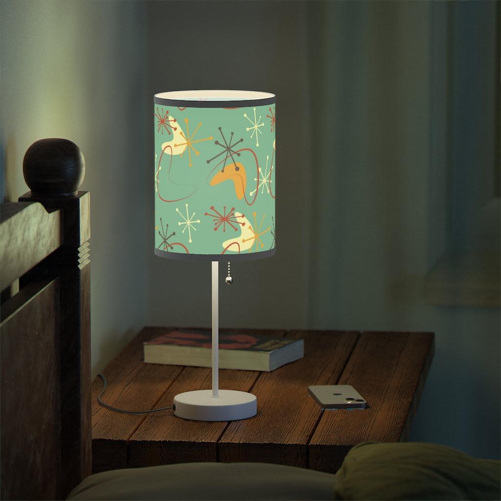 This accent lamp provides soft lighting and is big on mid century style! Enjoy decorating your space with fun retro patterns in a fresh, new way.