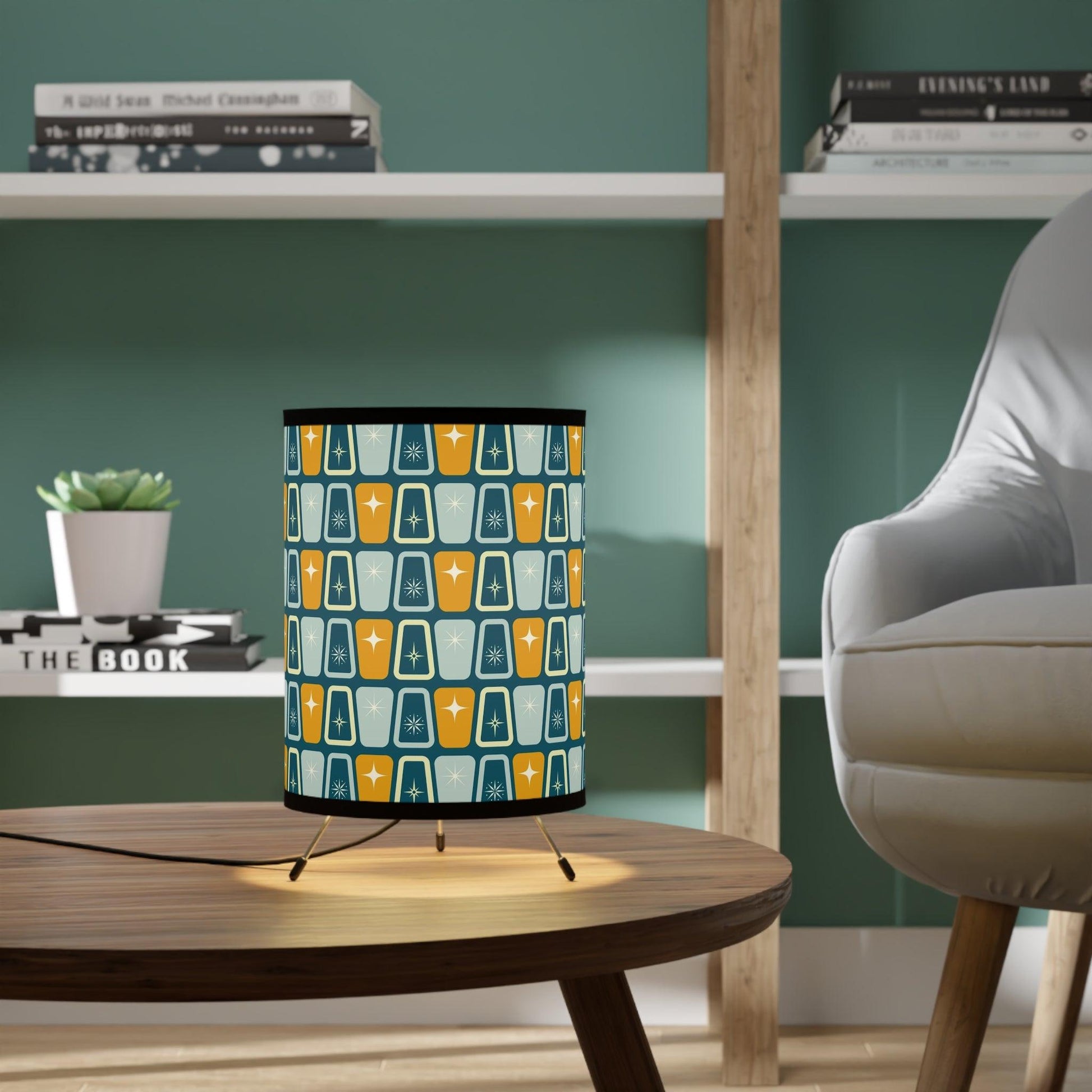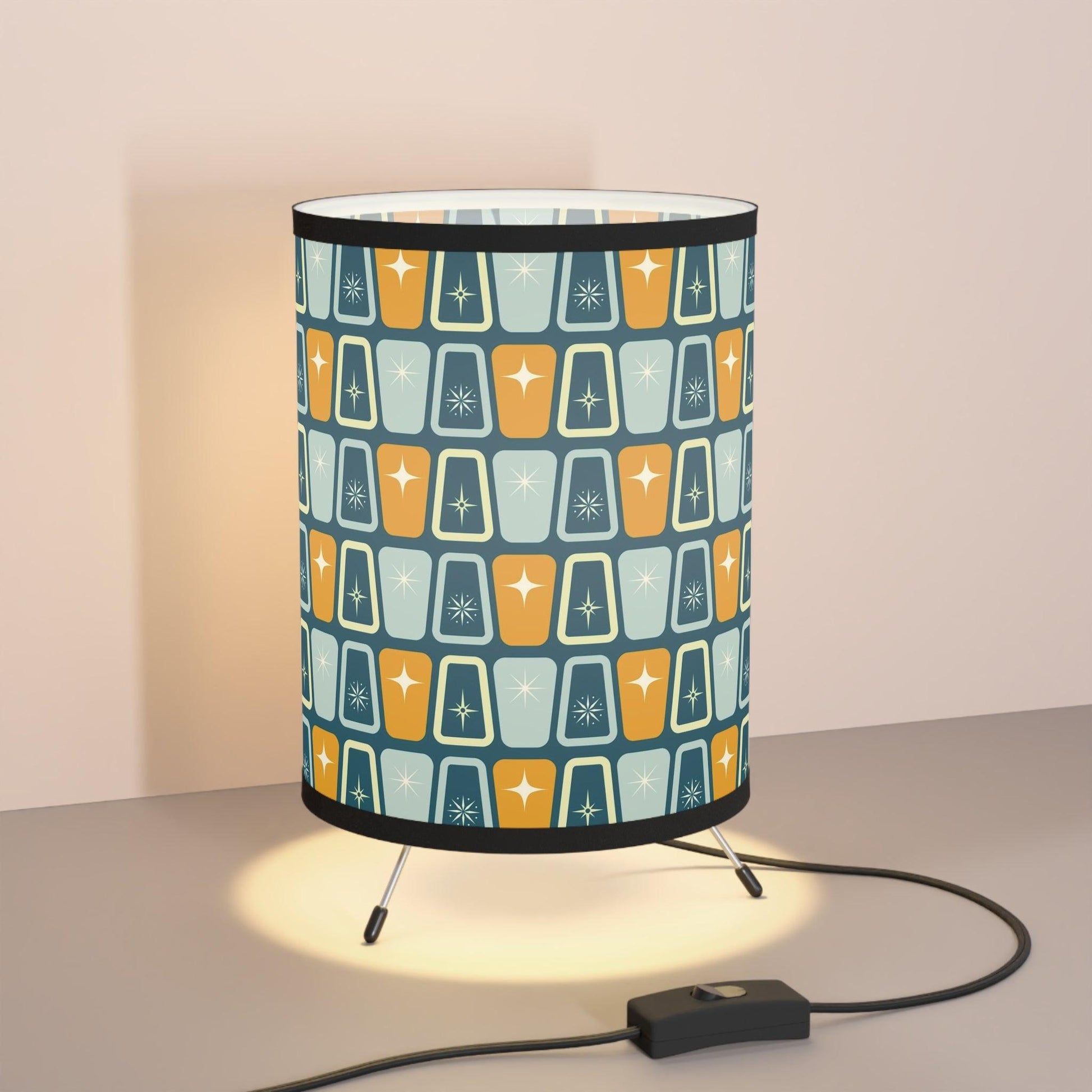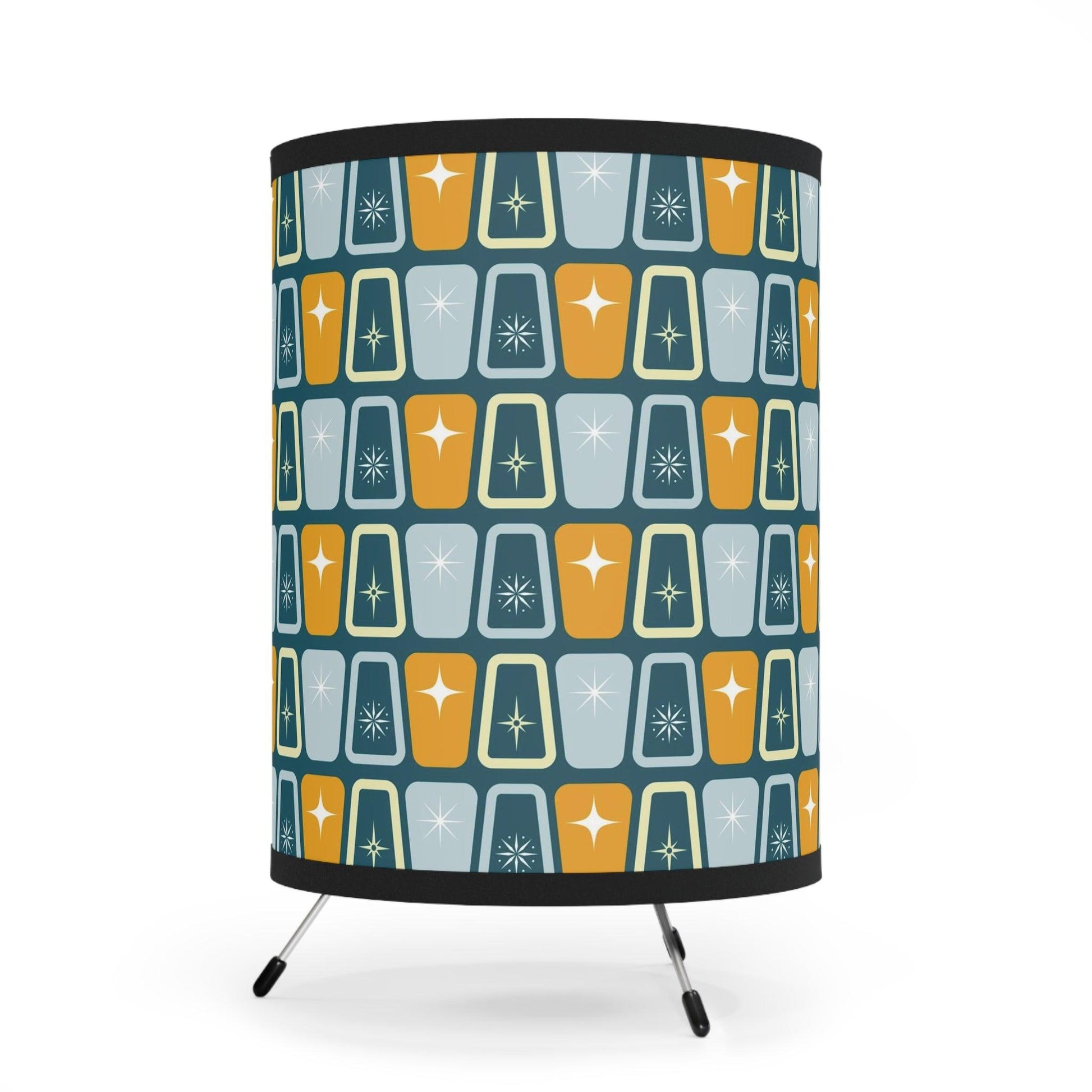 This retro style lamp provides soft lighting and is big on 1950's mid century style! Enjoy decorating your space with fun retro patterns, featuring atomic bursts and geometric patterns, in a fresh, new way.