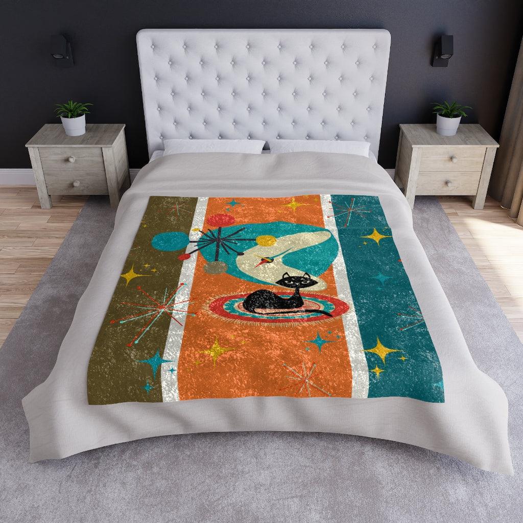 Atomic Cat and Starburst MCM Multicolor Crushed Velvet Blanket