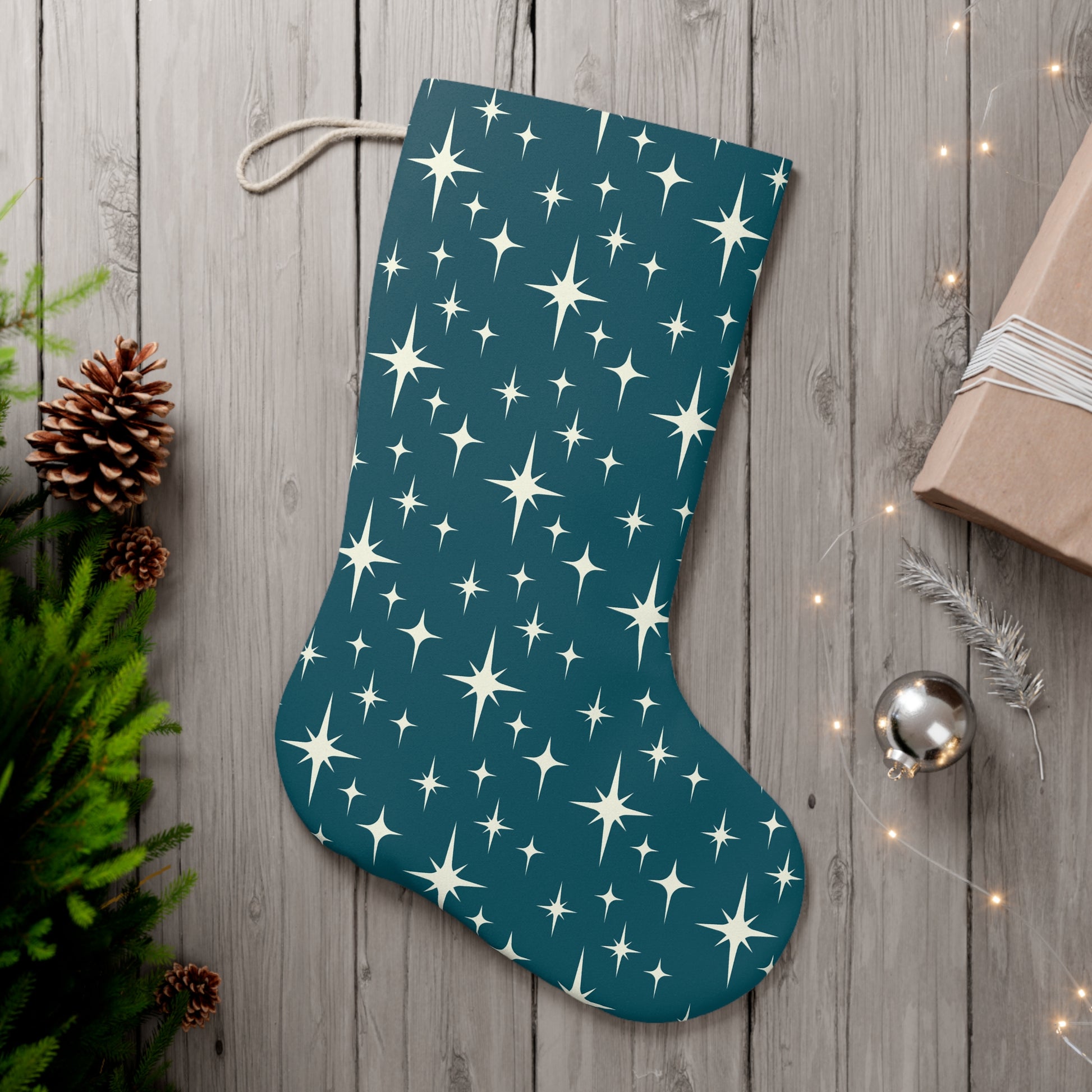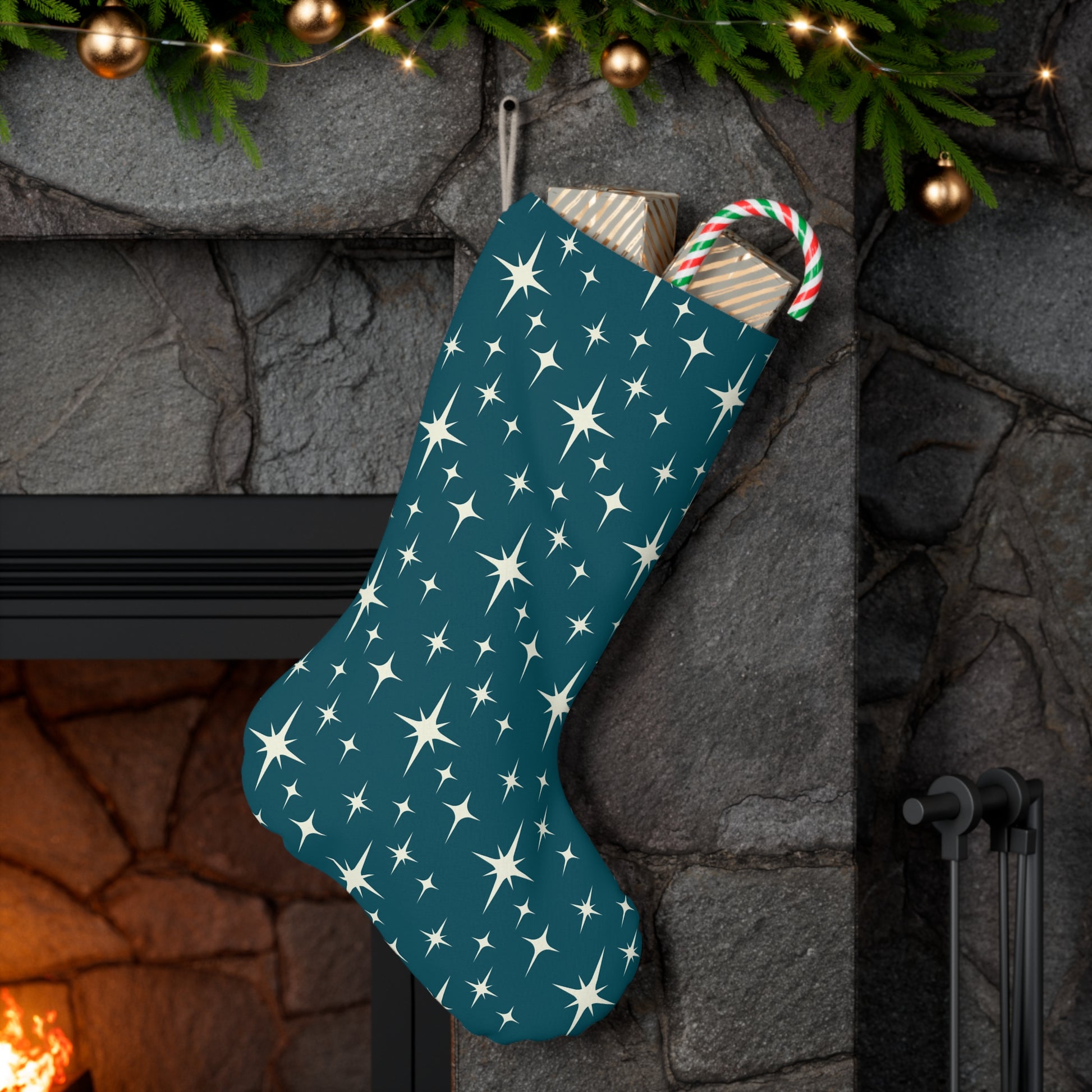 Retro 50s Atomic Starburst Mid Century Modern Blue & Cream Christmas Stocking