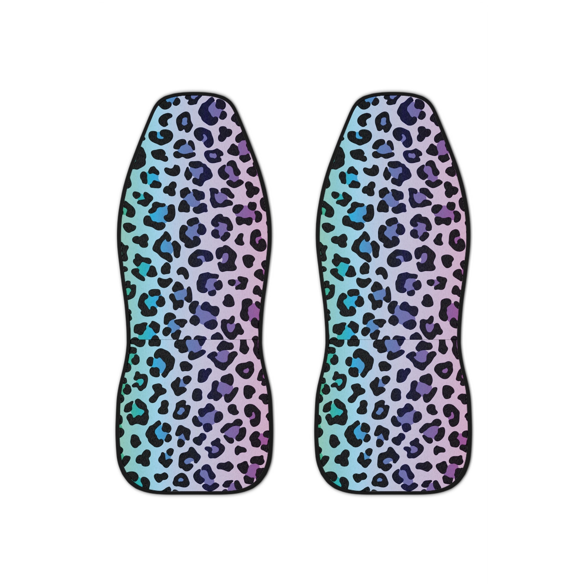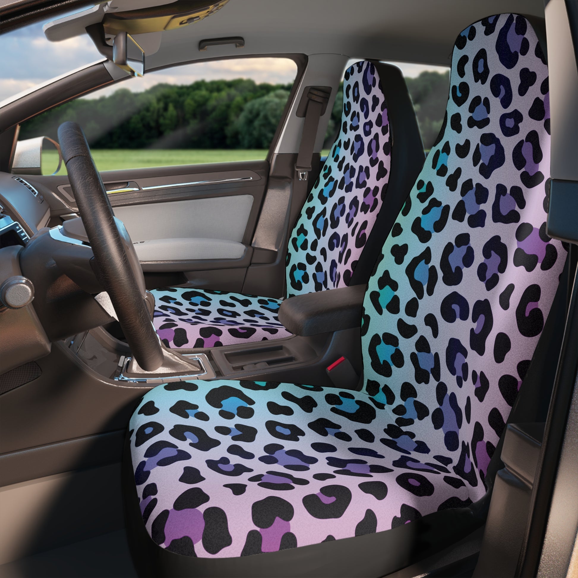 Customize your car's interior with these fun blue and purple leopard/cheetah animal print car seat covers! Made of thick, high quality polyester fabric for durability that lasts. Sold as a set of TWO. Important to note that these covers should NOT be used on seats with side airbags or armrests.