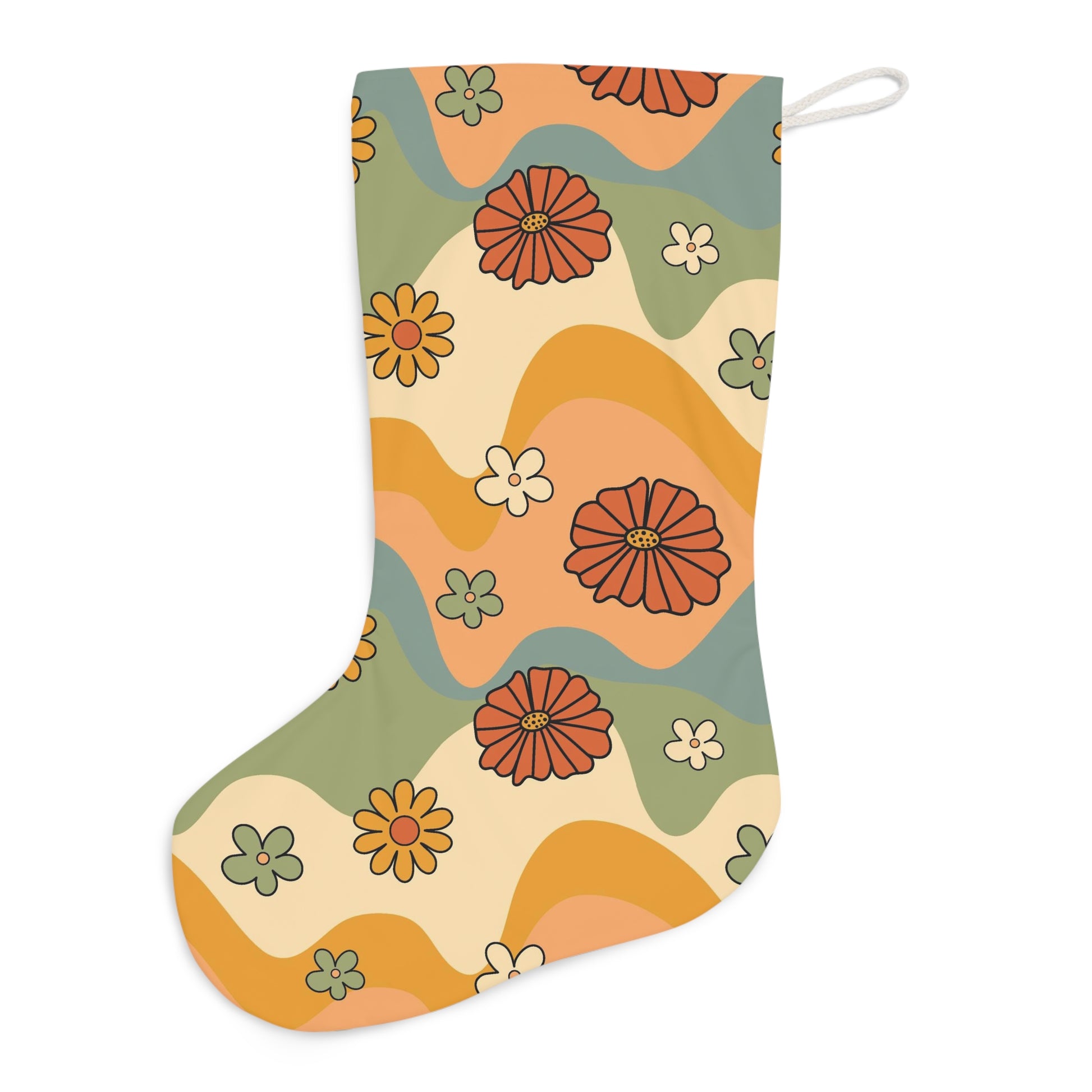 Boho Flowers and Waves Retro Multicolor Groovy MCM Christmas Stocking