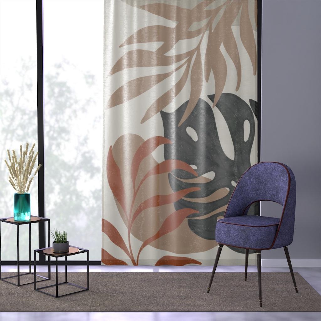 Boho Distressed Leaves MCM Neutrals Sheer Window Curtain