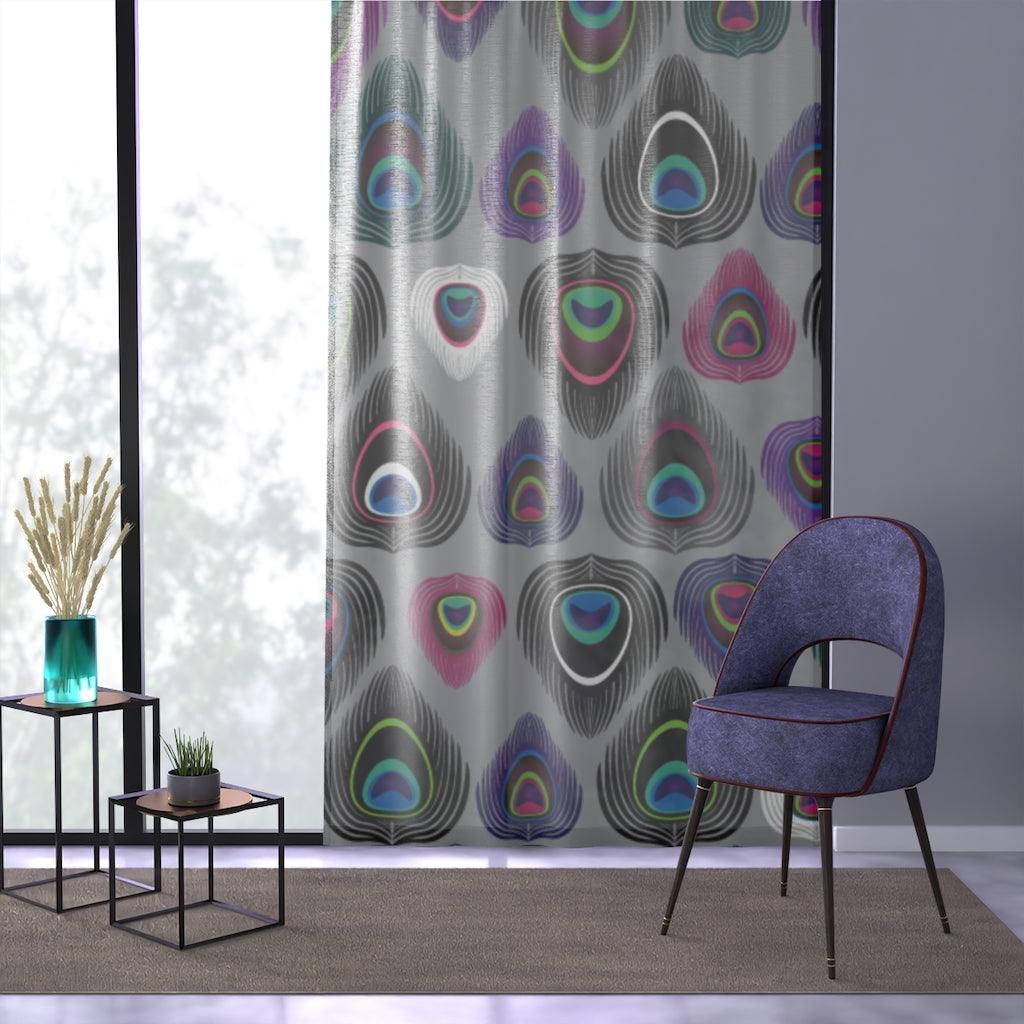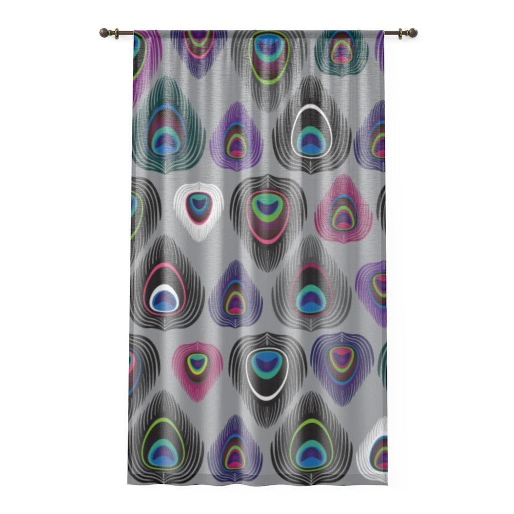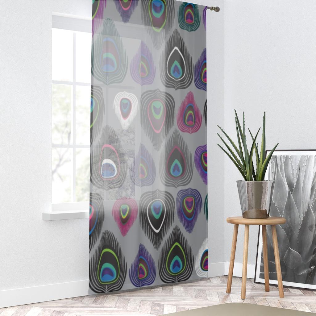 Boho Peacock Feather Colorful Sheer Window Curtain