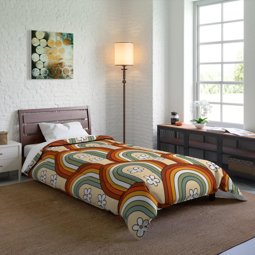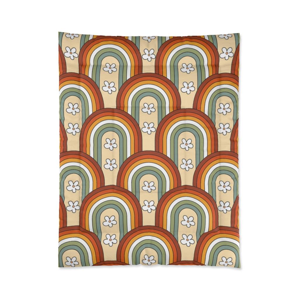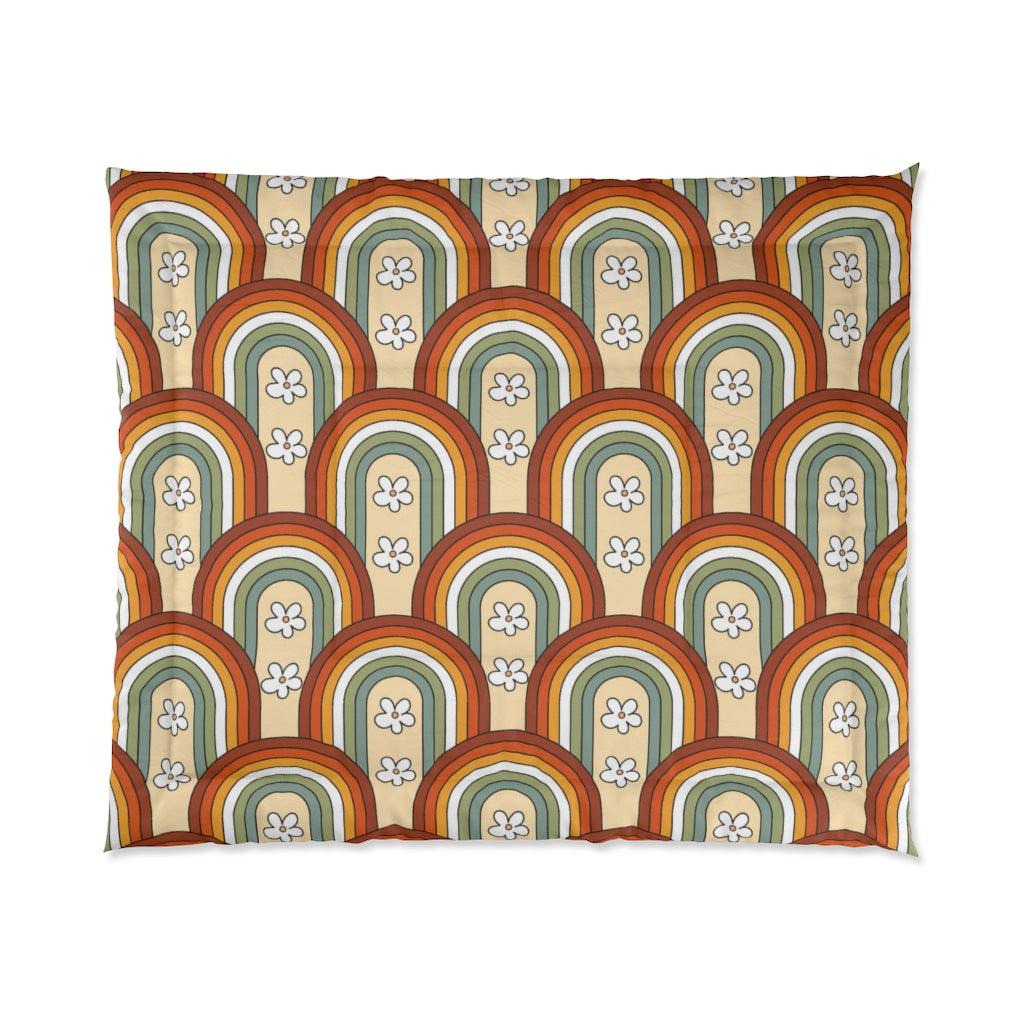 Boho Rainbows and Flowers Retro Multicolor Comforter