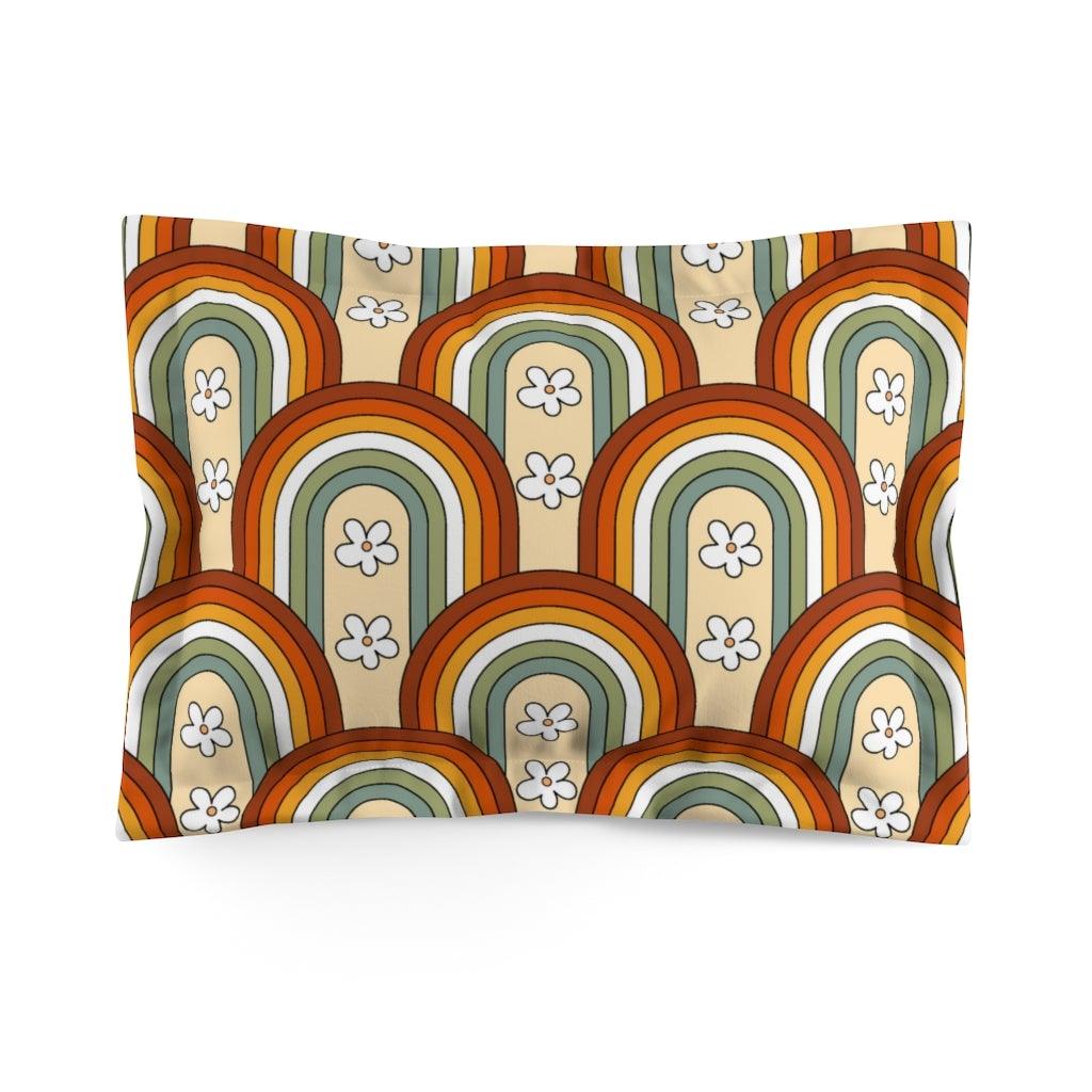 Boho Rainbows and Flowers Retro Multicolor Pillow Sham