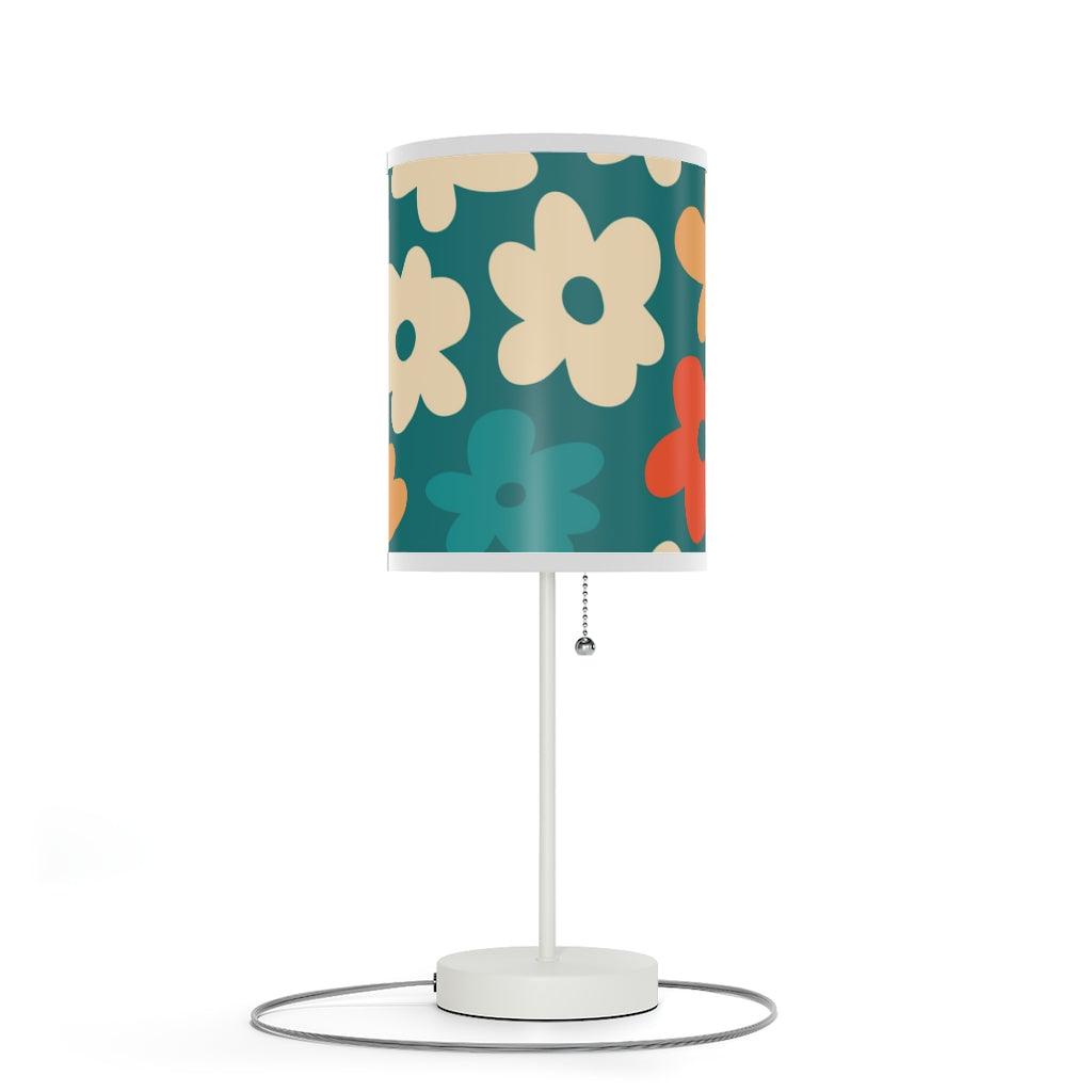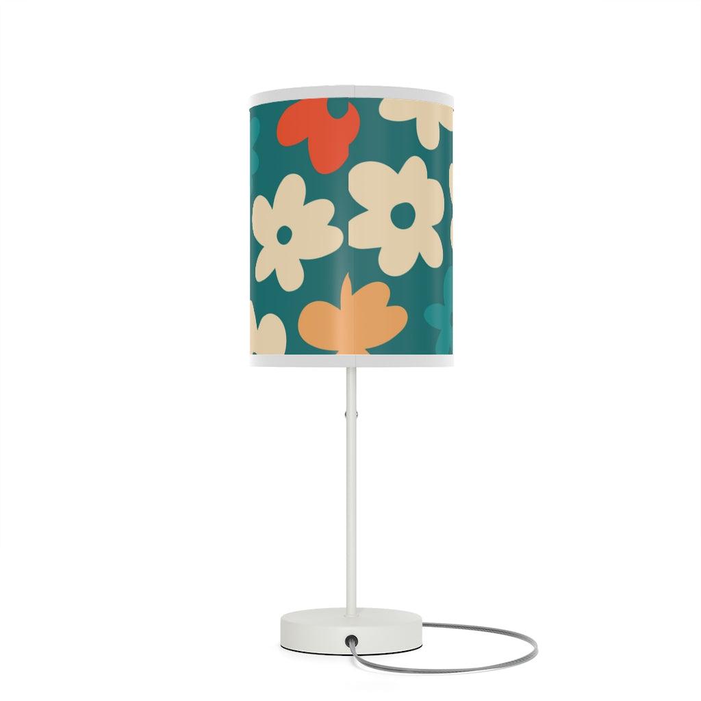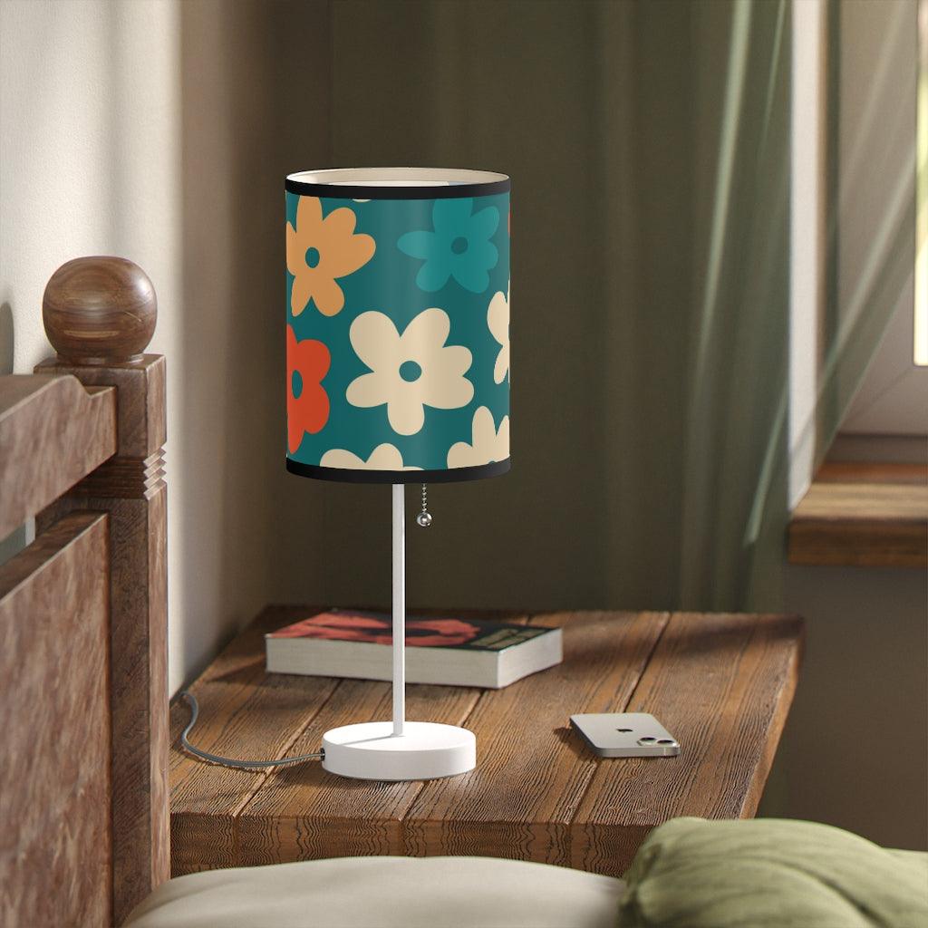 Boho Retro Flowers Teal MCM Tabletop Accent Lamp