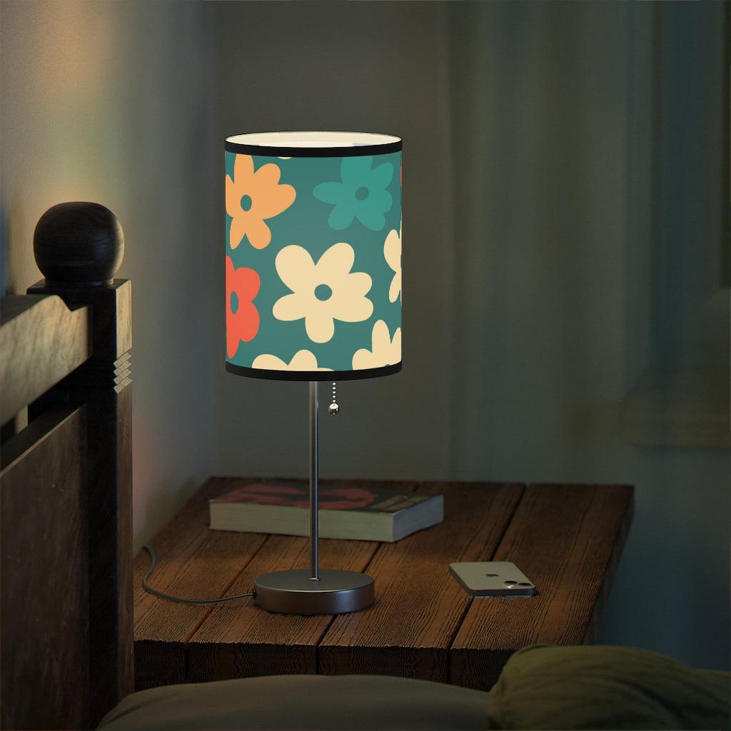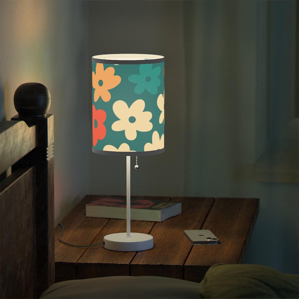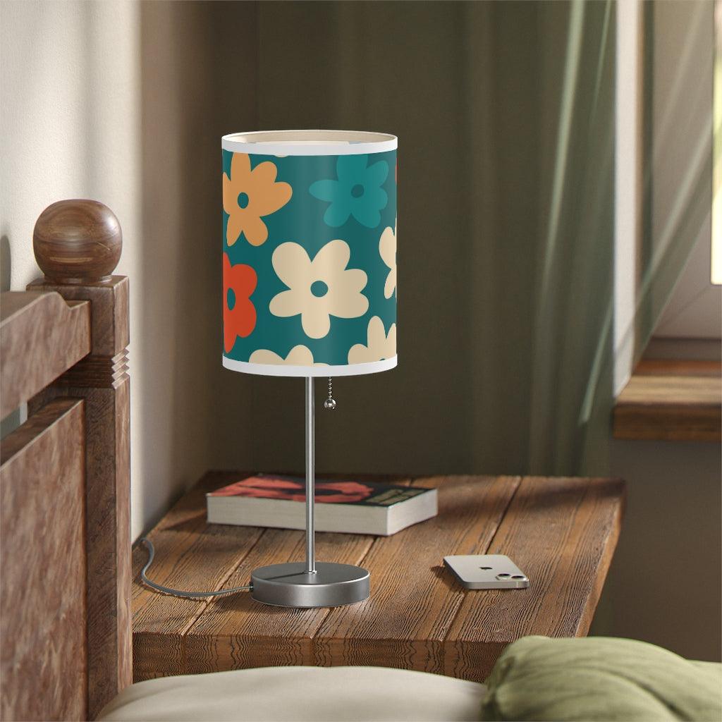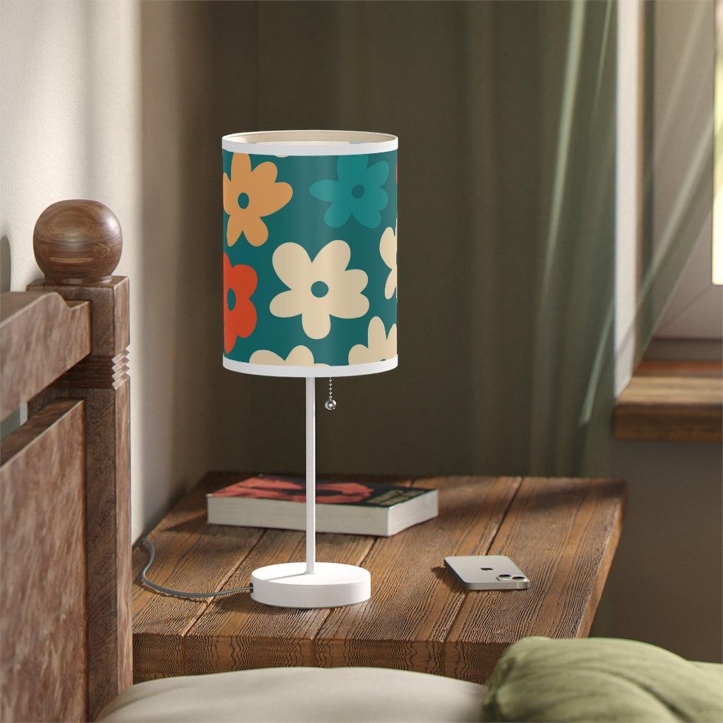 Boho Retro Flowers Teal MCM Tabletop Accent Lamp