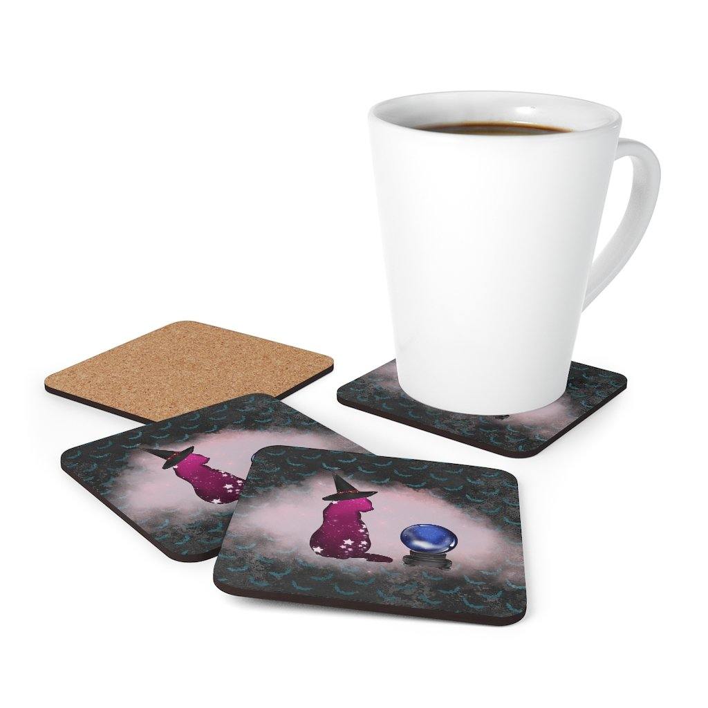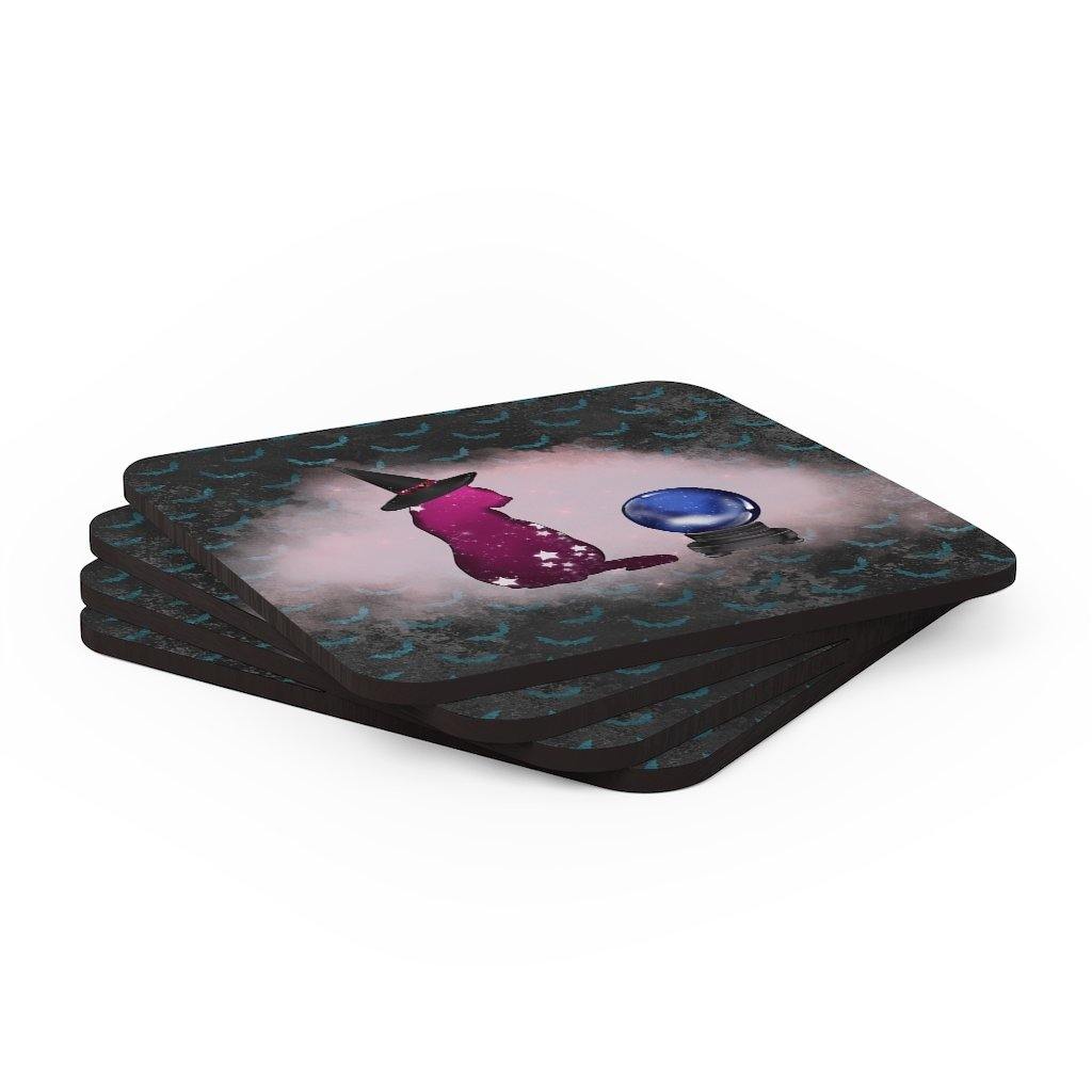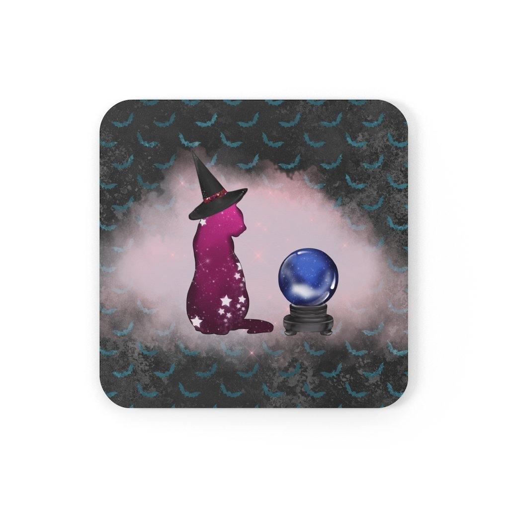 Halloween Coaster Set - Cosmic Witch Cat & Crystal Ball Glam Goth Decor