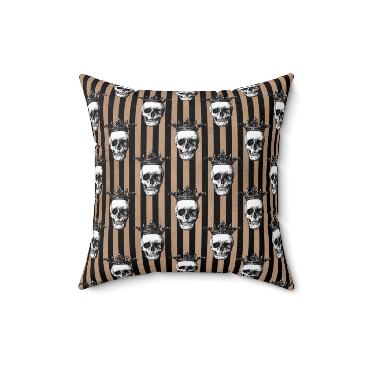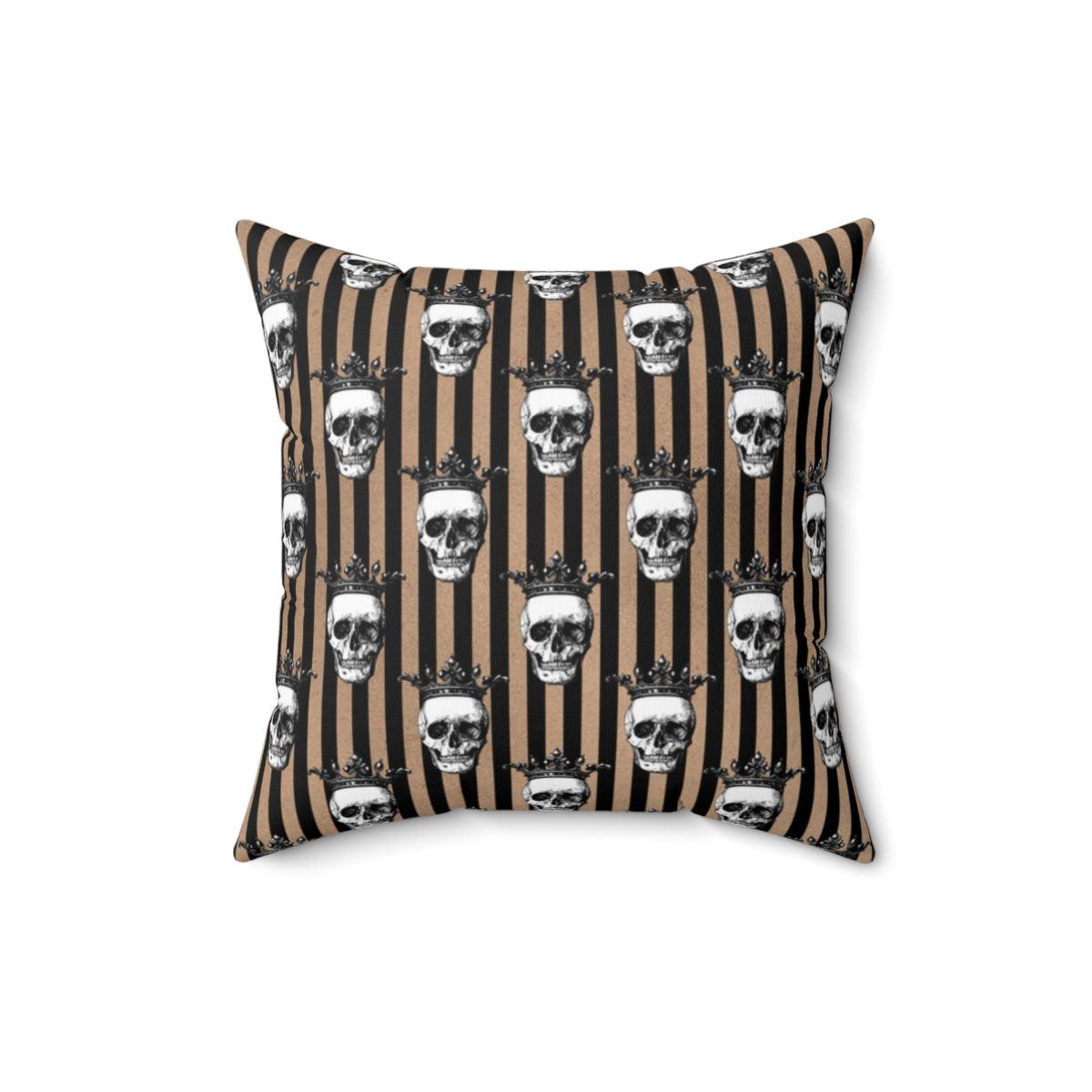 Crowned Skulls Halloween and Glam Goth Skull Home Decor, Tan and Black Stripe Pillow