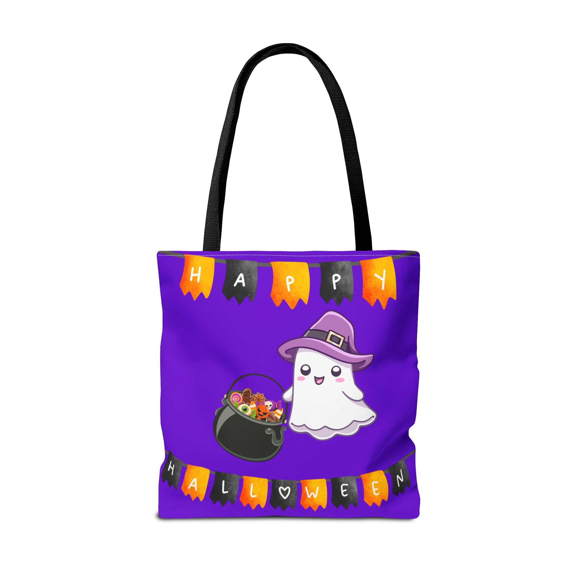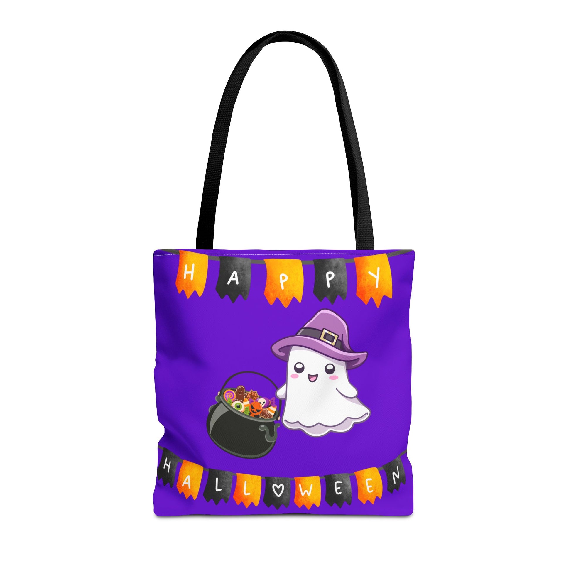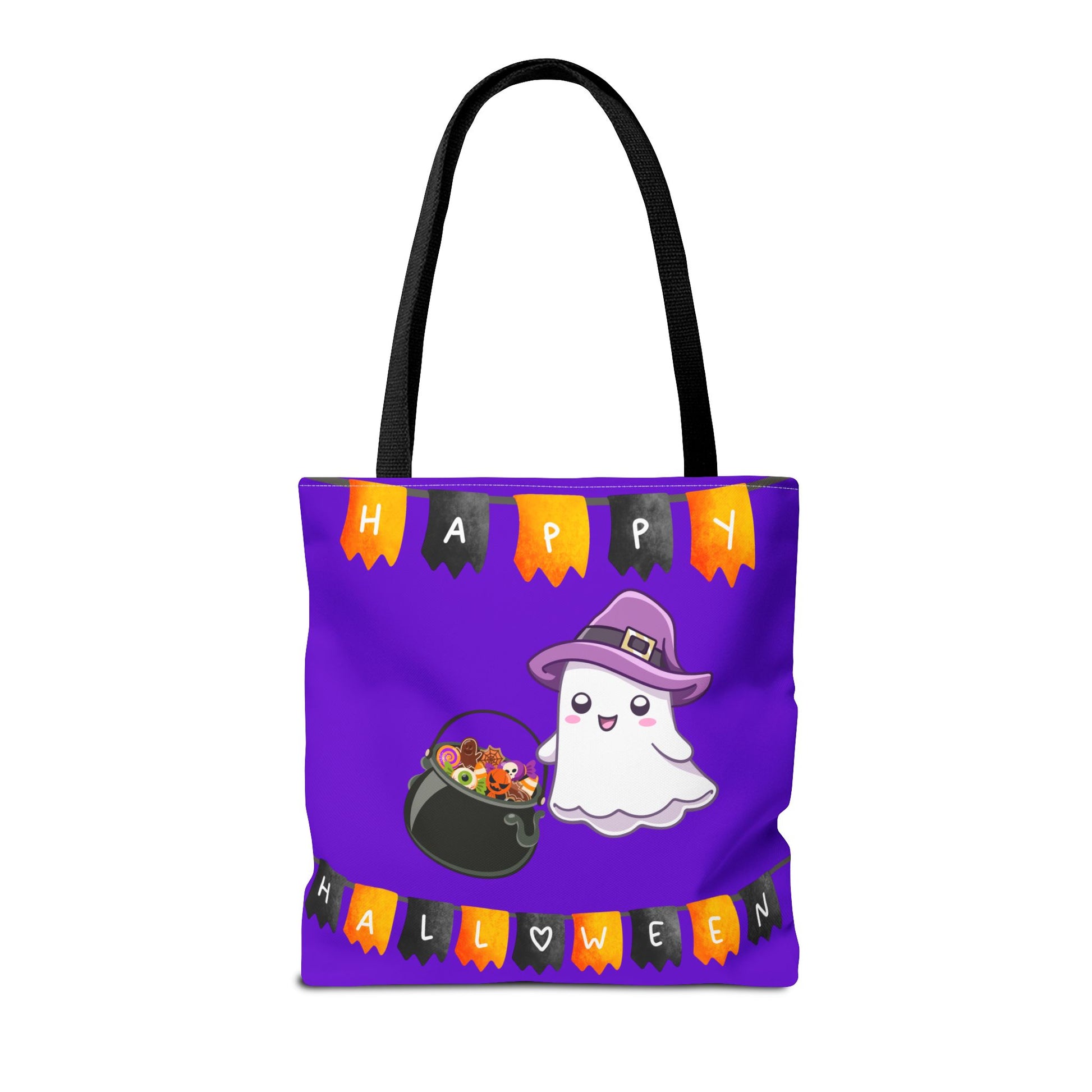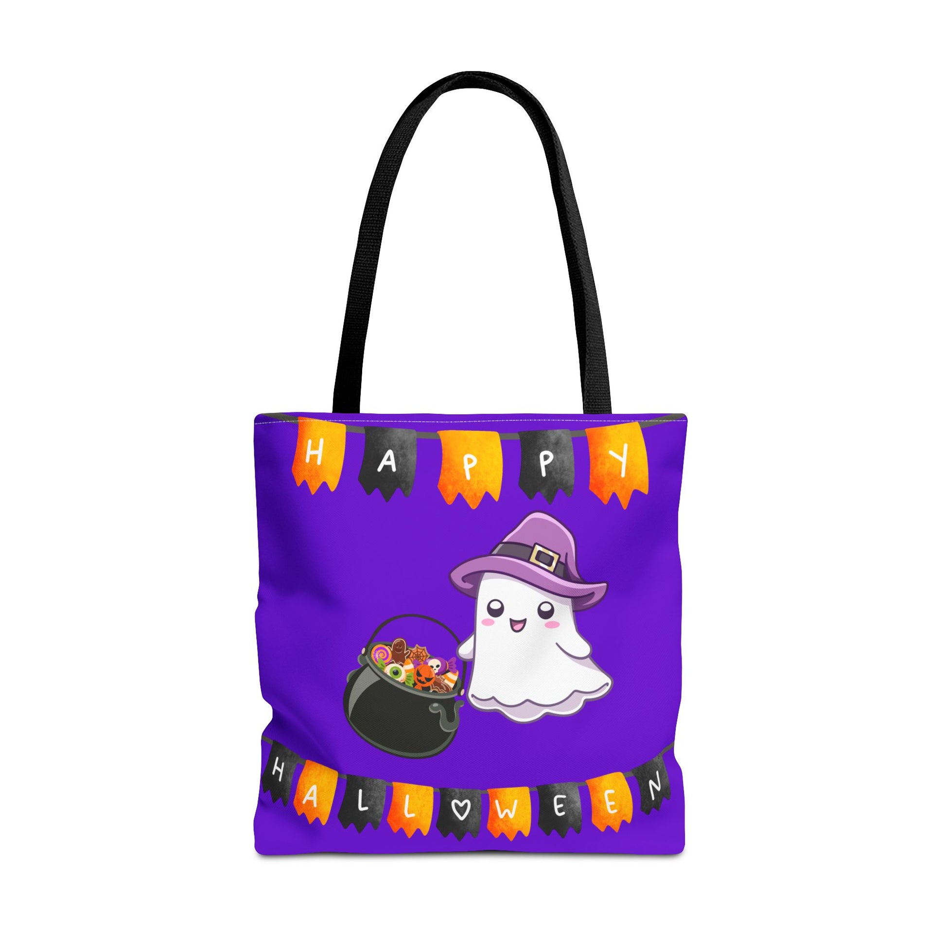 Cute Ghost Trick or Treating, Halloween Purple Tote Bag