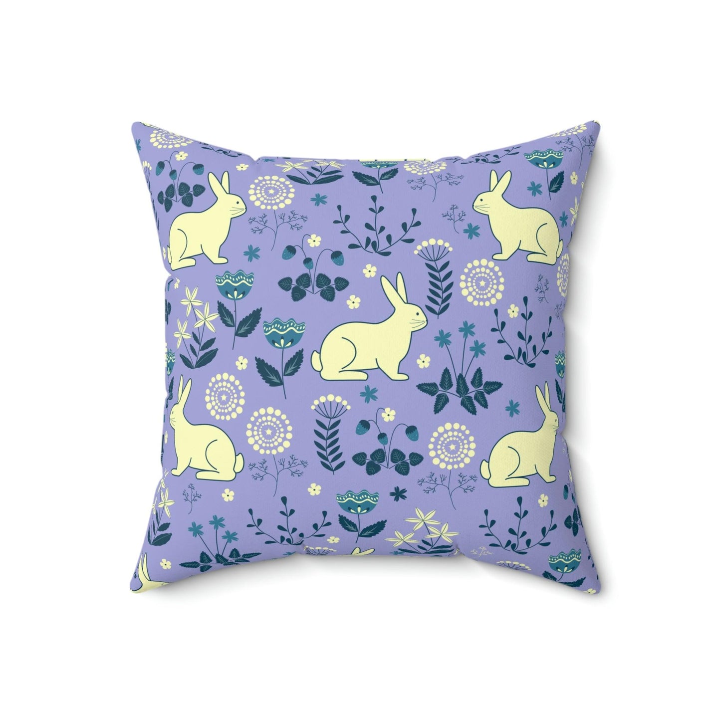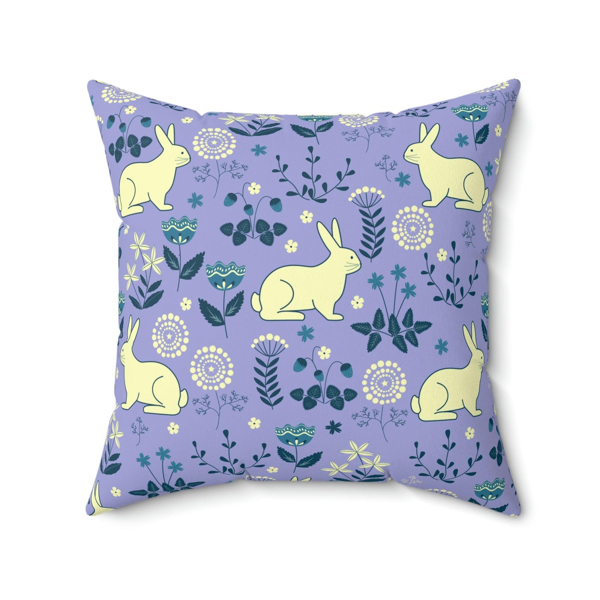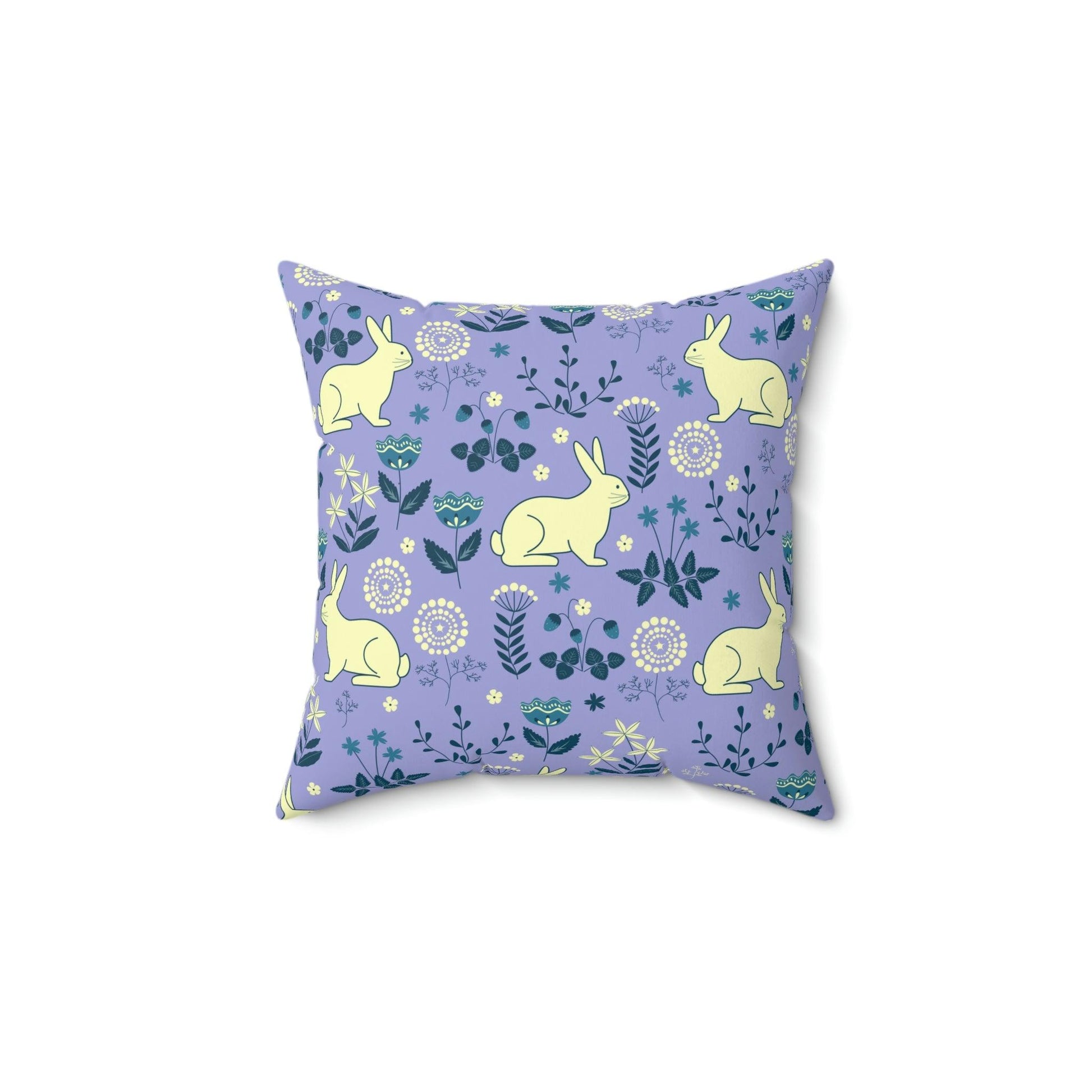 Easter Bunnies and Florals Retro Blue and Purple MCM Pillow