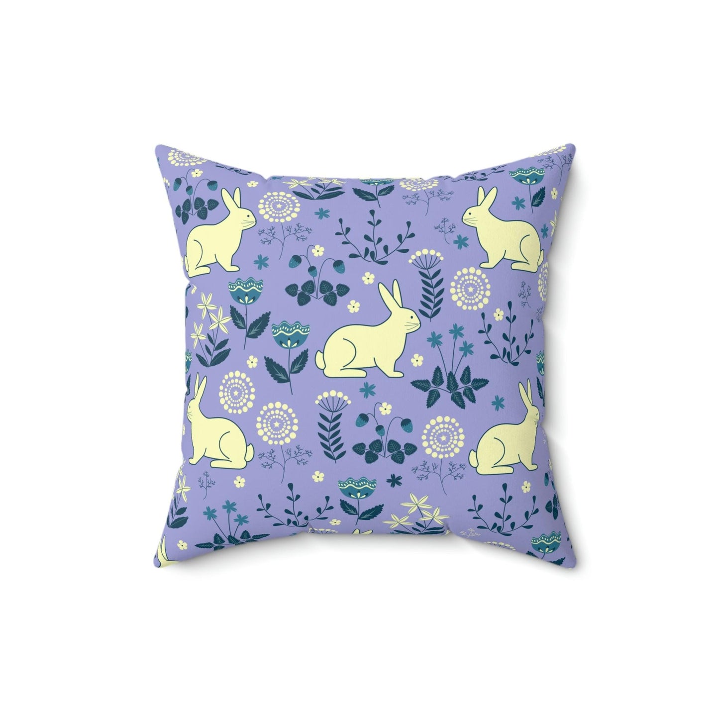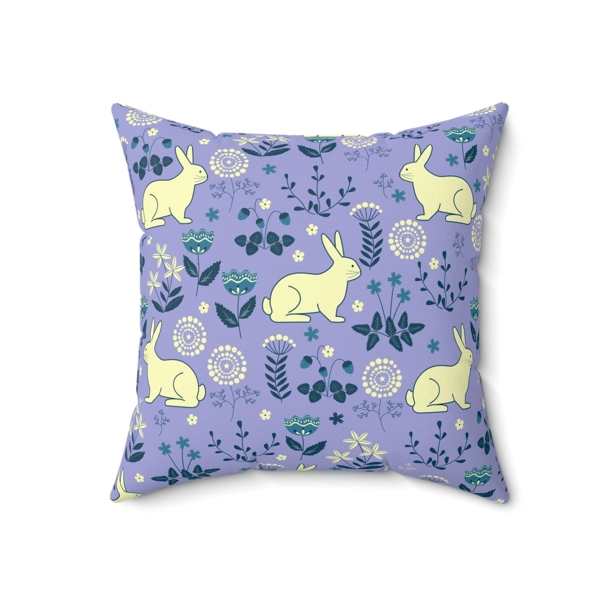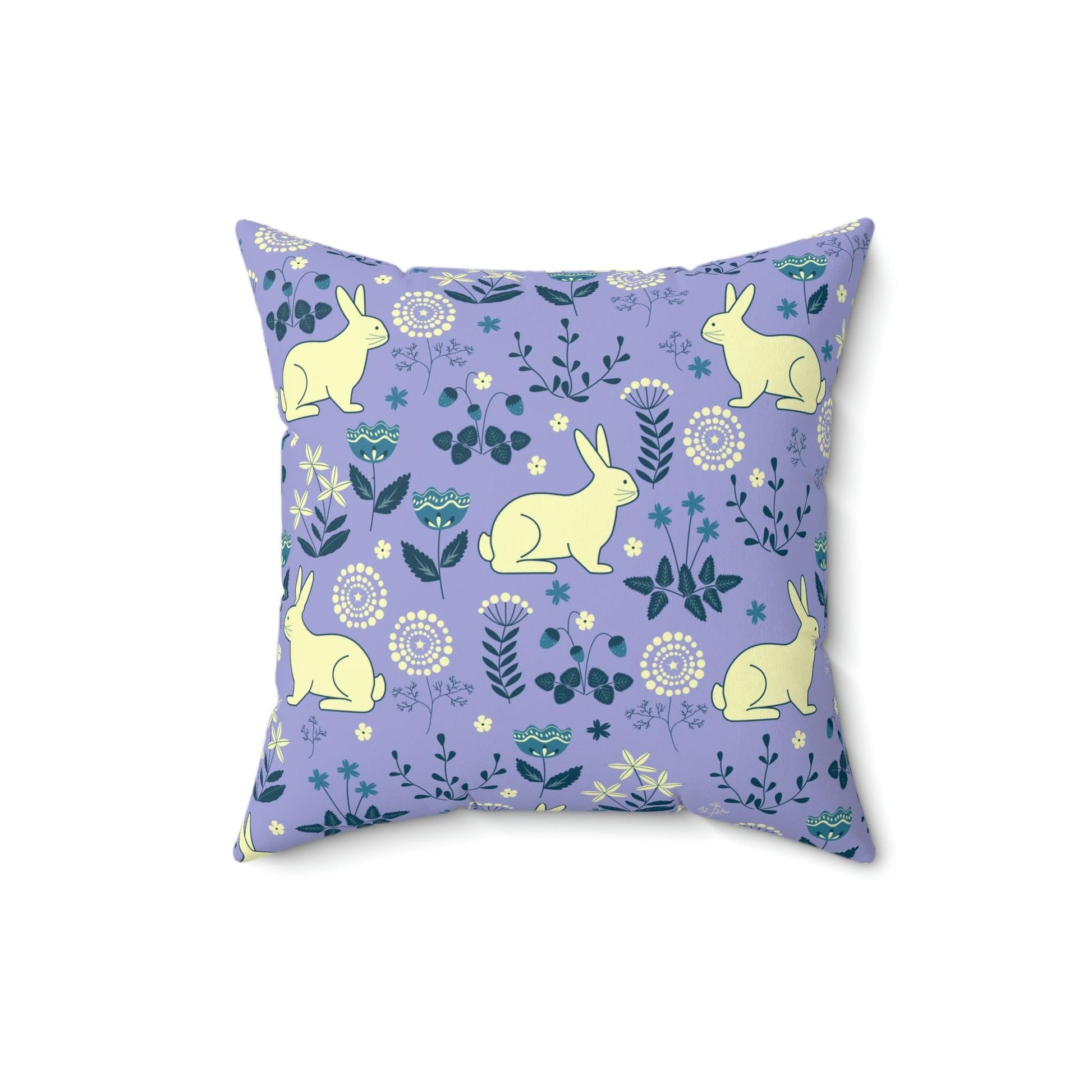 Easter Bunnies and Florals Retro Blue and Purple MCM Pillow