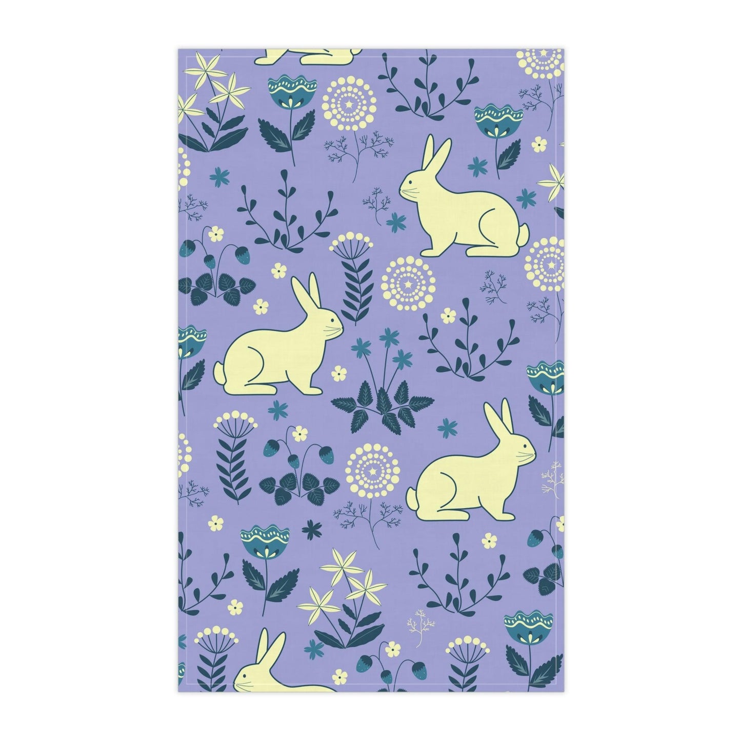 Easter Bunnies & Florals Retro Blue & Purple Kitchen Tea Towel