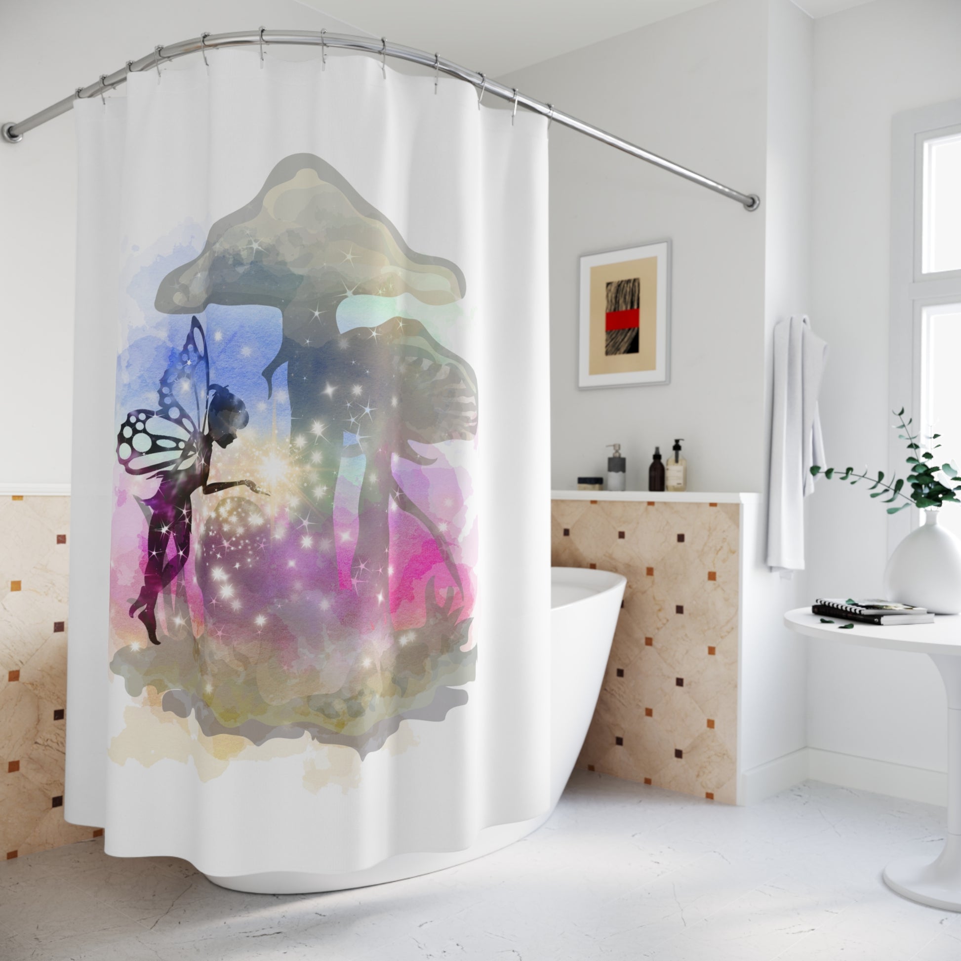 Fairy and Toad Stool Watercolor Style Whimsical Shower Curtain