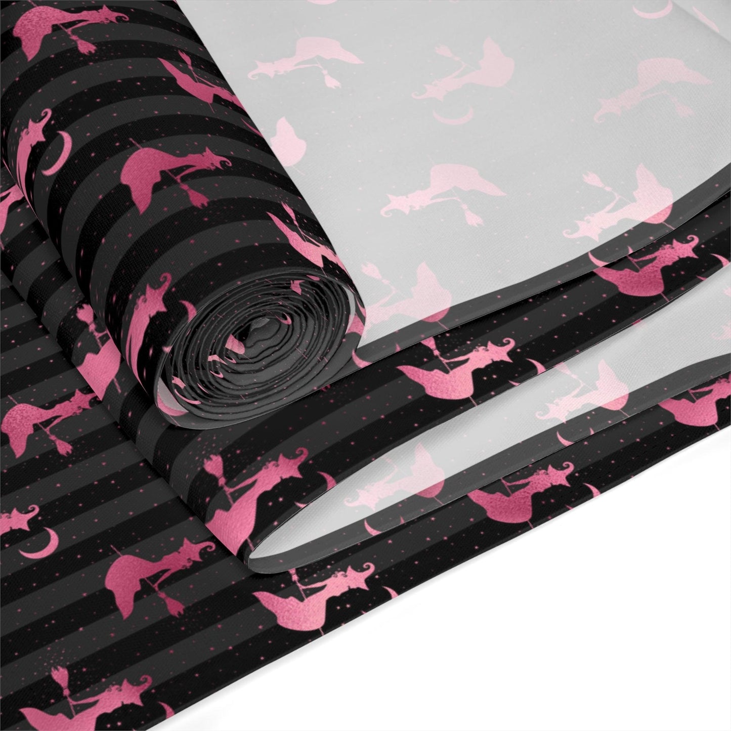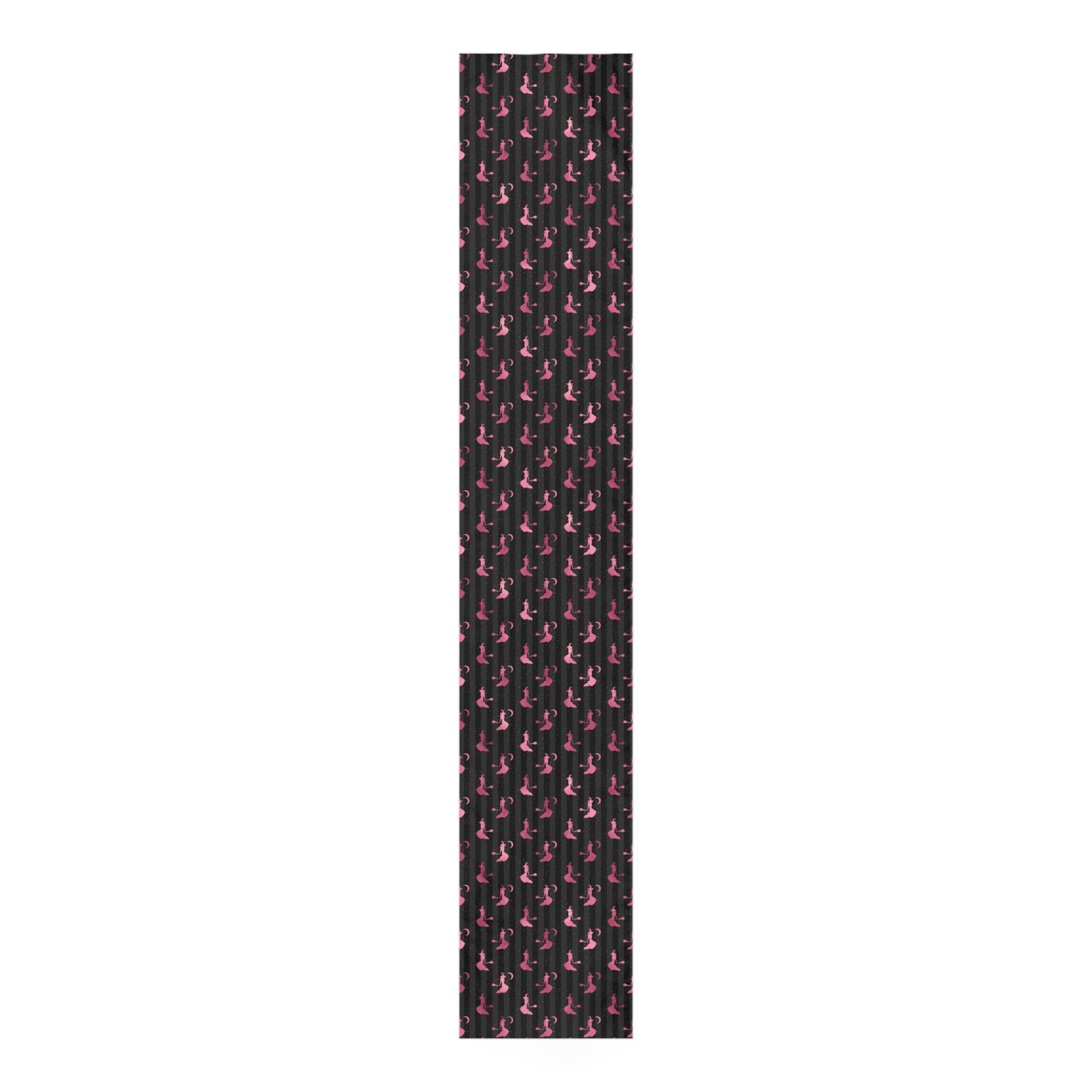 Flying Witch Glam Goth Pink and Black Halloween Table Runner