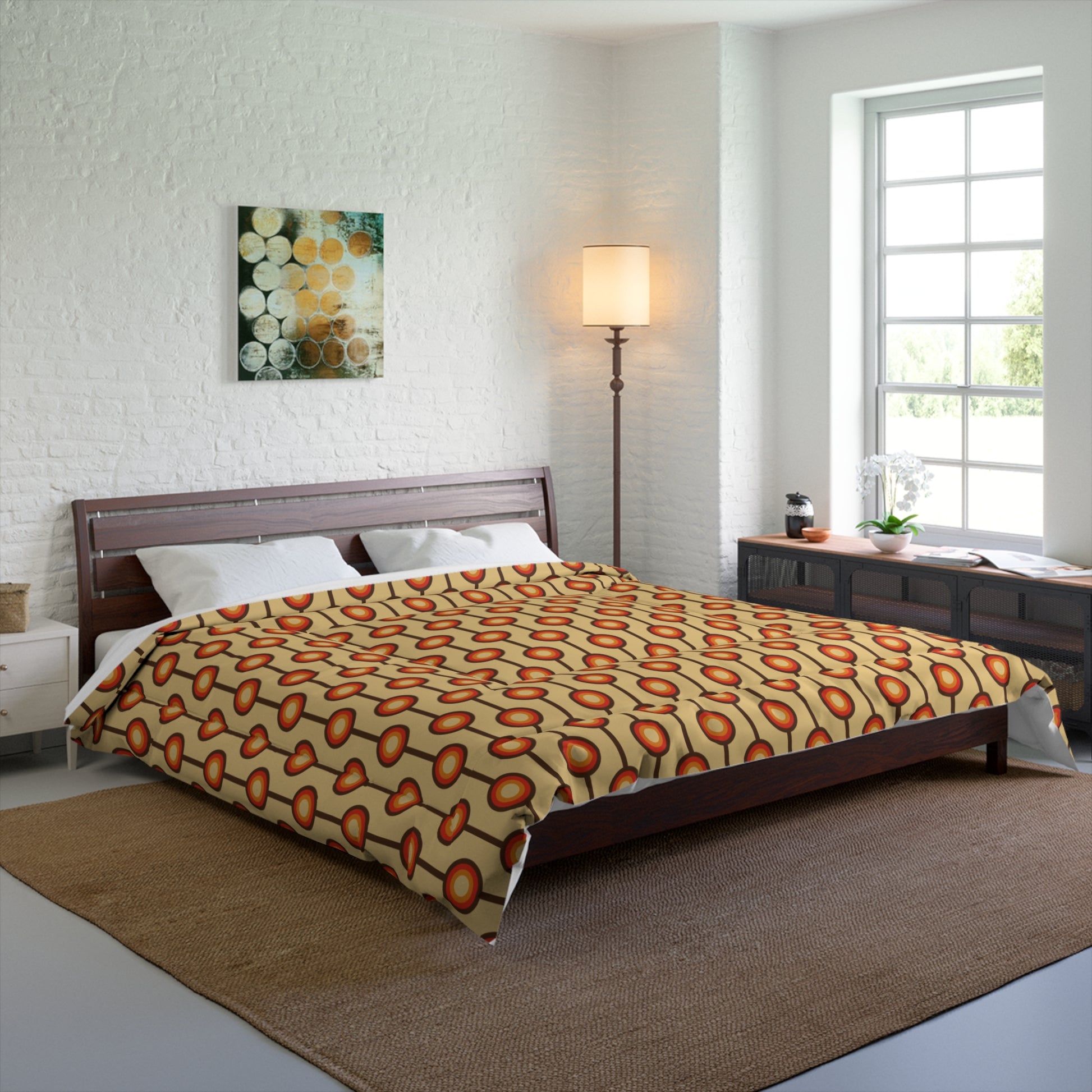 The groovy geometric pattern gives this lightweight comforter a lot of fun, retro style with a mid century mod color palette! This gorgeously funky comforter looks like it came right out of the 1960's or 70's, which is perfect for your retro aesthetic!