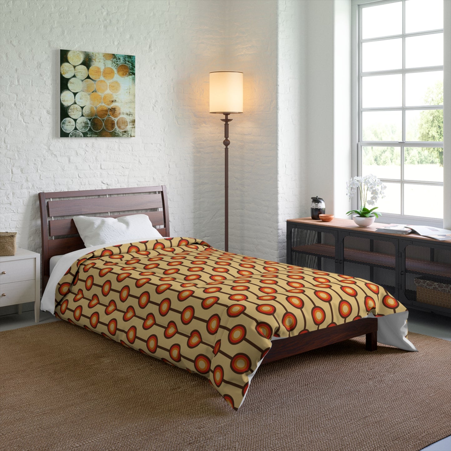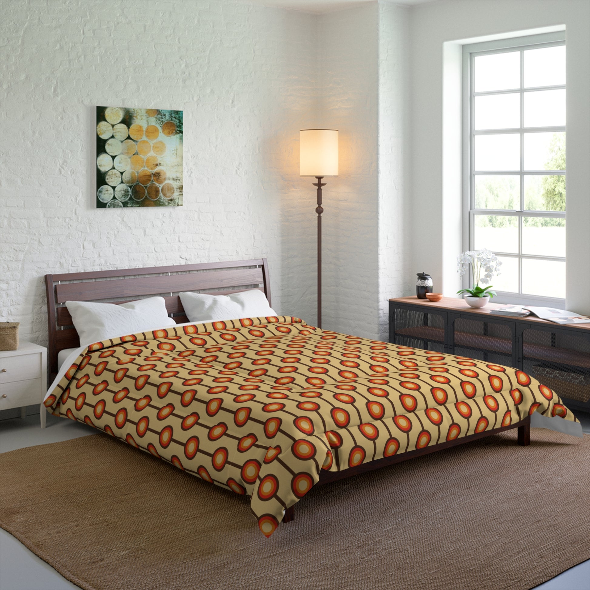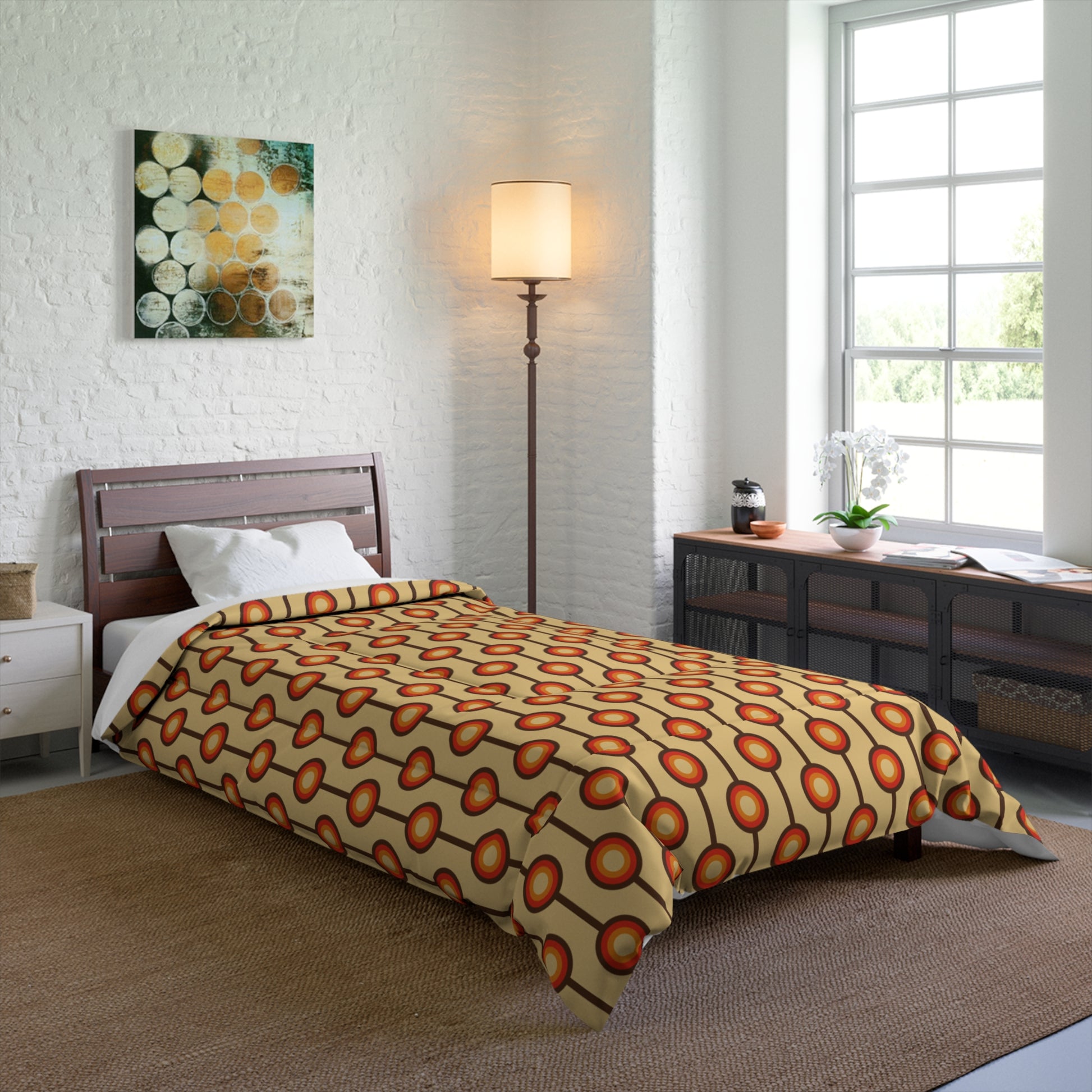 Funky 70s Retro MCM Brown, Orange & Beige Comforter