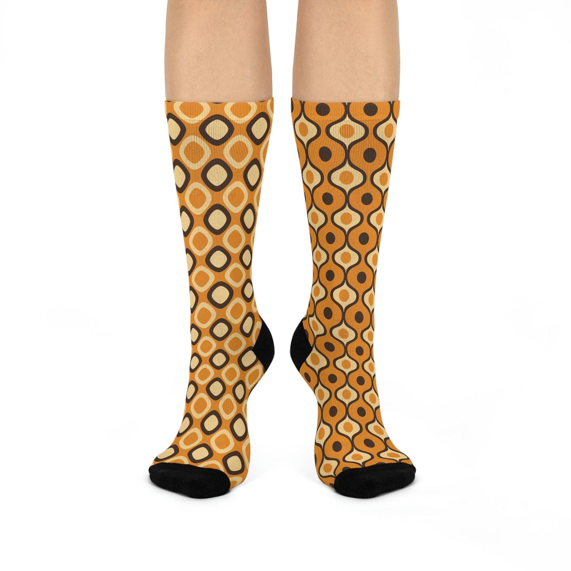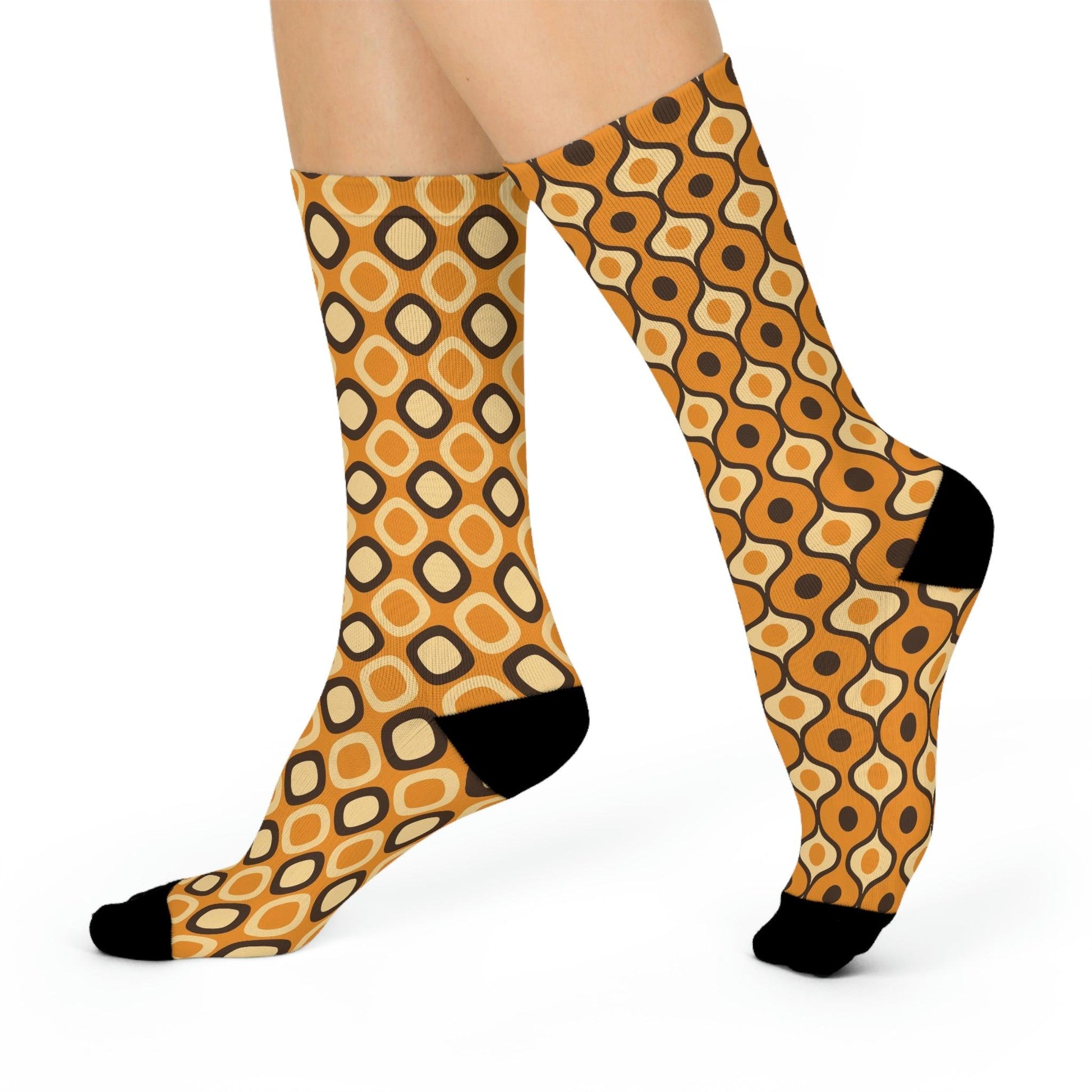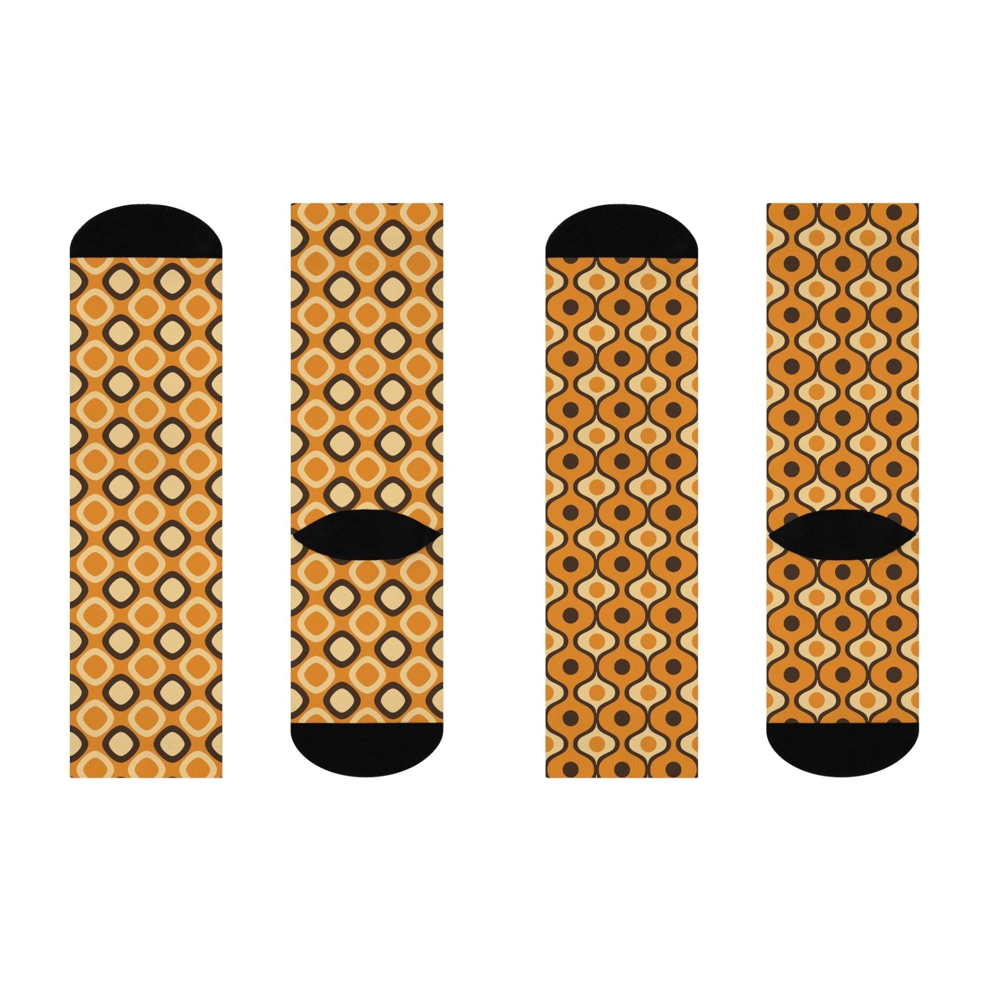Funky Mismatched Retro MCM Mustard Cushioned Unisex Crew Socks