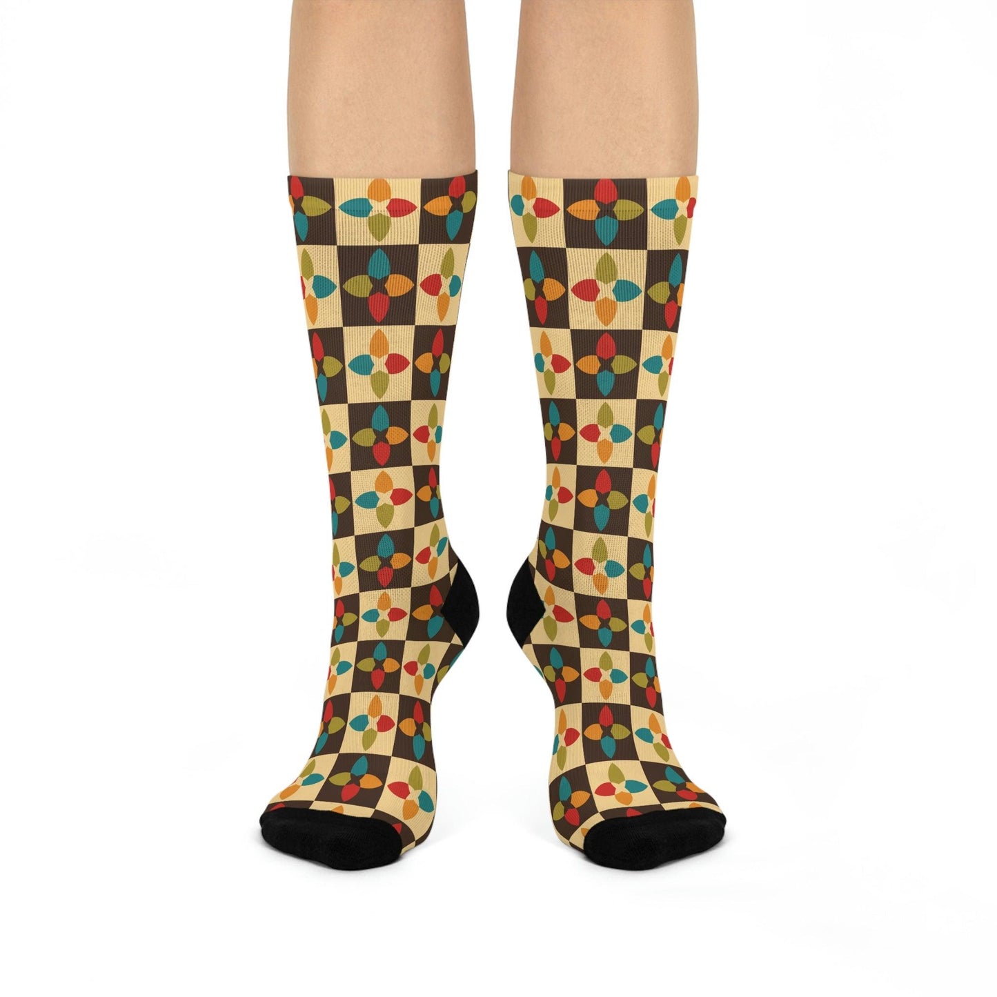 Step up your style game with our fun, retro inspired socks! The cushioned soles and funky design will add some pep to your step and make them the perfect combo of style and comfort! Don't be a square, add some retro cool to your sock game today and be the talk of the town (or at least the office)!