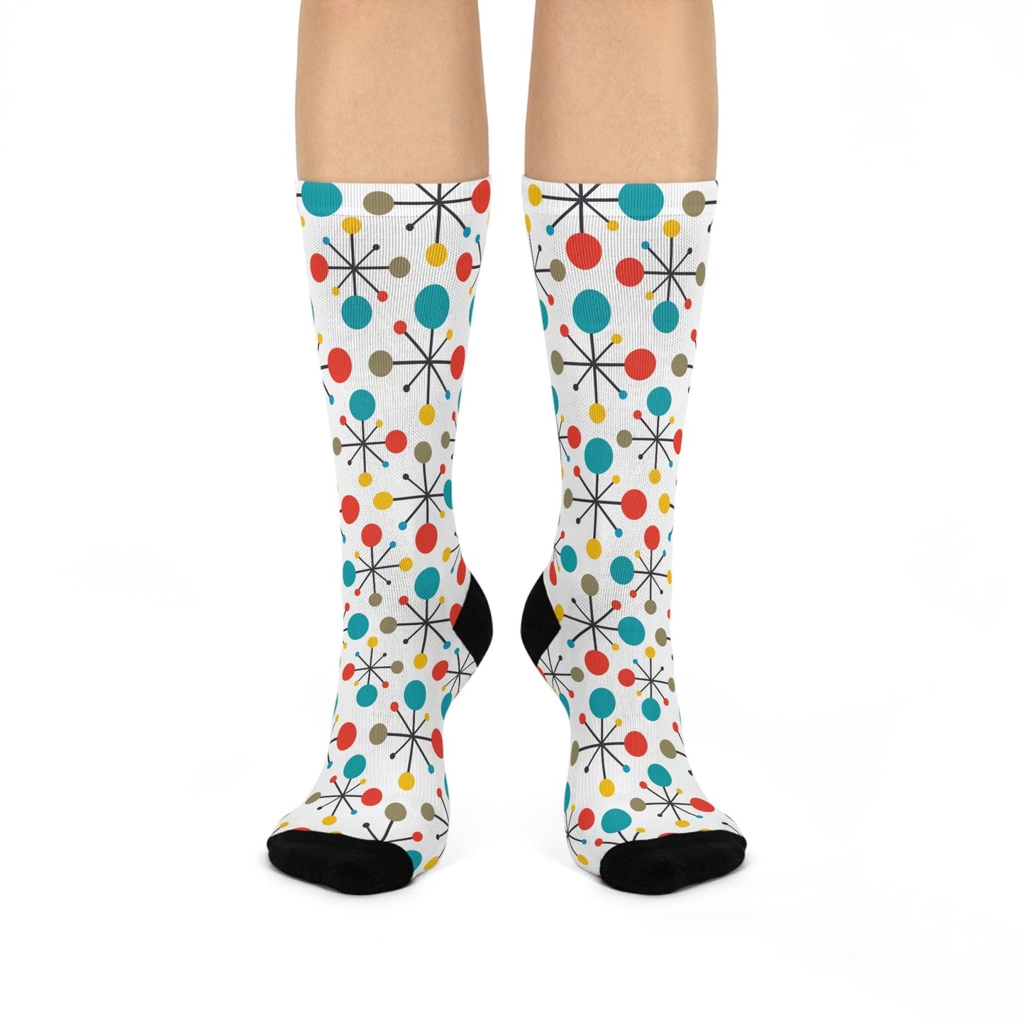 Step up your style game with our fun and colorful retro inspired socks! The cushioned soles and funky starburst design will add some pep to your step and make them the perfect combo of style and comfort! Don't be a square, add some retro cool to your sock game today and be the talk of the town (or at least the office)!
