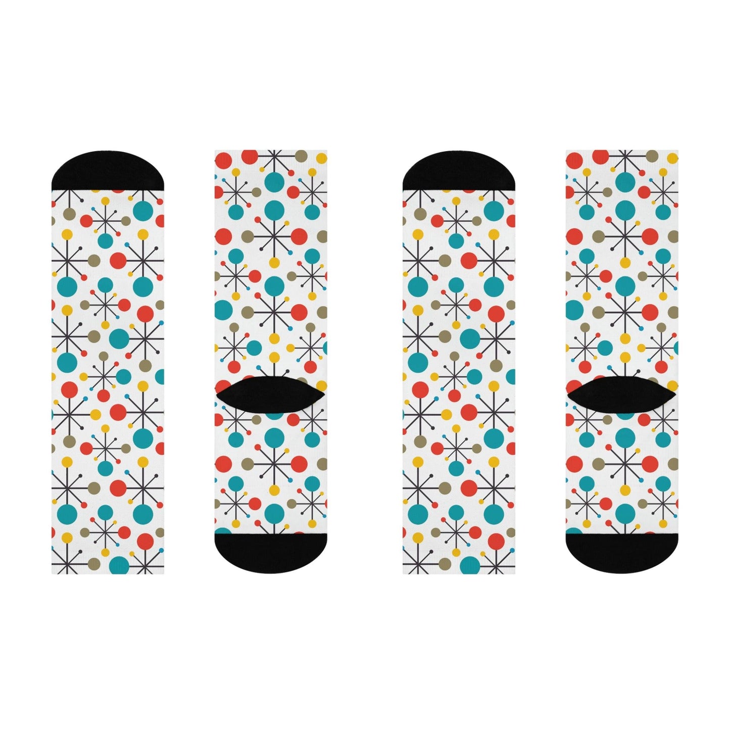 Funky Retro Starburst MCM Multicolor Cushioned Unisex Crew Socks