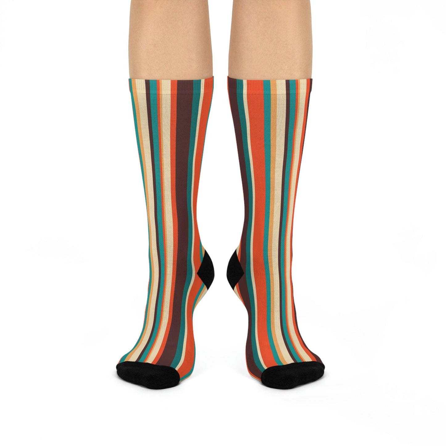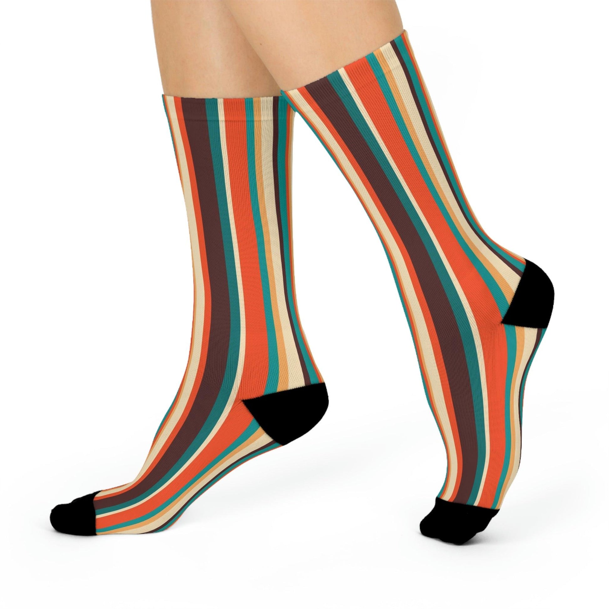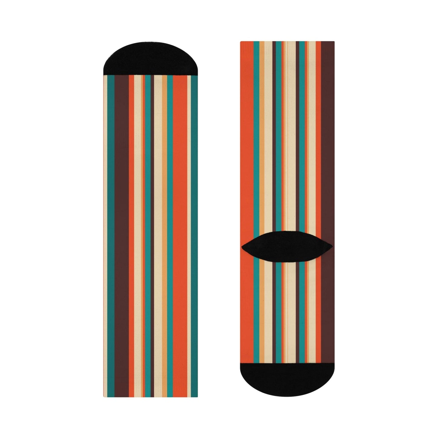 Funky Retro Striped Brown and Orange Cushioned Unisex Crew Socks
