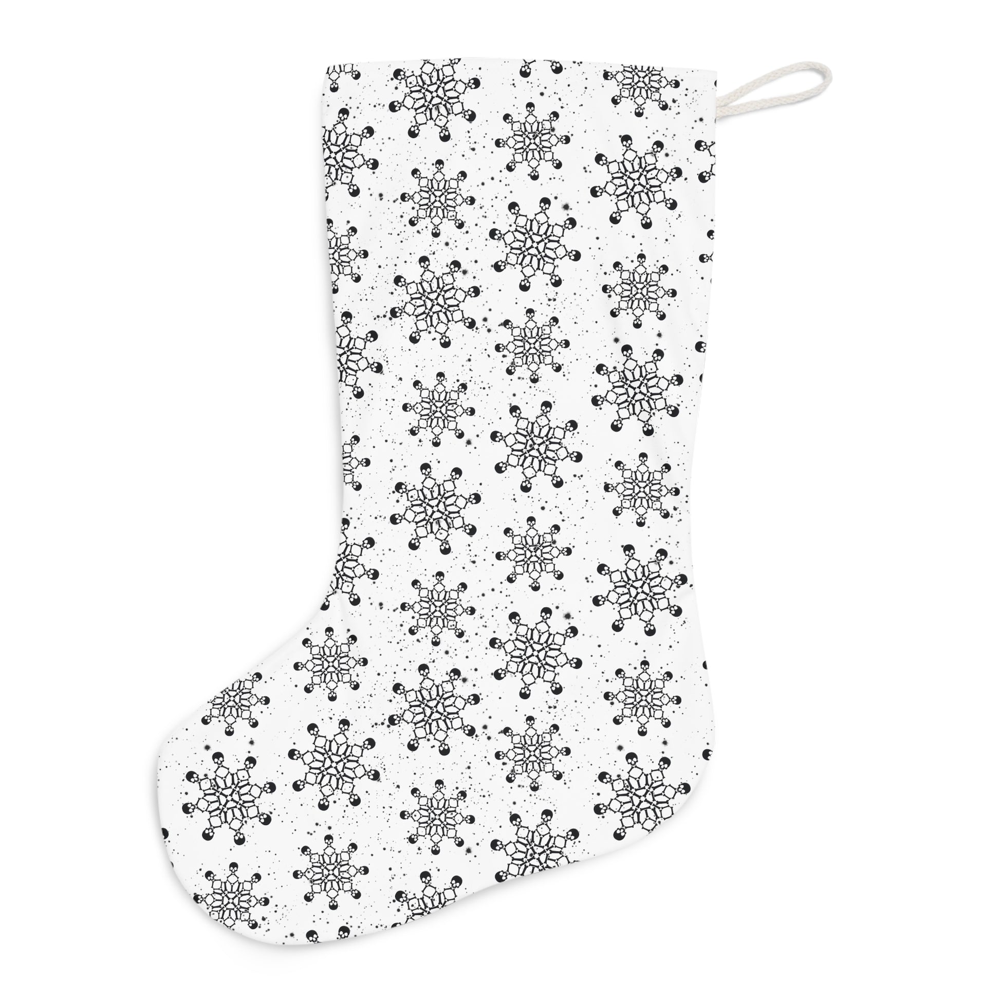 Goth Christmas Creepy Skull Snowflake, Scary Creepmas White Holiday Stocking