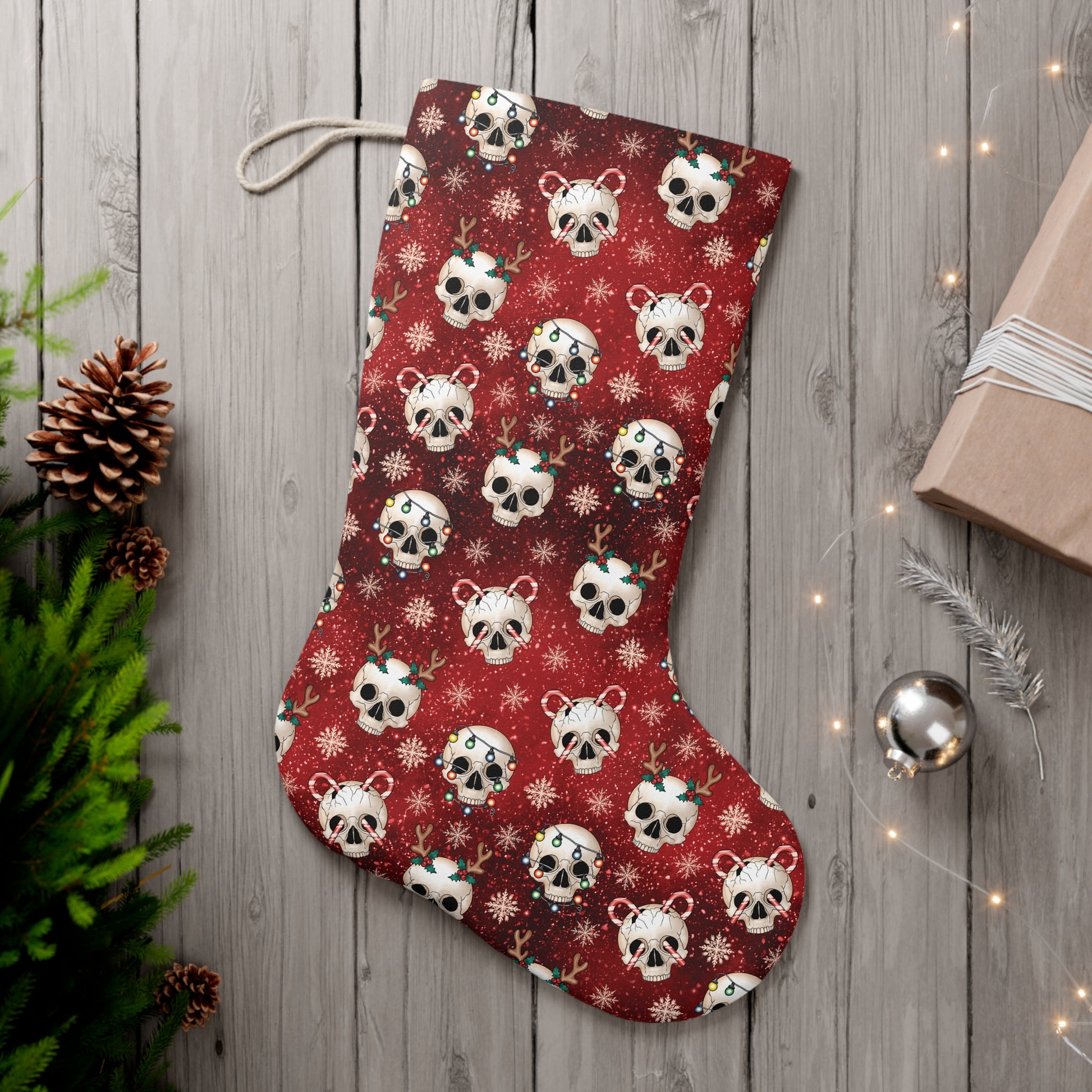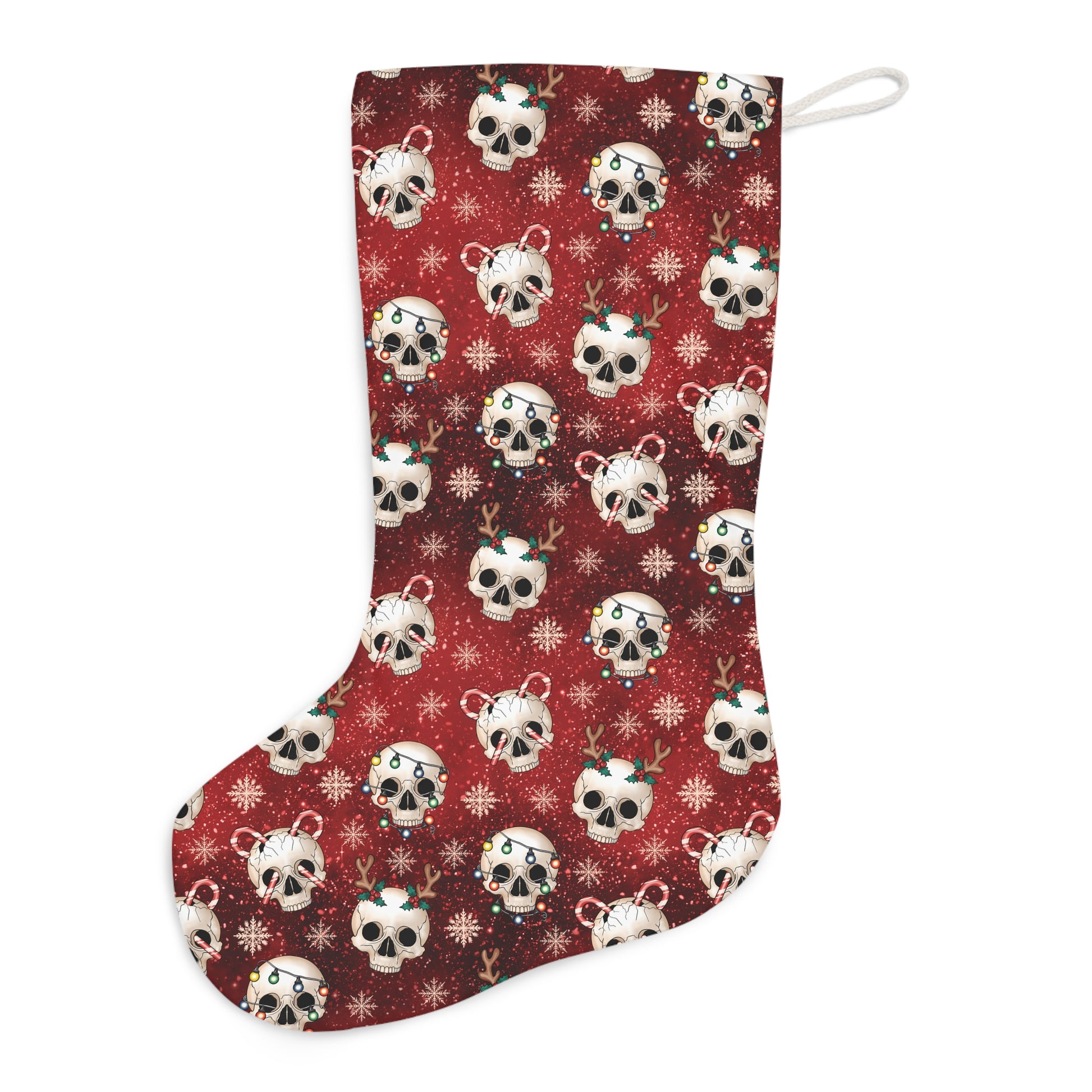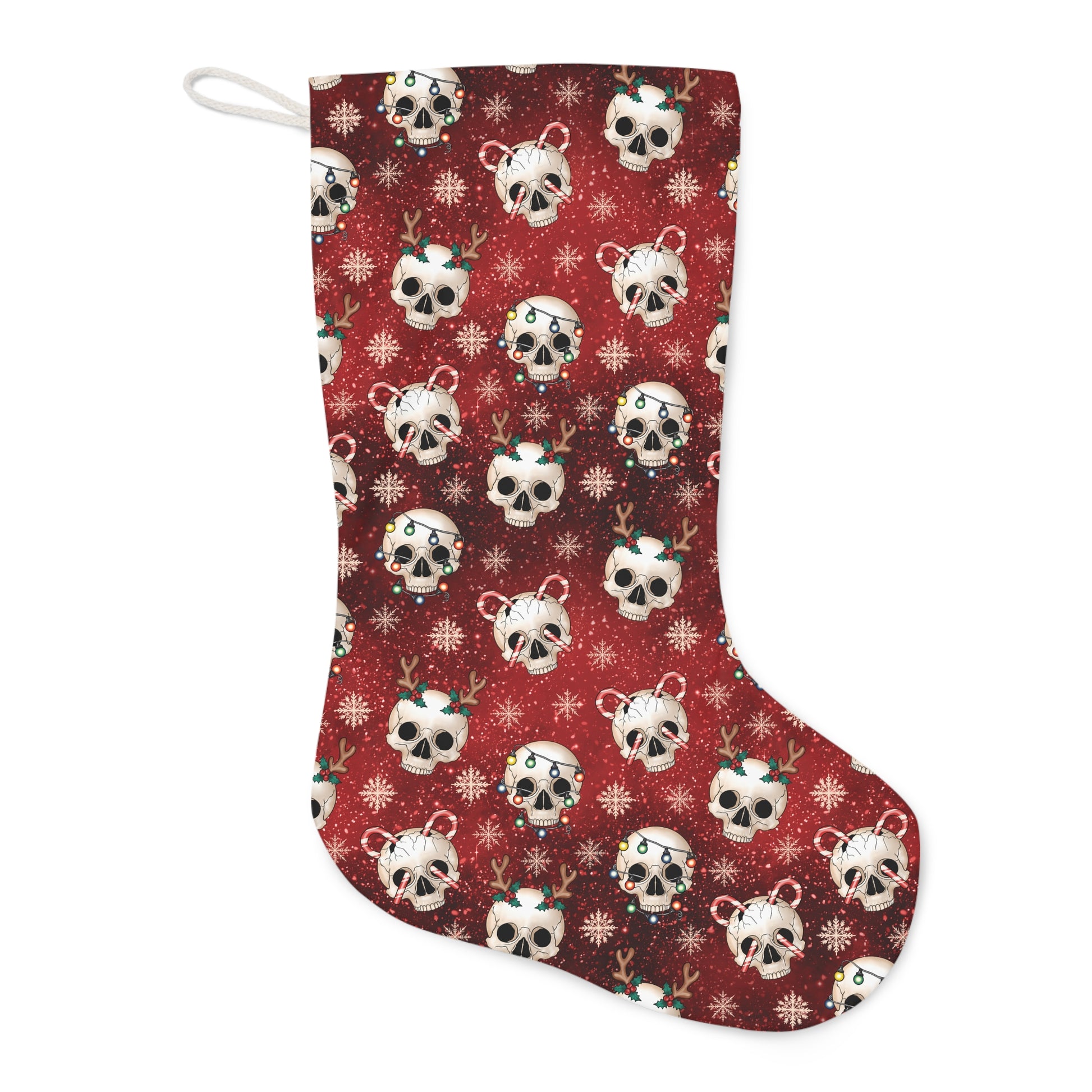Goth Christmas Festive Skulls, Kitschy Creepmas Red Gothmas Holiday Stocking