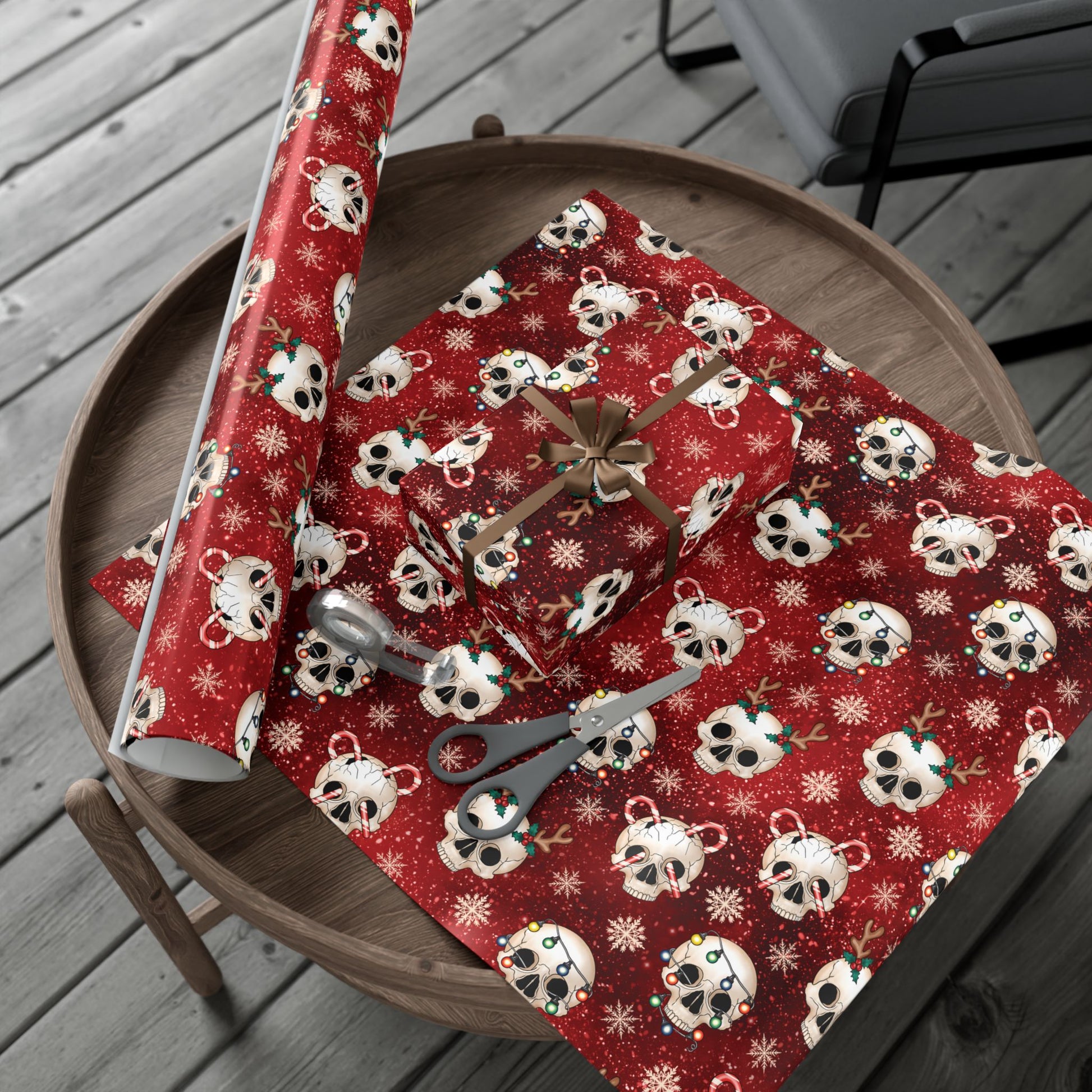 Goth Christmas Skulls Festive Red Creepmas Eco-Friendly Gift Wrap