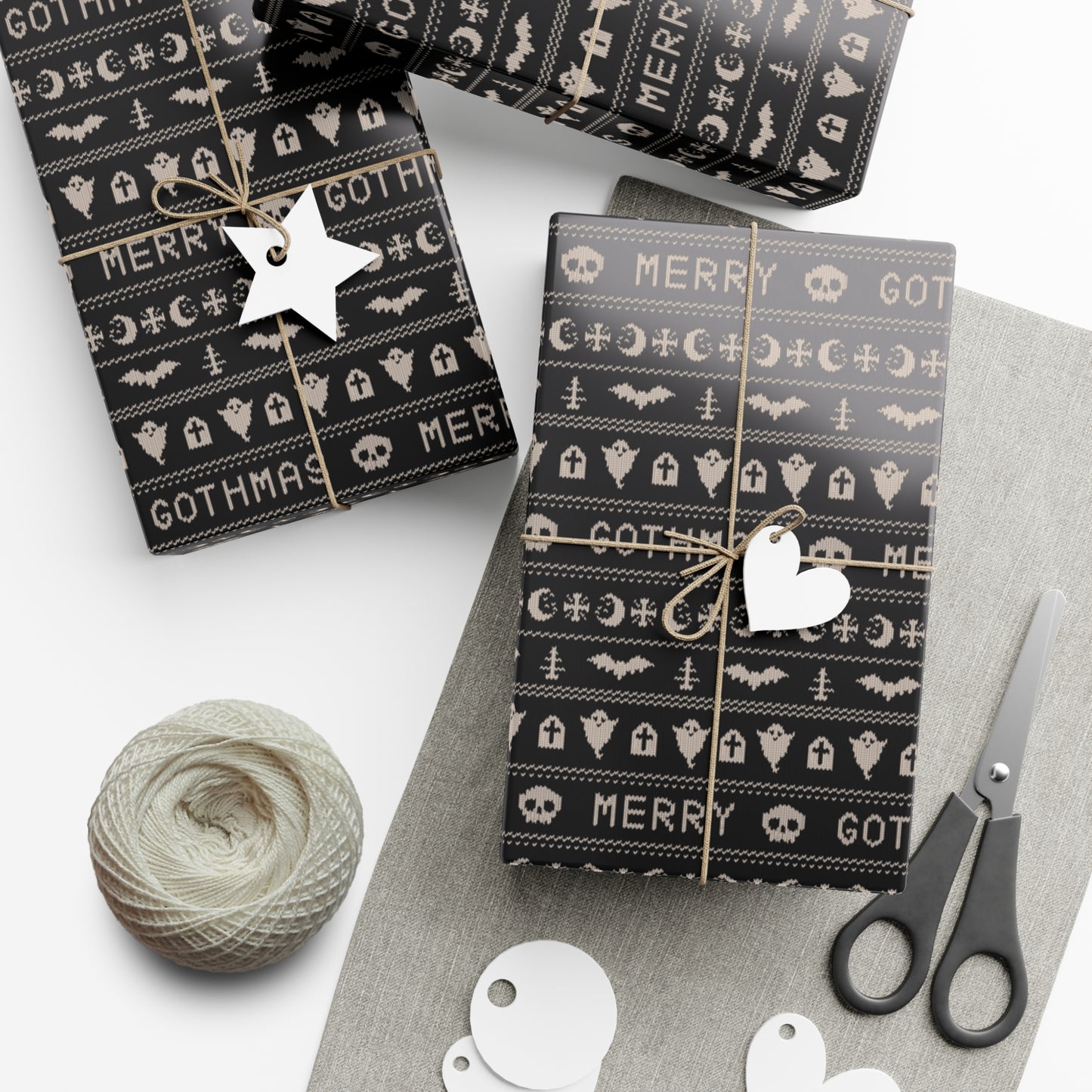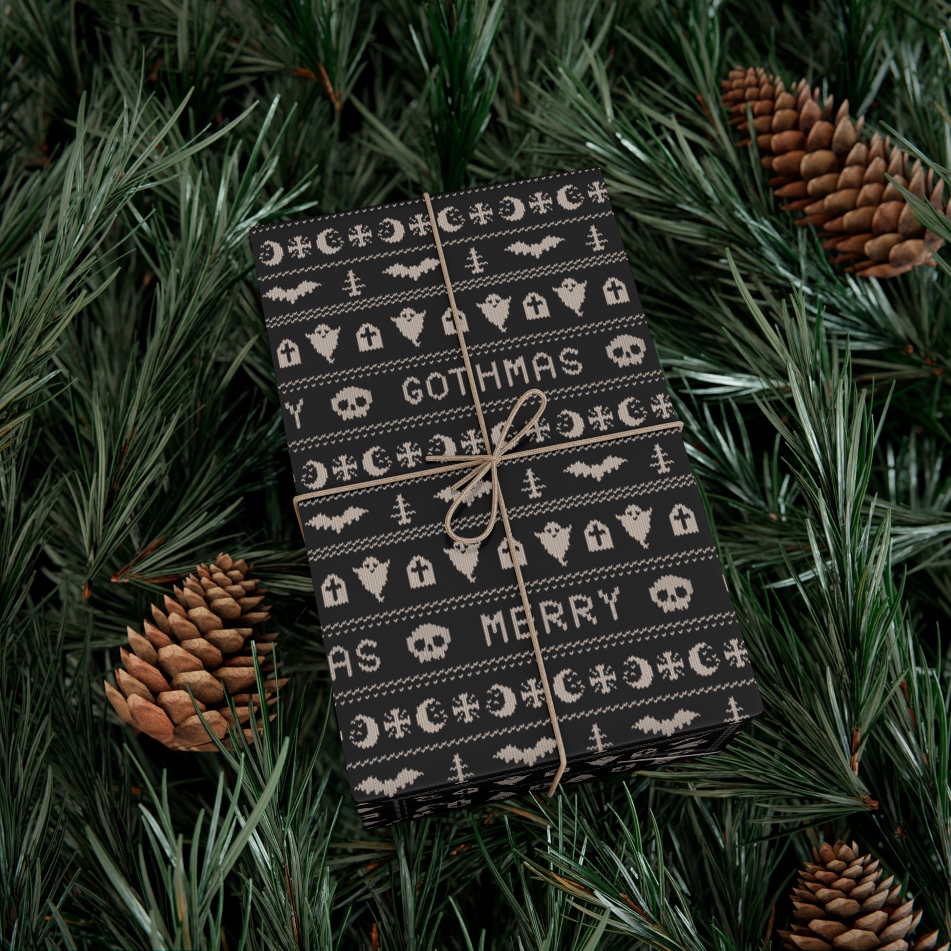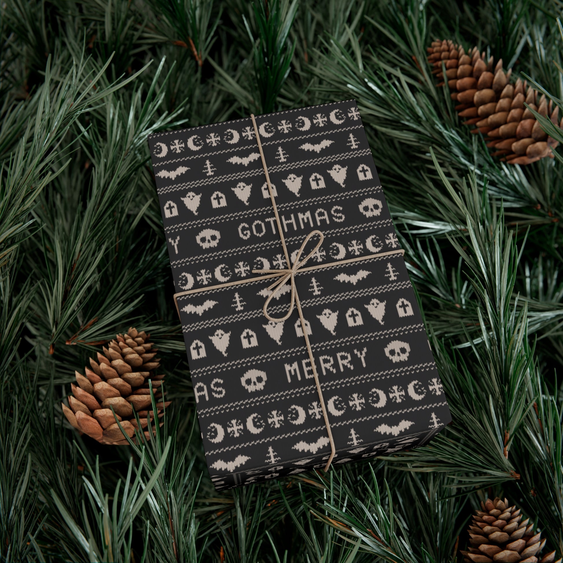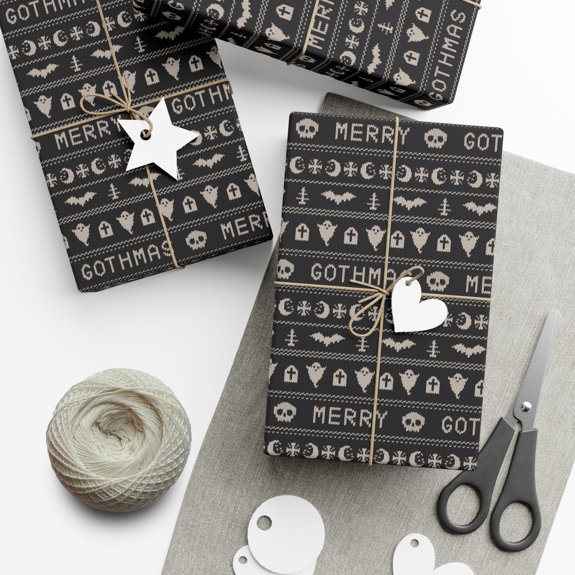 Goth Christmas Ugly Sweater Inspired, Gothmas & Kitschy Creepmas Black Eco-Friendly Holiday Gift Wrap
