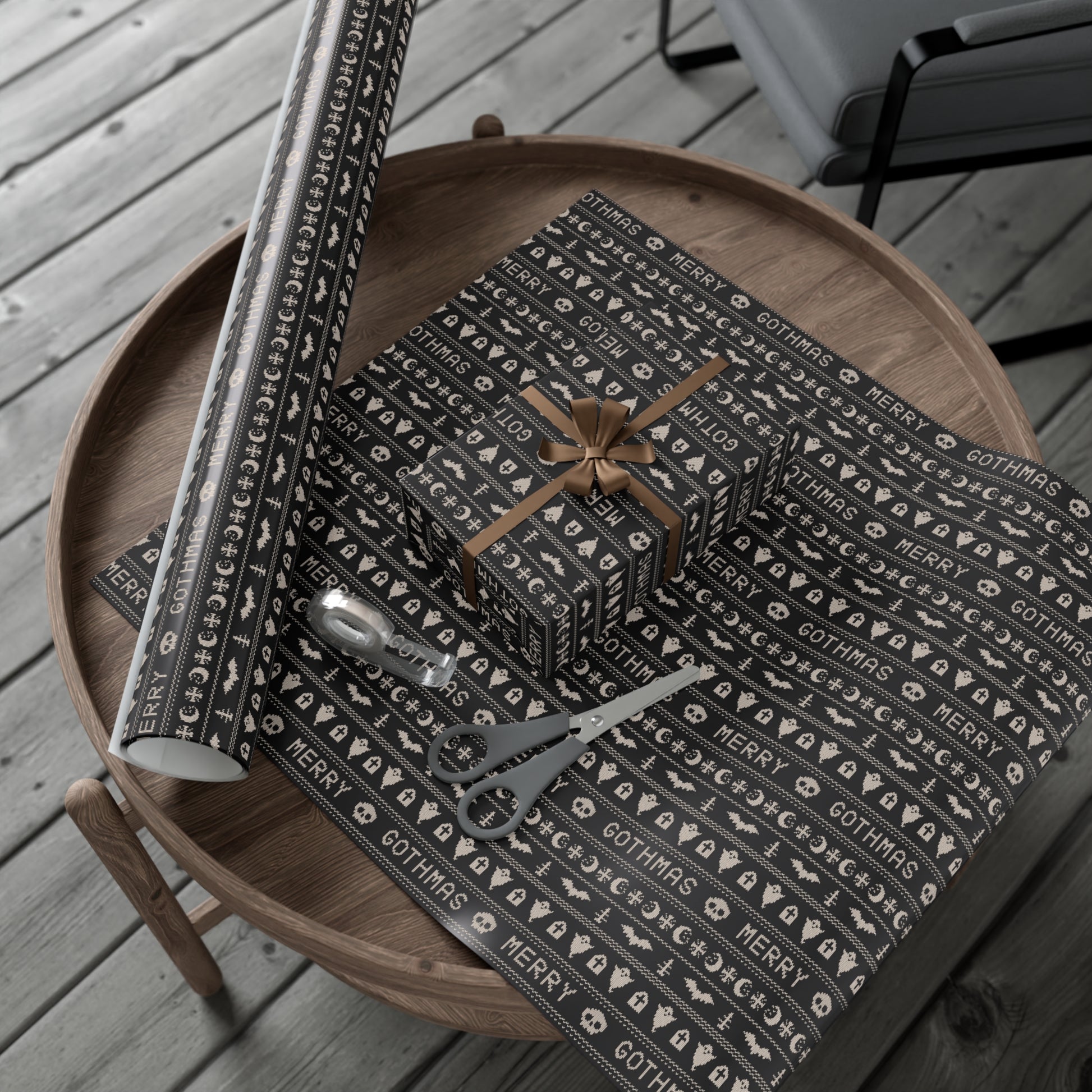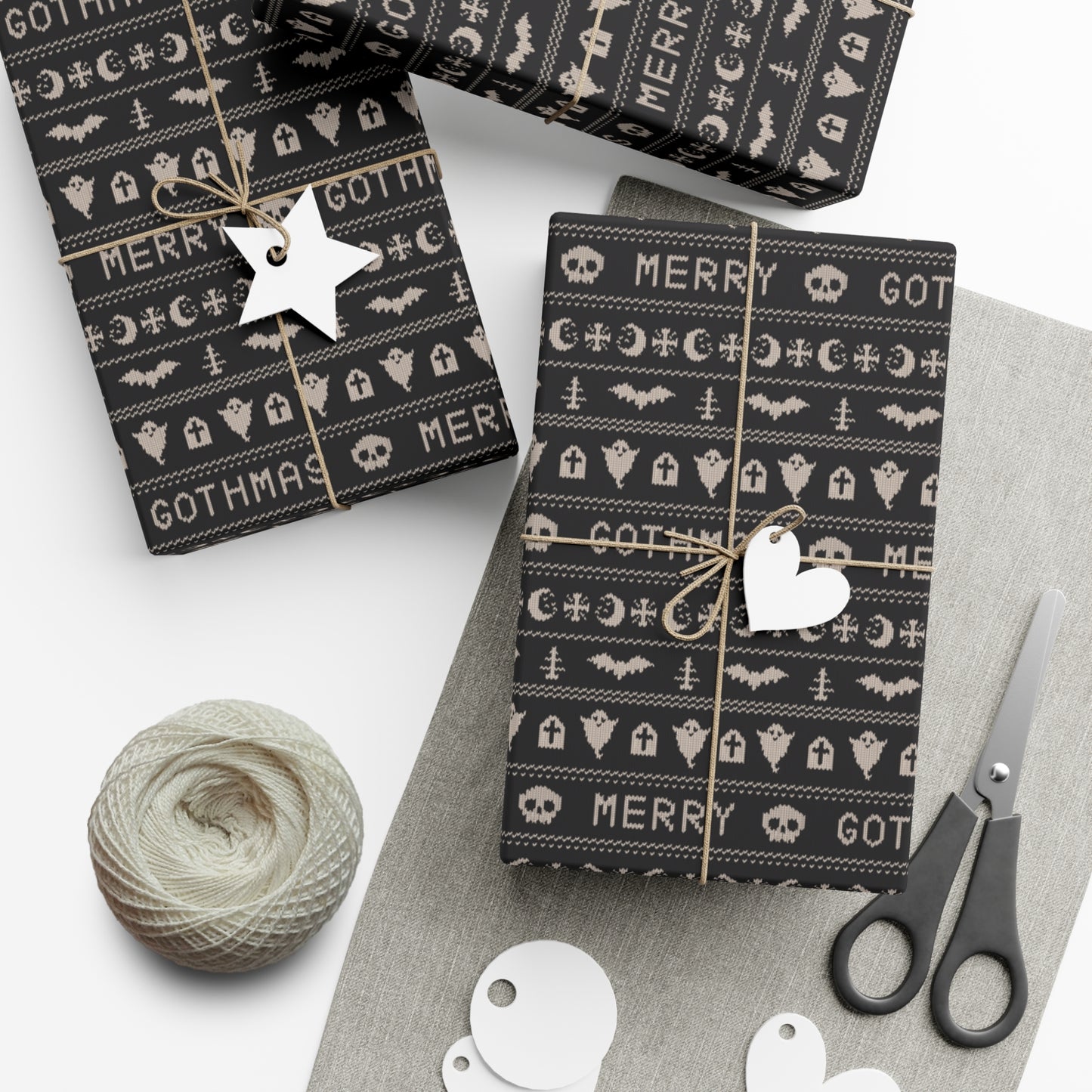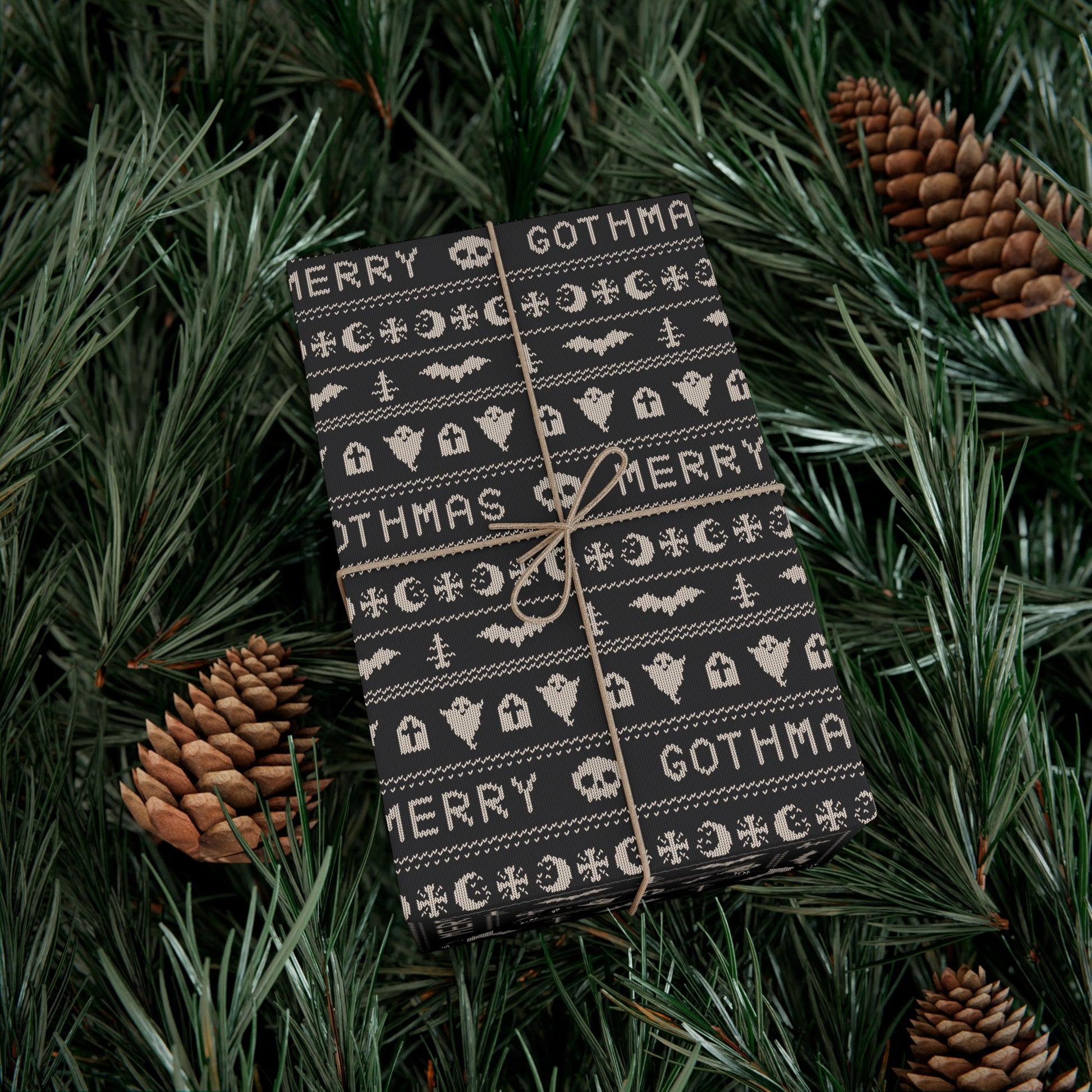 Goth Christmas Ugly Sweater Inspired, Gothmas & Kitschy Creepmas Black Eco-Friendly Holiday Gift Wrap
