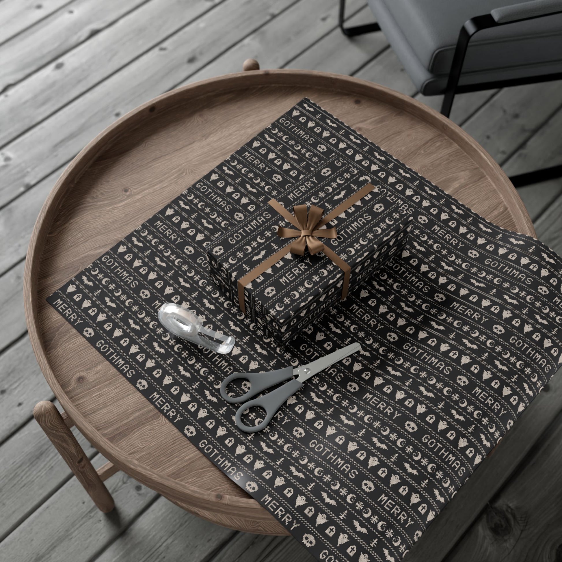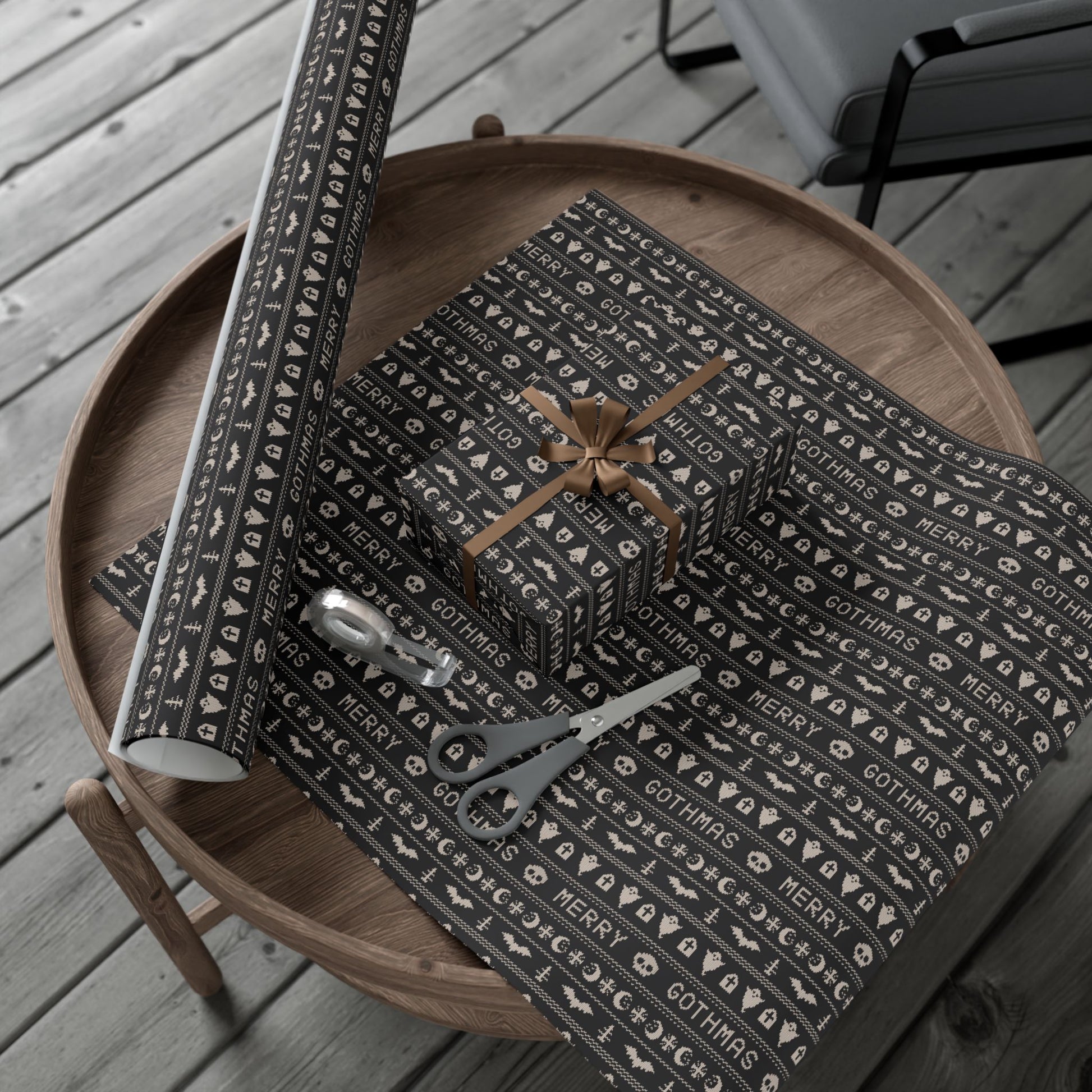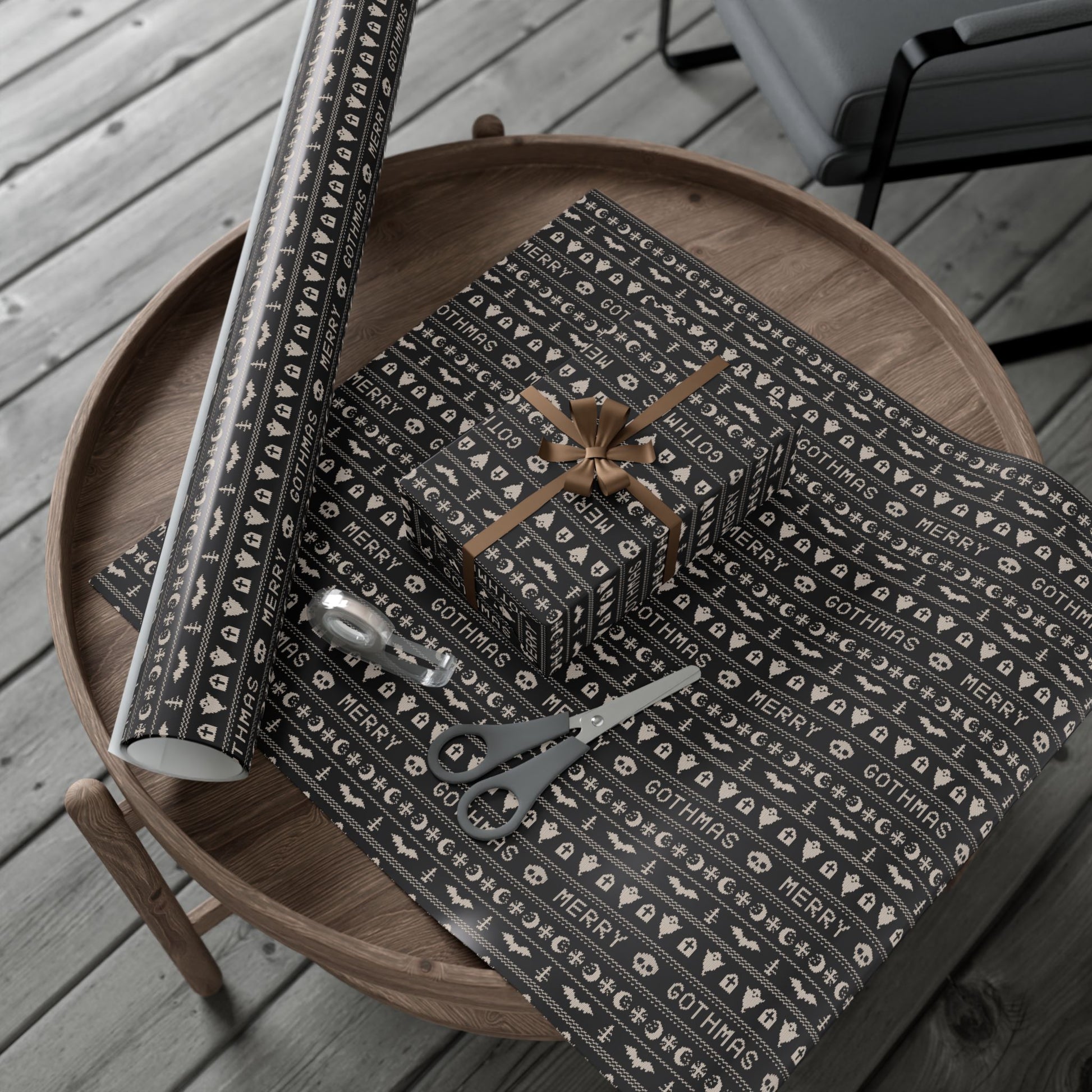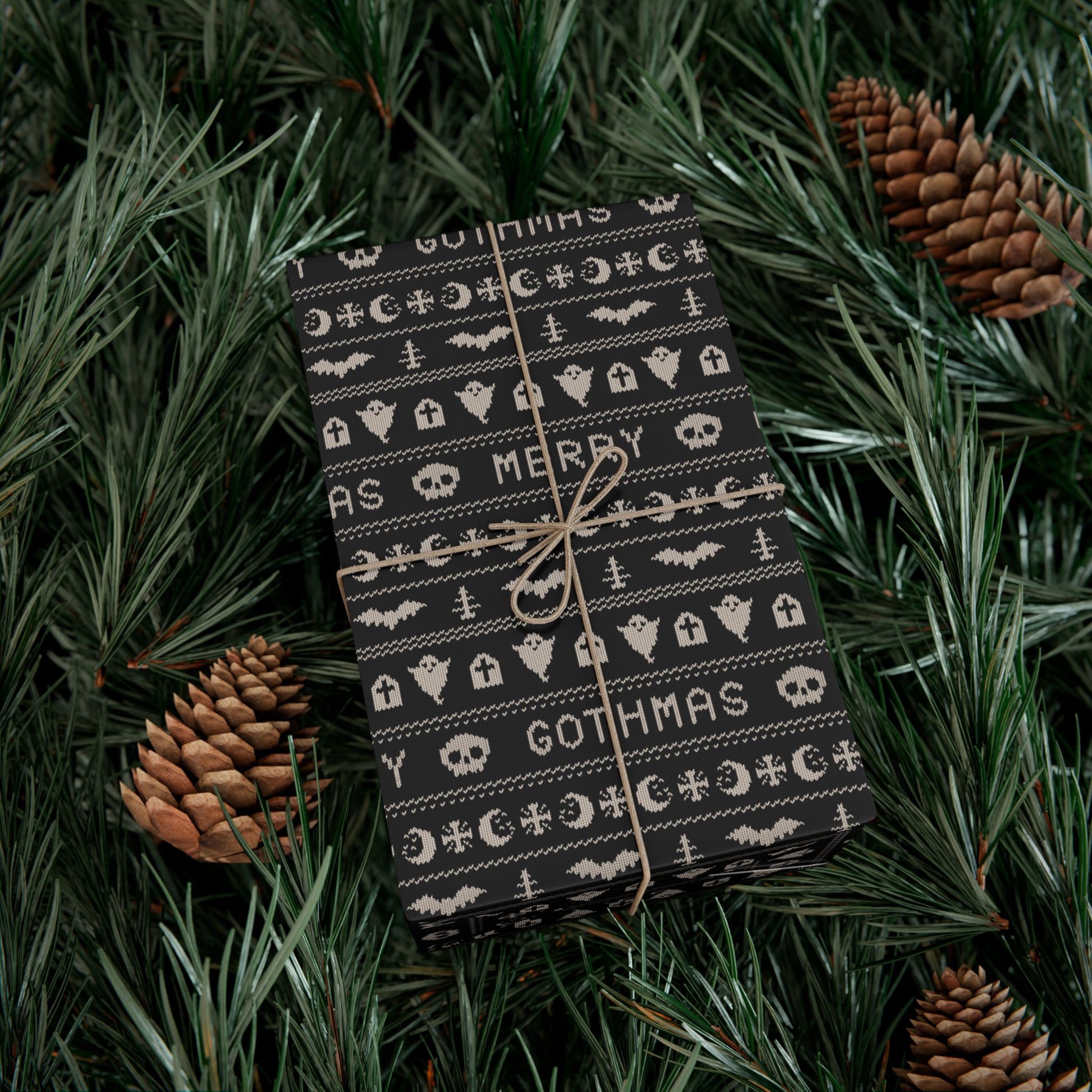 Goth Christmas Ugly Sweater Inspired, Gothmas & Kitschy Creepmas Black Eco-Friendly Holiday Gift Wrap