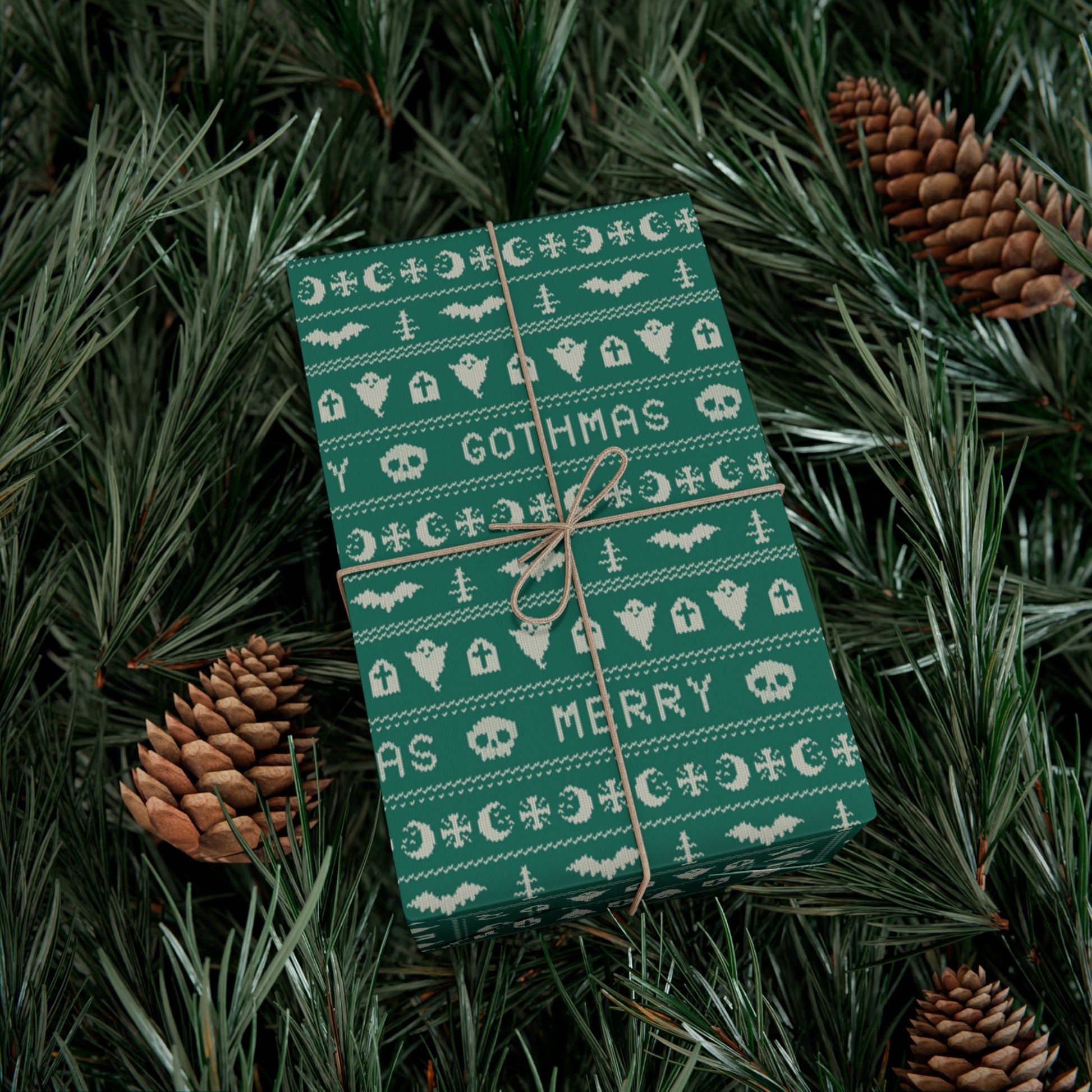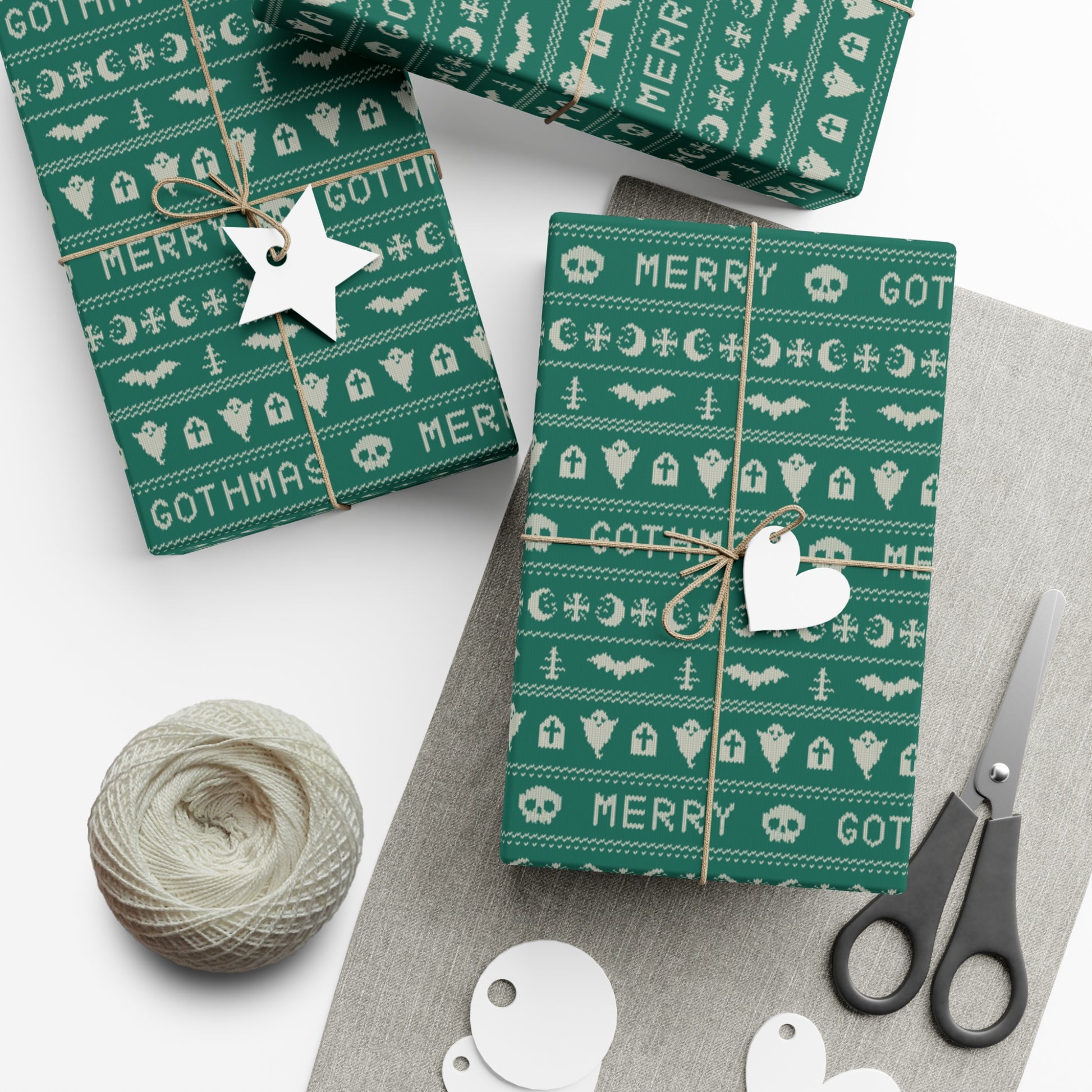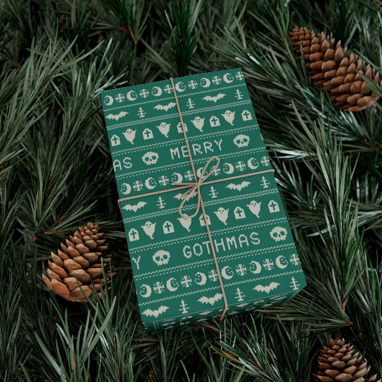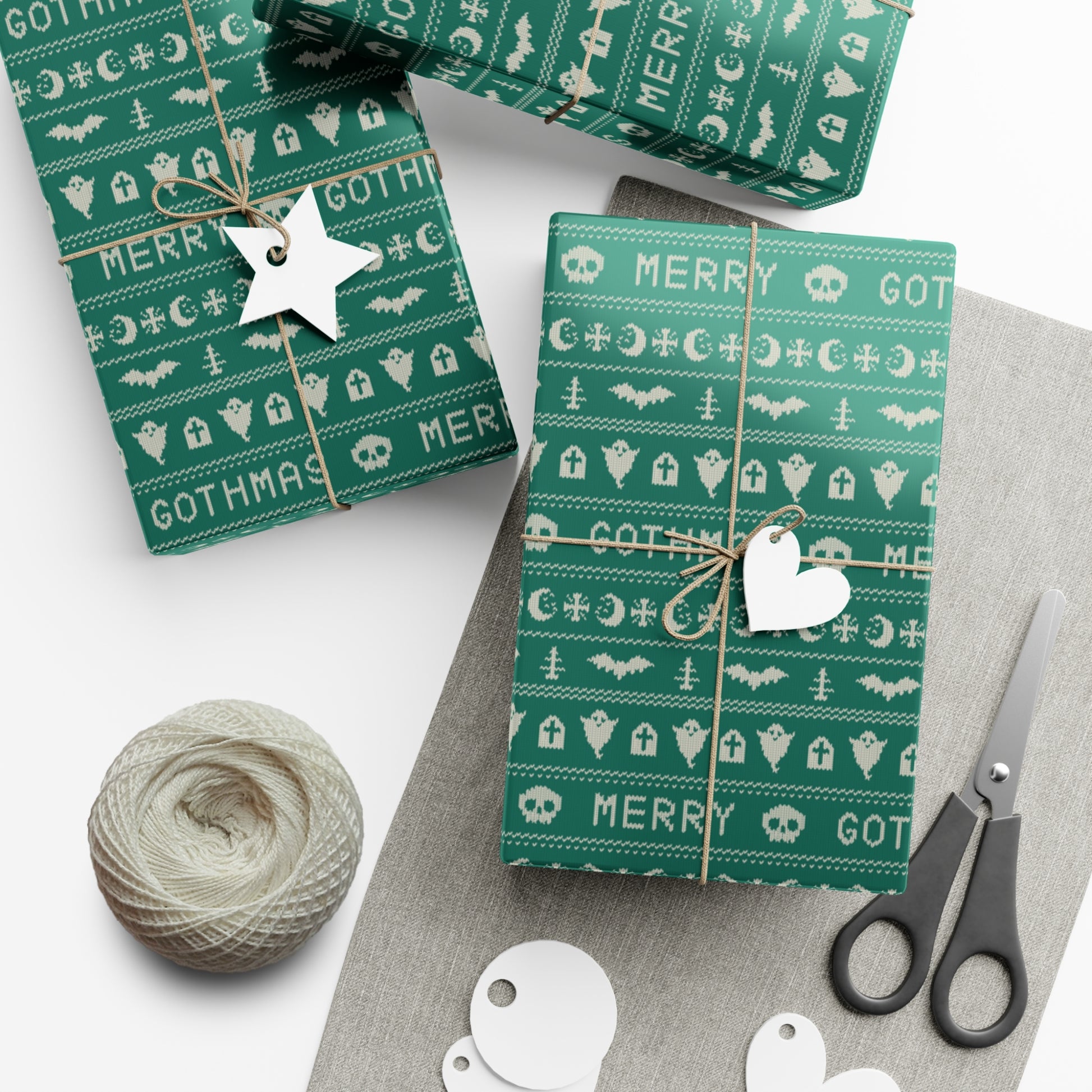 Goth Christmas Ugly Sweater Inspired, Gothmas & Kitschy Creepmas Green Eco-Friendly Holiday Gift Wrap