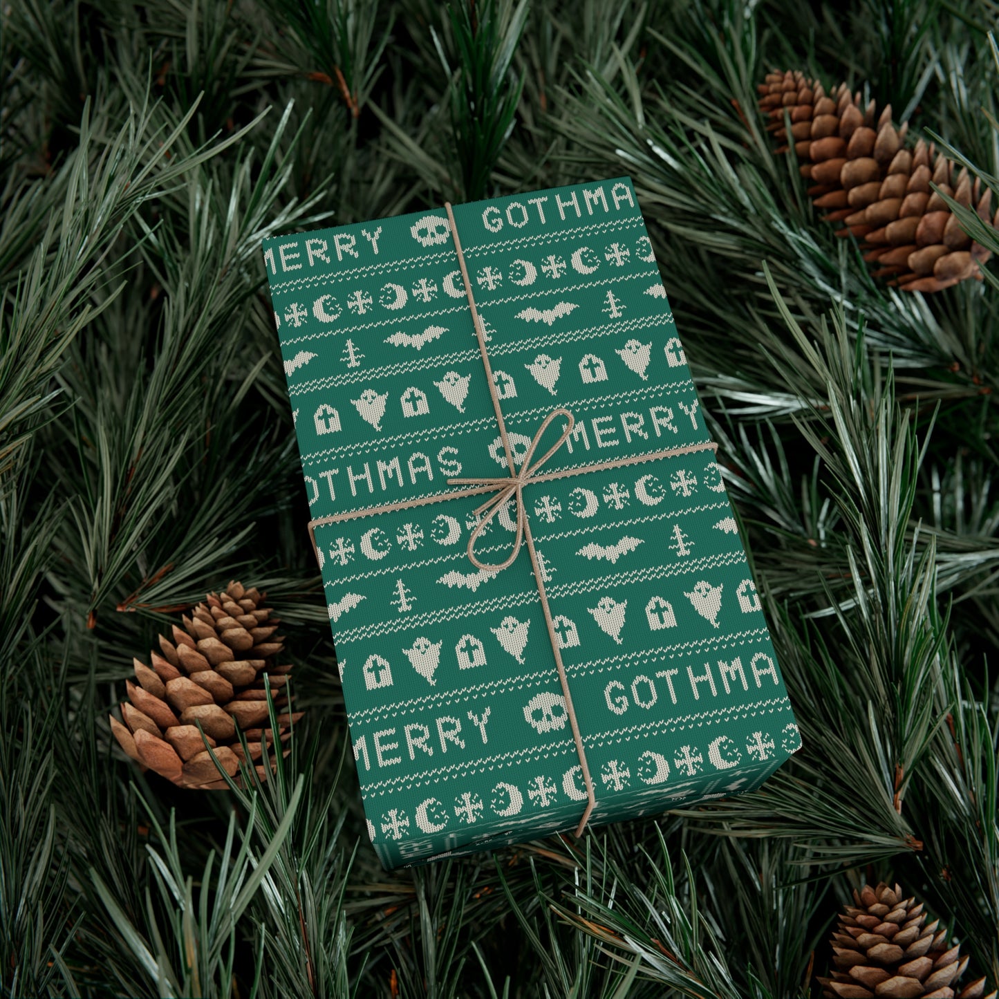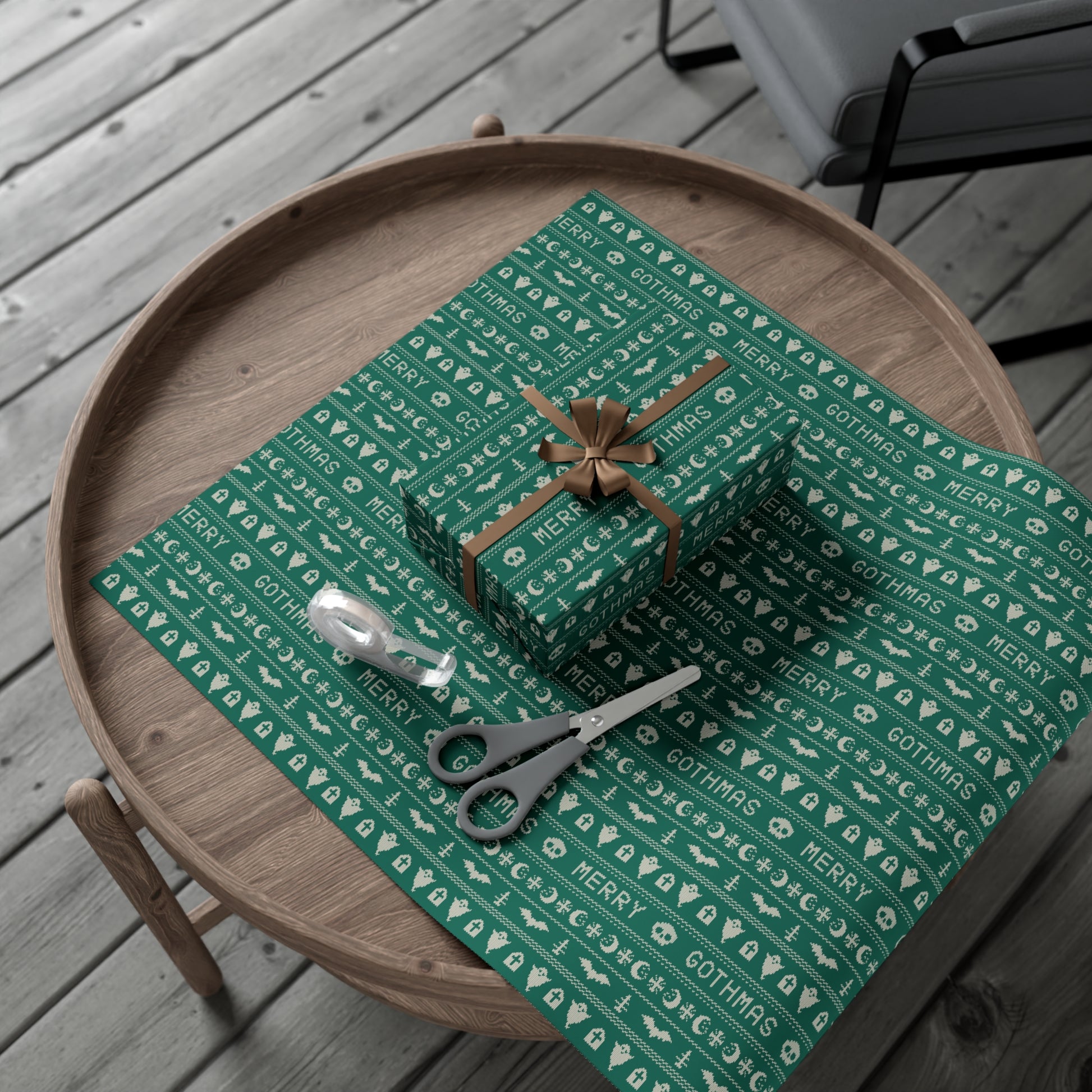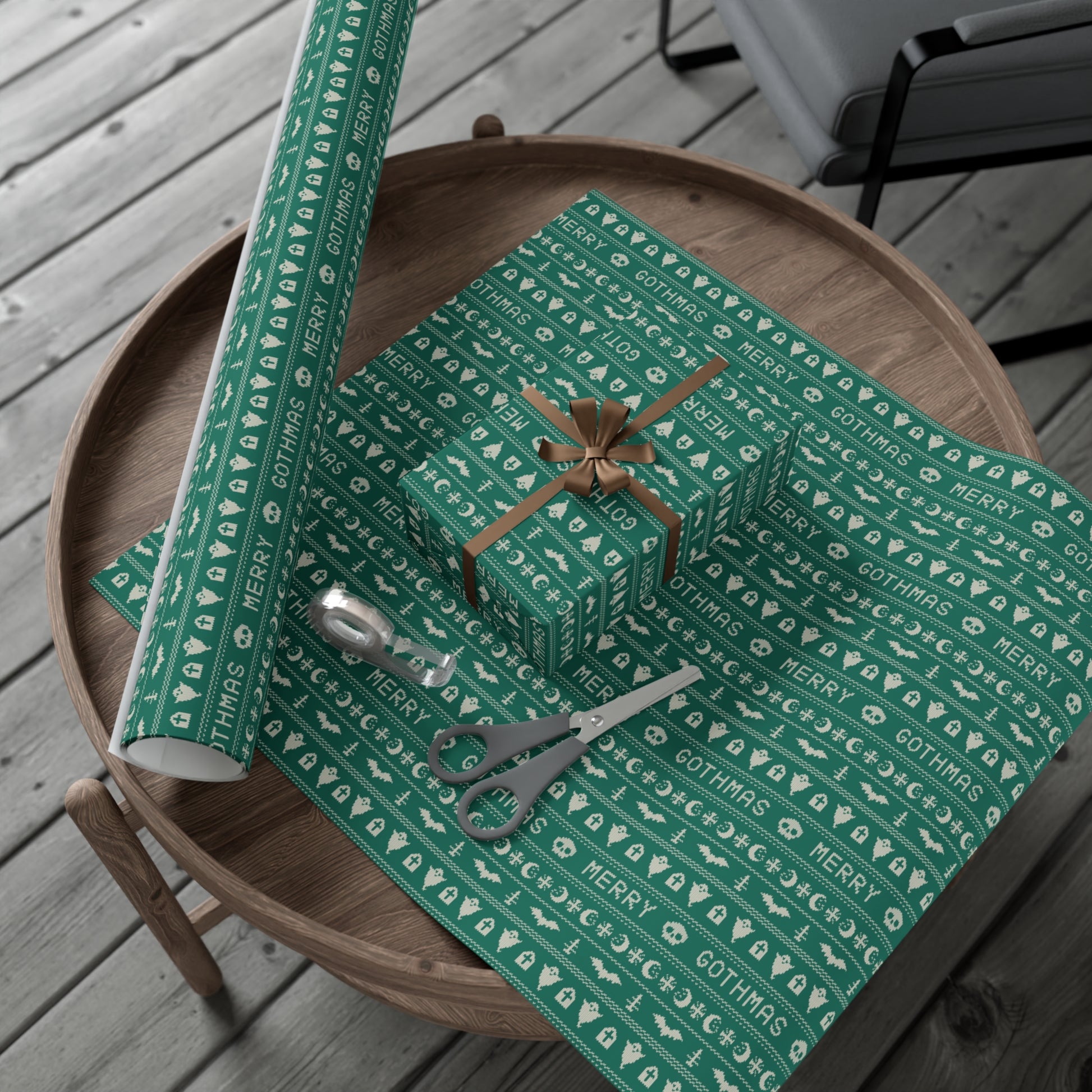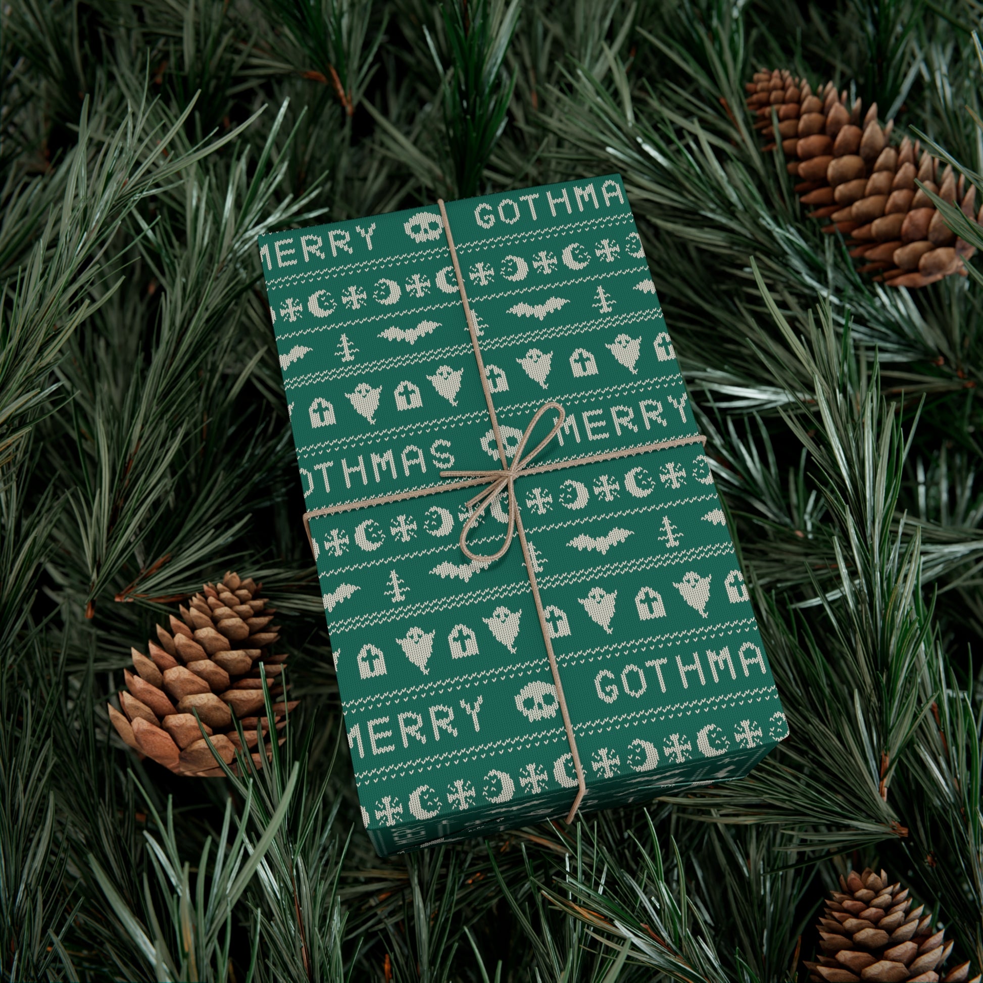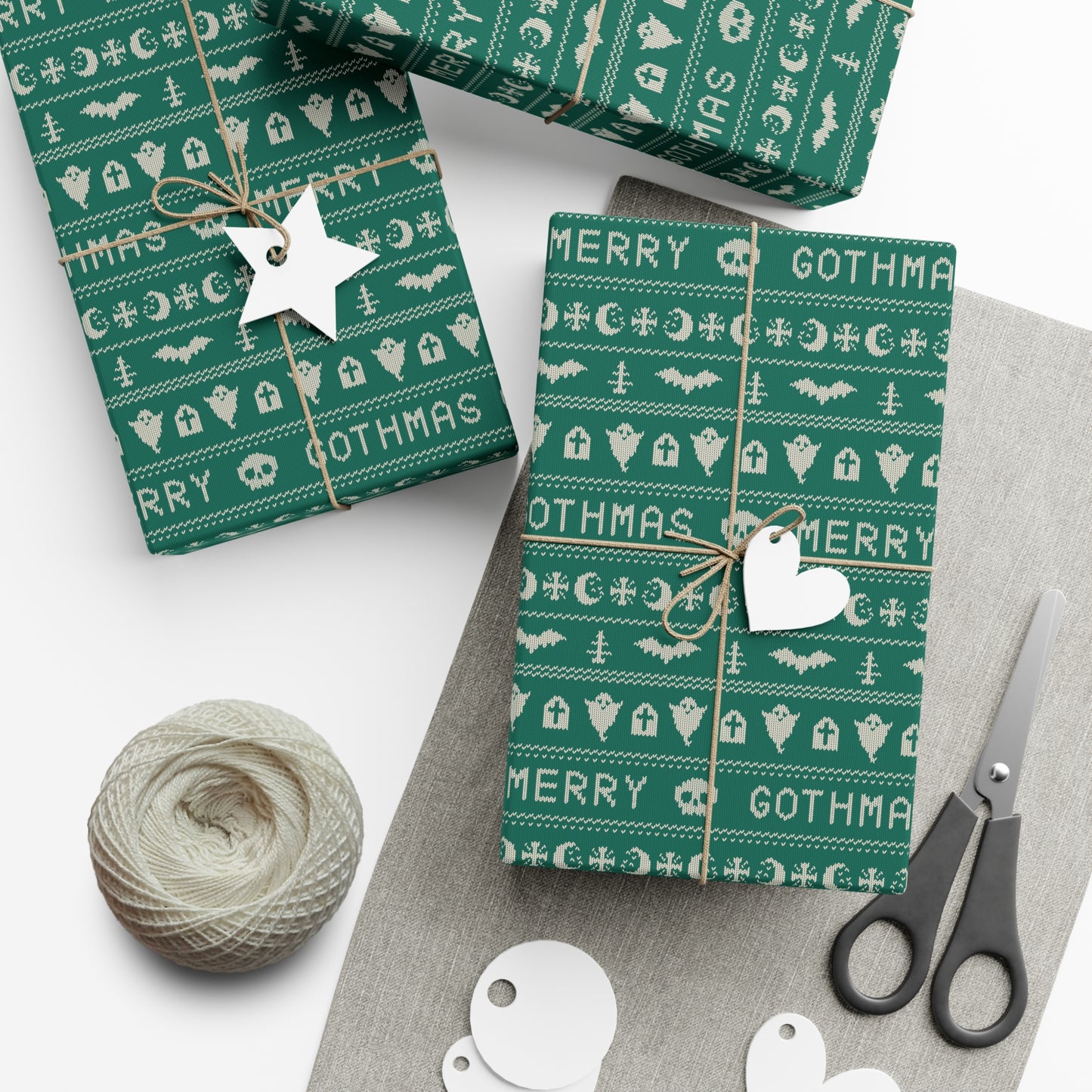 Goth Christmas Ugly Sweater Inspired, Gothmas & Kitschy Creepmas Green Eco-Friendly Holiday Gift Wrap