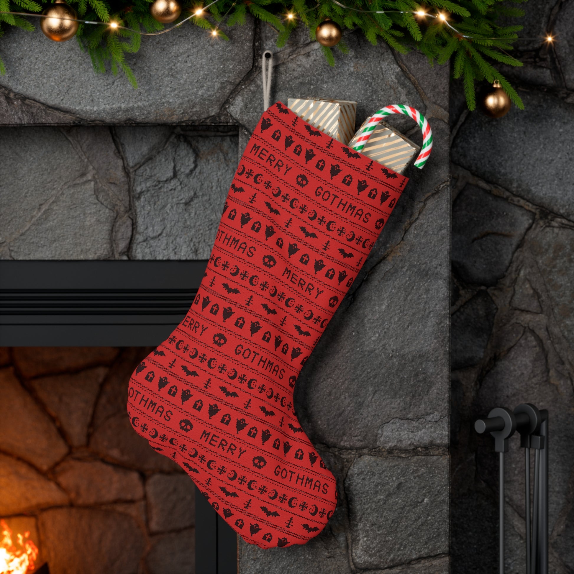 Goth Christmas Ugly Sweater Inspired, Gothmas Kitschy Creepmas Red Holiday Stocking