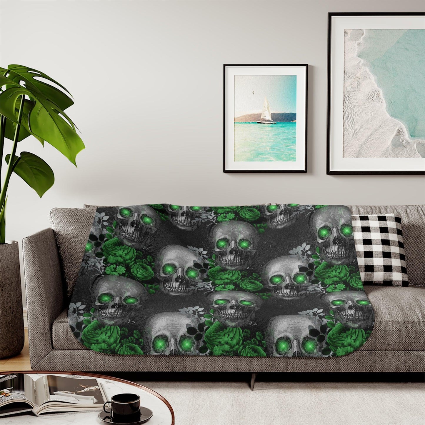 Gothic Floral Skulls with Green Eyes Glam Goth Sherpa Blanket
