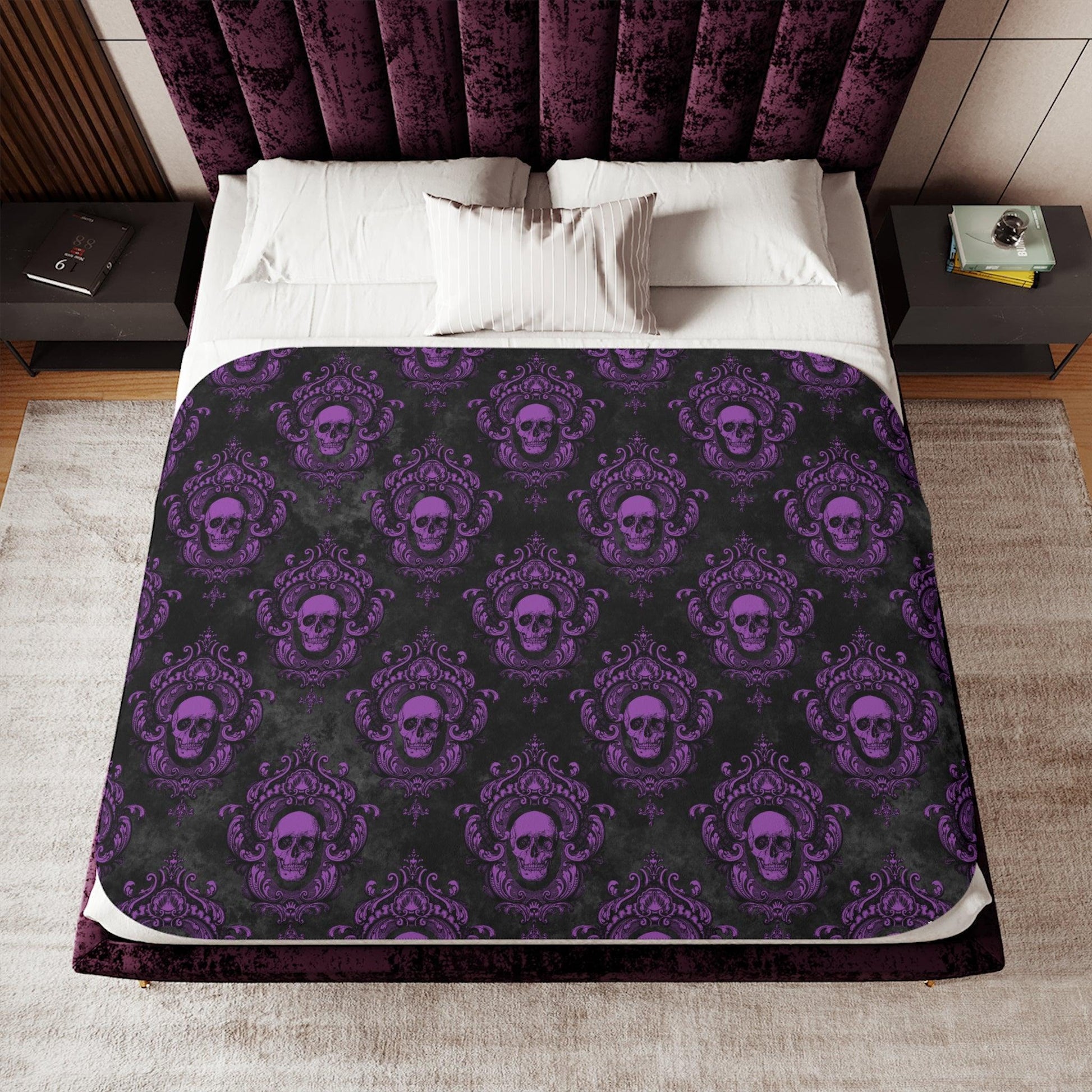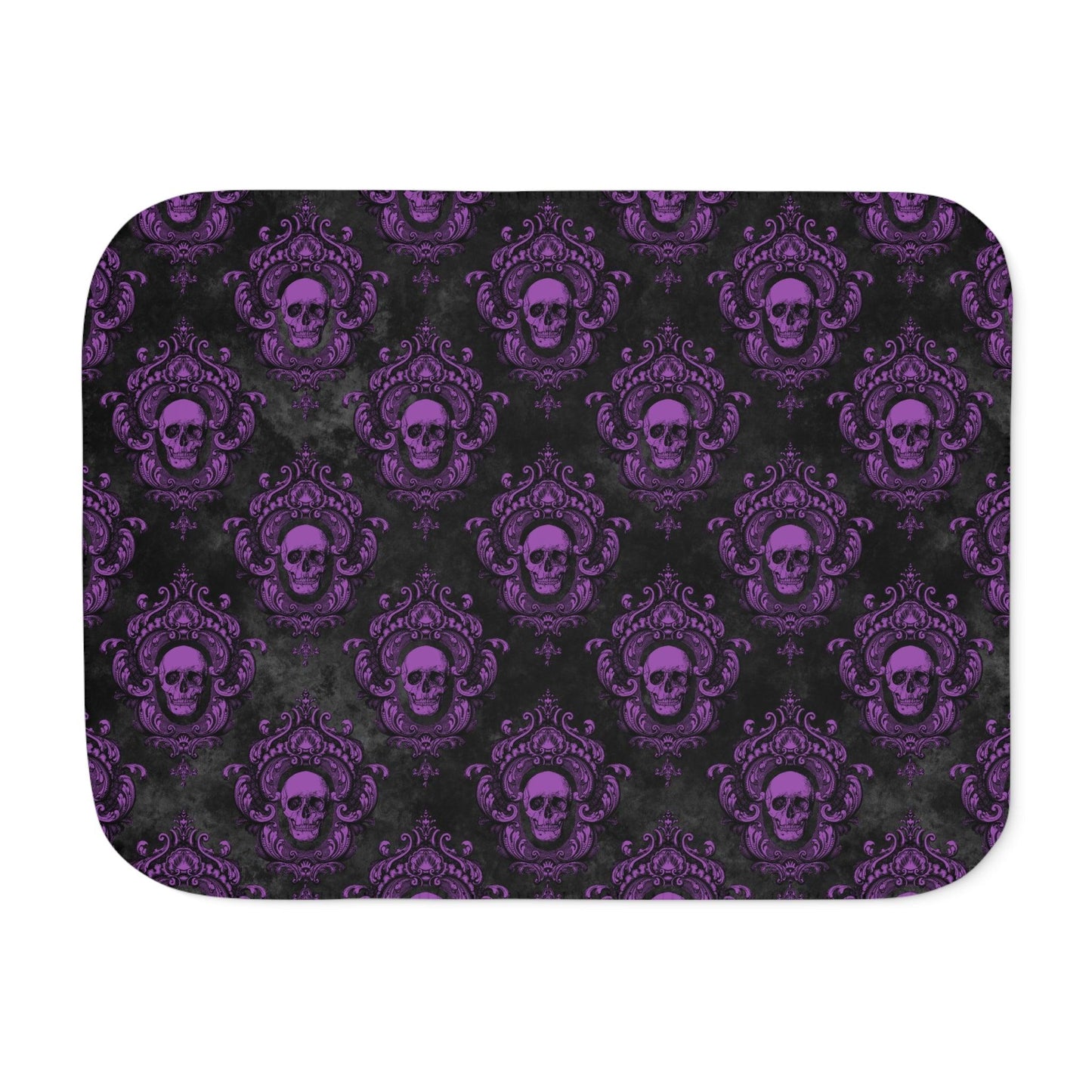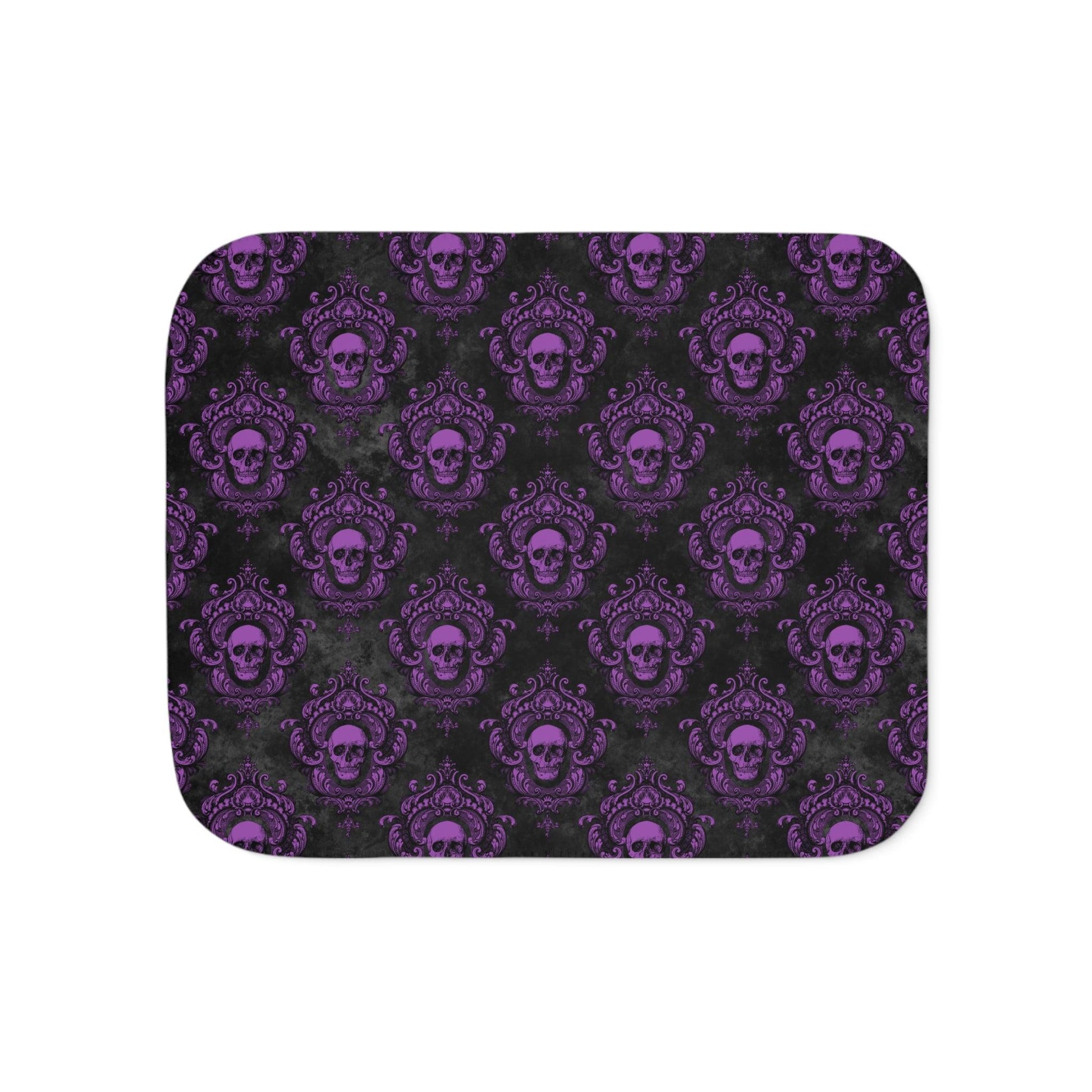 Gothic Purple Skull with Ornate Frame, Purple and Black Glam Goth Sherpa Blanket