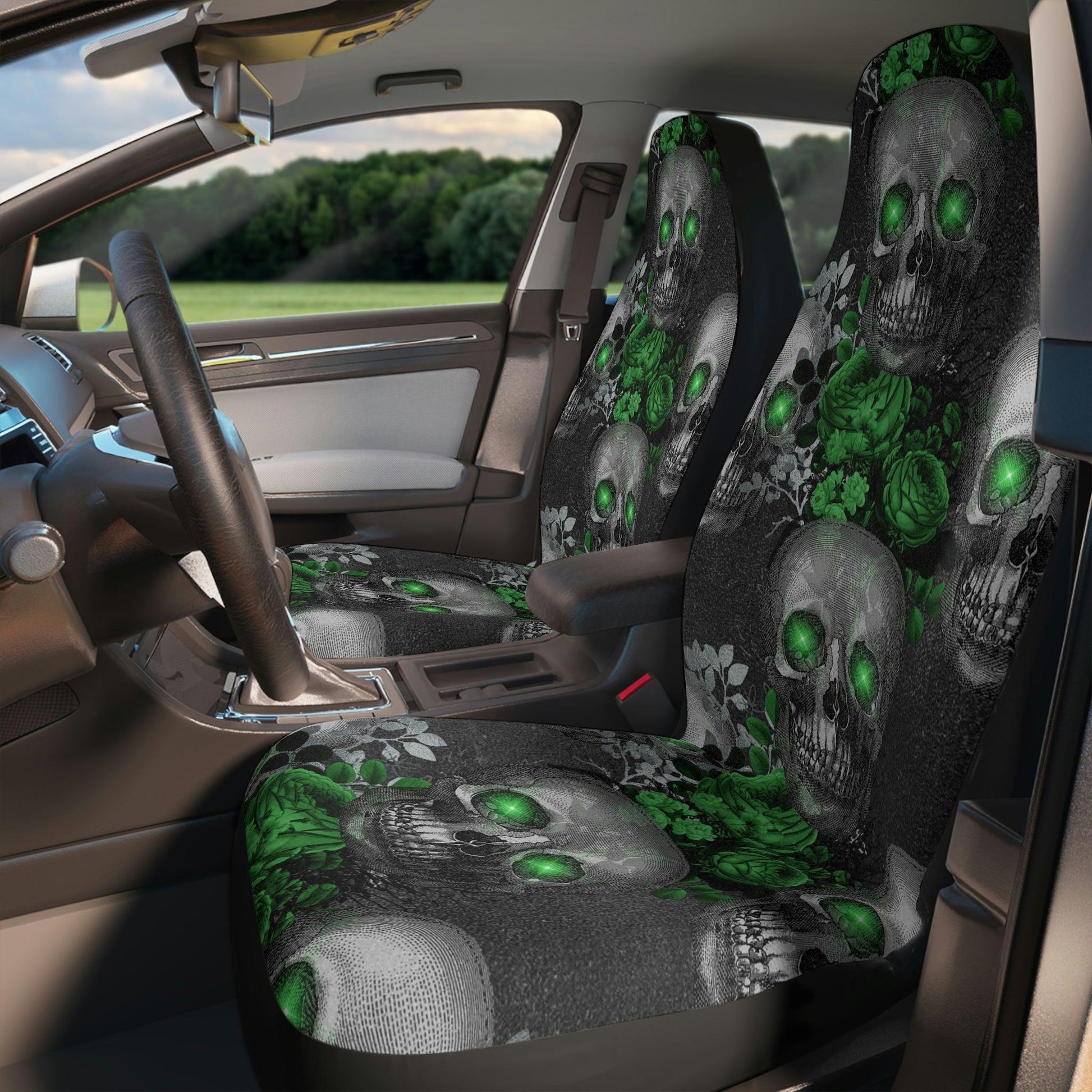 Gothic Skulls with Green Eyes and Florals Glam Goth Car Seat Covers