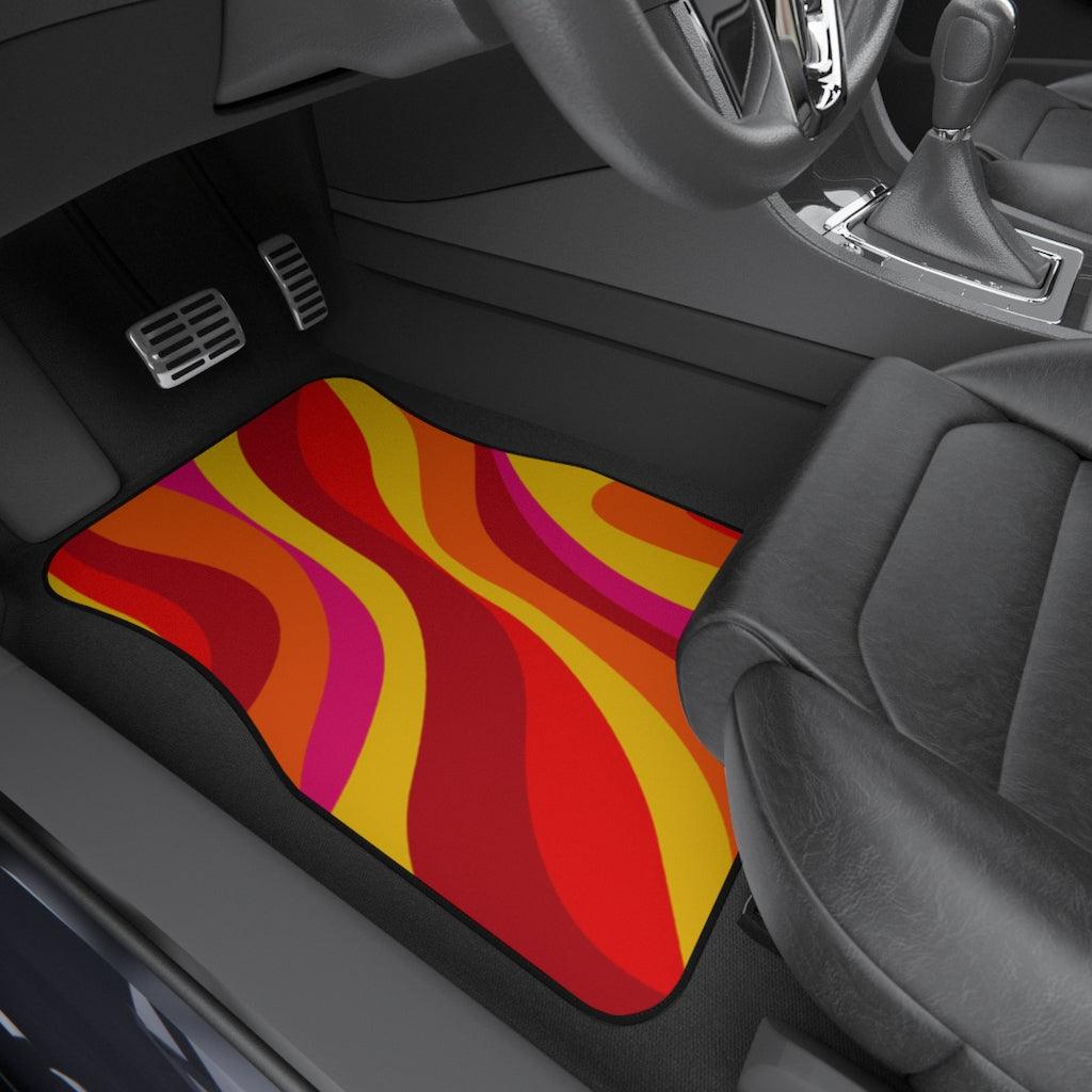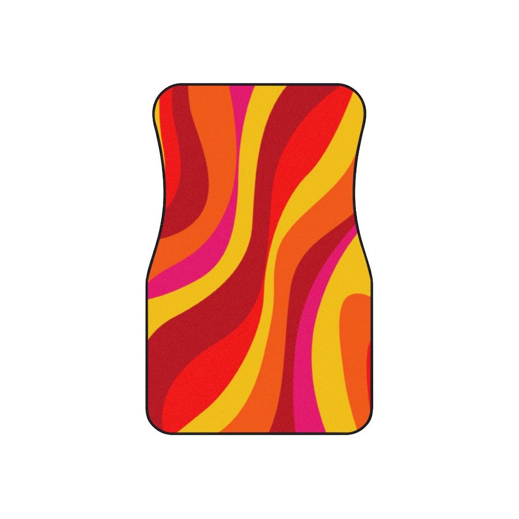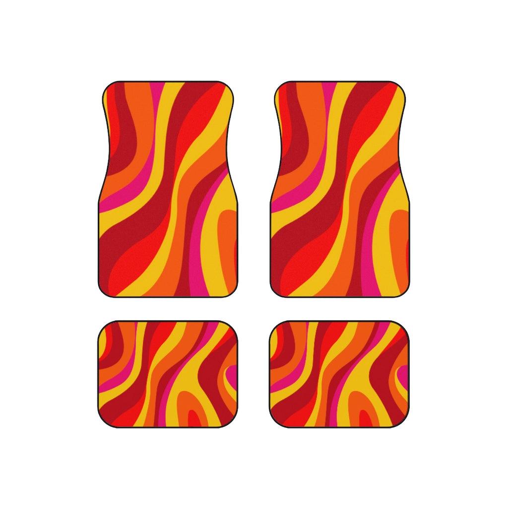 Groovy 60's Retro Hippie Swirl Orange, Red & Yellow MCM Car Mats (Set of 4)