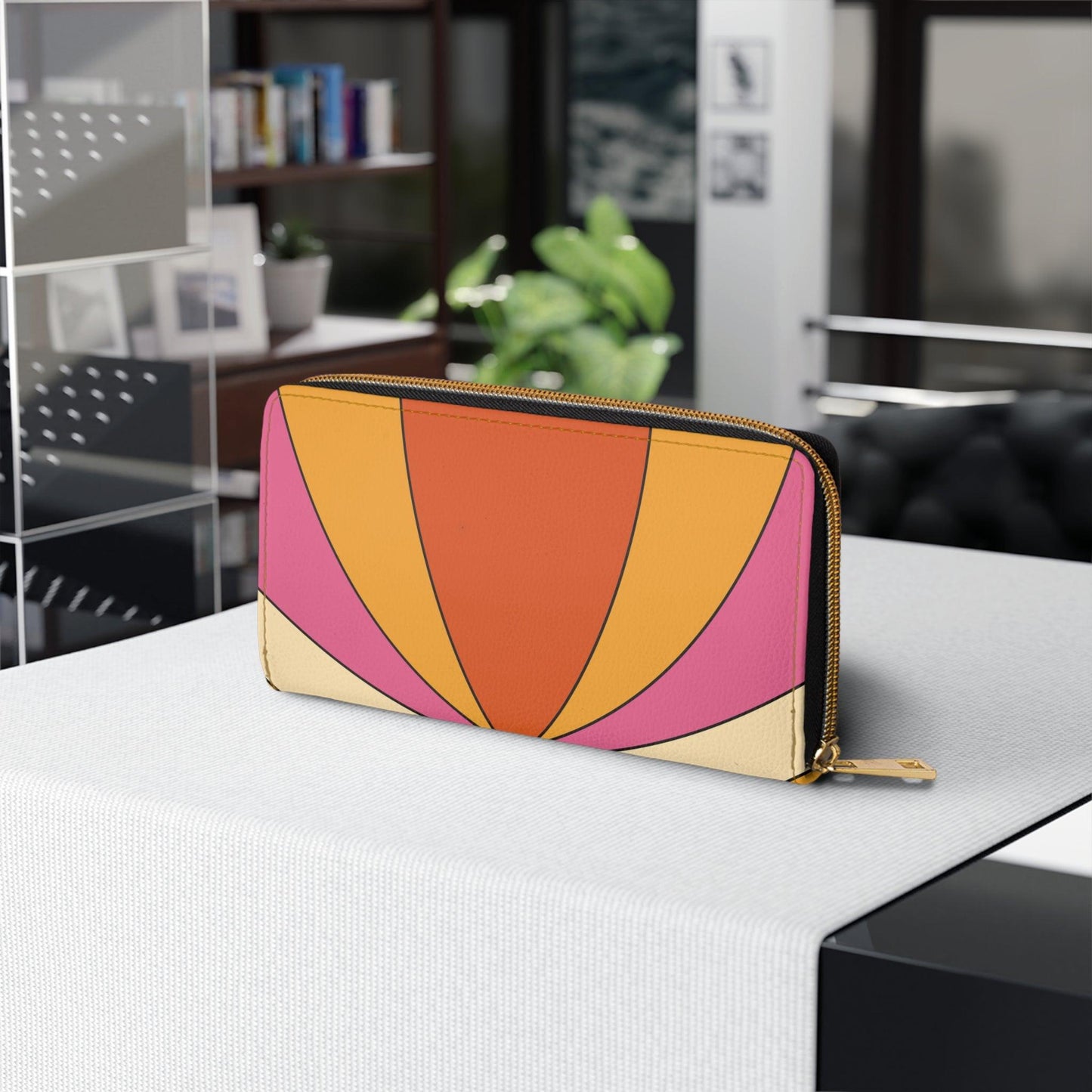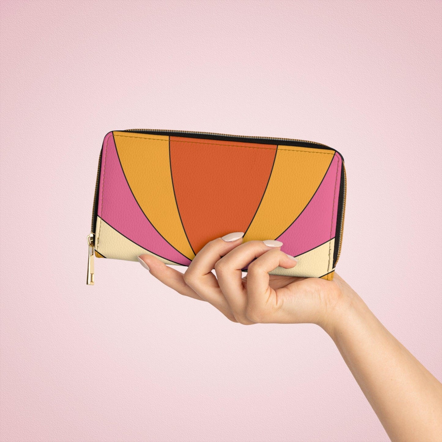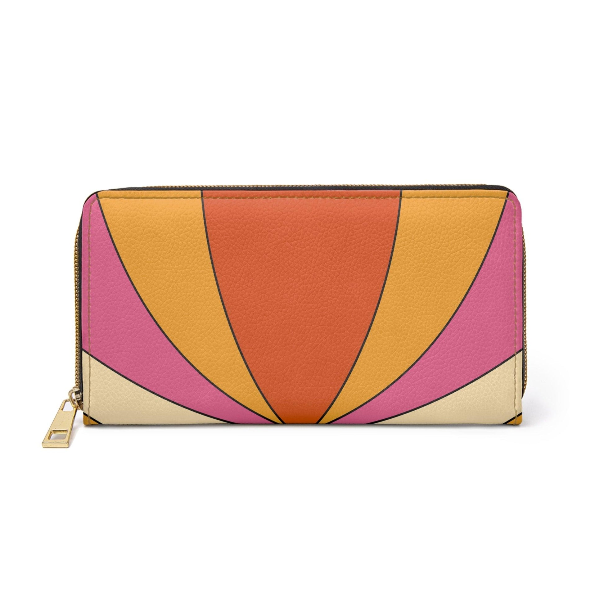 Embrace the fun-loving spirit of the mod 60's, where everything was bold, vibrant, and colorfully fabulous, with our retro, mid century modern, groovy abstract zipper wallet. Crafted with love and designed to make you feel outta sight!